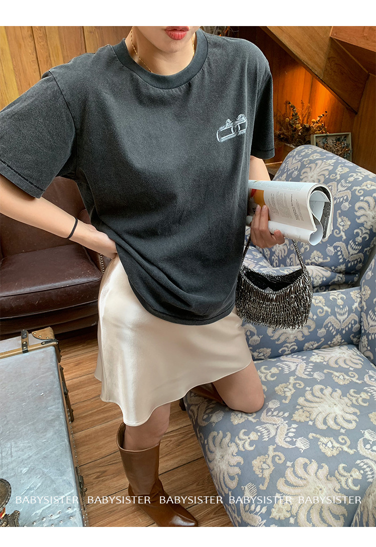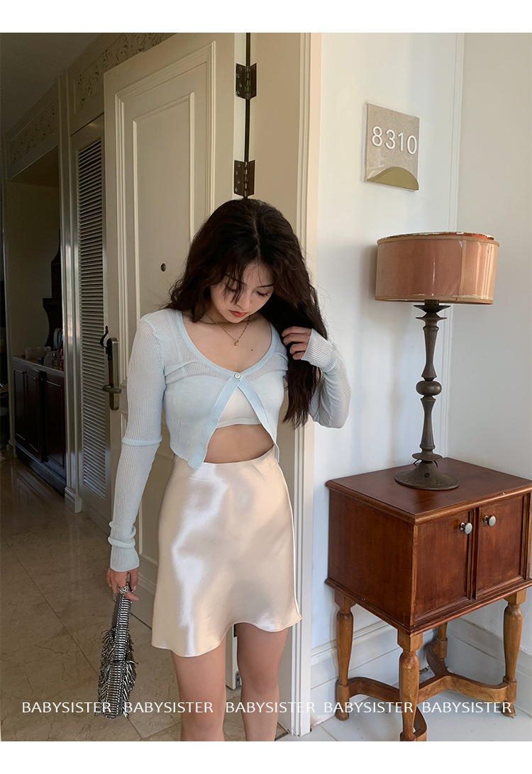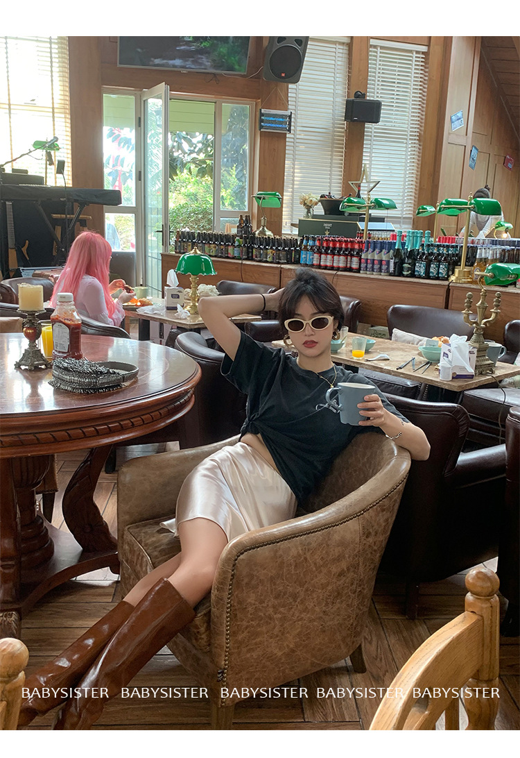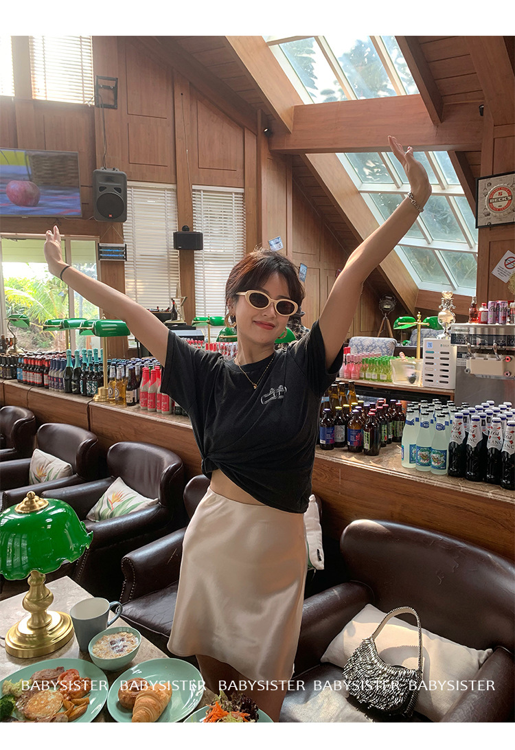 통기성이 좋고 슬림한 피쉬테일 진주빛 삼아세테이트 새틴 힙 스커트 여름 신상 하이웨이스트 A라인 스커트스토어 가기