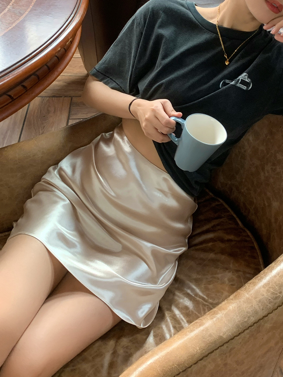통기성이 좋고 슬림한 피쉬테일 진주빛 삼아세테이트 새틴 힙 스커트 여름 신상 하이웨이스트 A라인 스커트