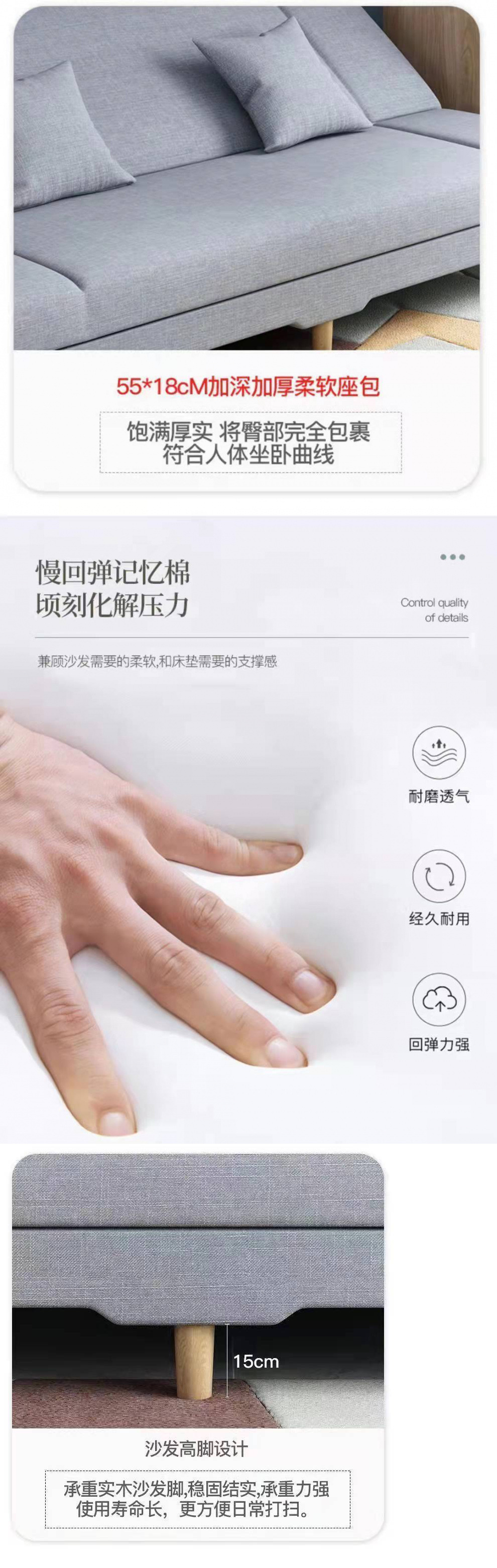 게으른 패브릭 소파 다기능 접이식 소파 베드 작은 아파트 거실 임대 집 소파 베드 올인원