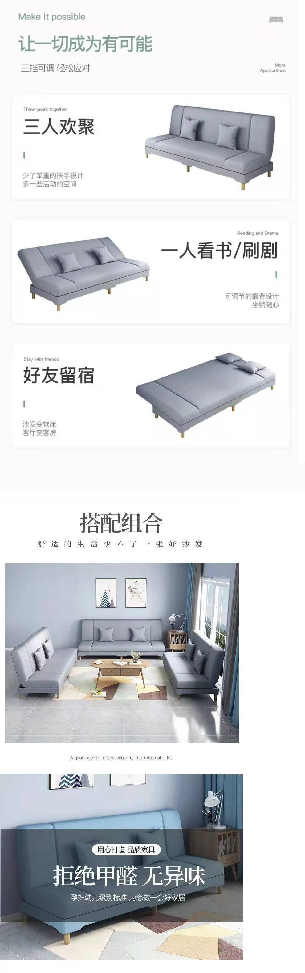 게으른 패브릭 소파 다기능 접이식 소파 베드 작은 아파트 거실 임대 집 소파 베드 올인원스토어 가기