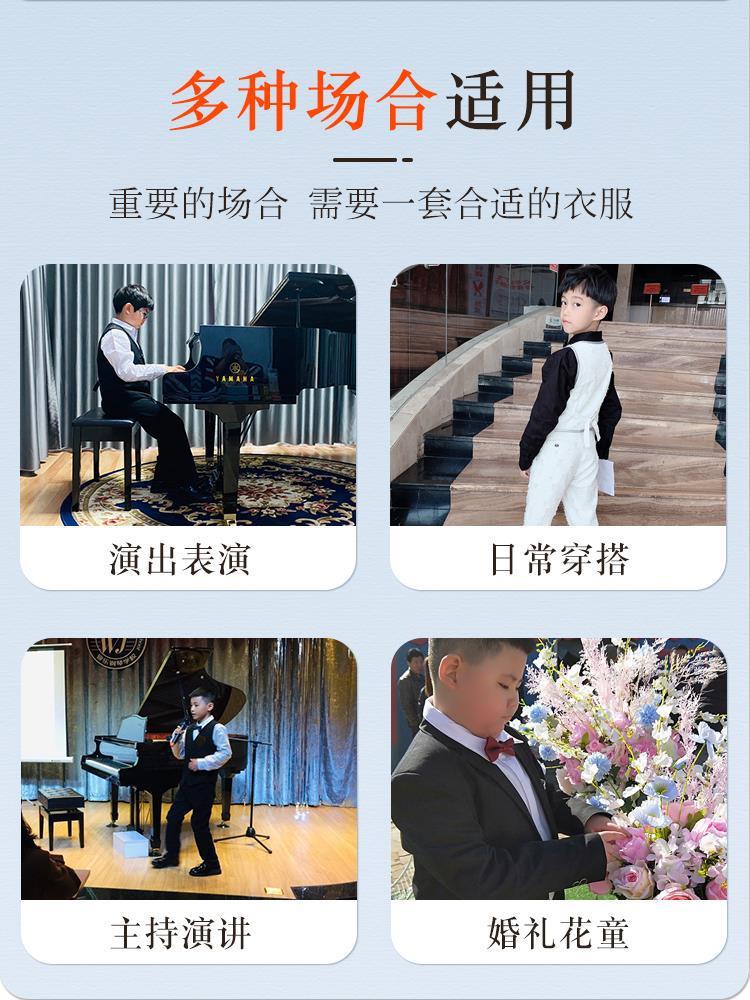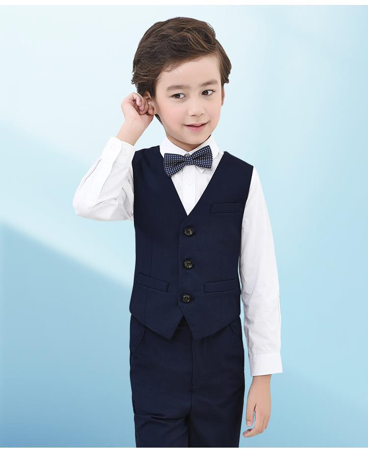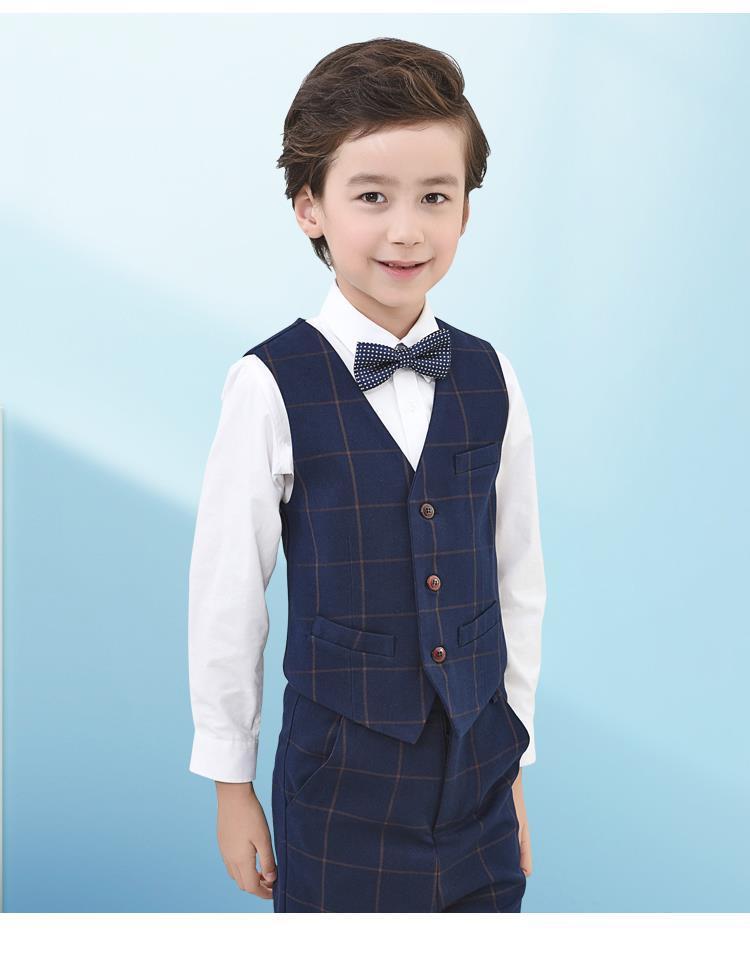 아동복 조끼, 여아 및 남아용 양복 조끼, 영국식 퍼포먼스 의류, 중대형 아동용 네이비 블루 플라워 걸 드레스스토어 가기