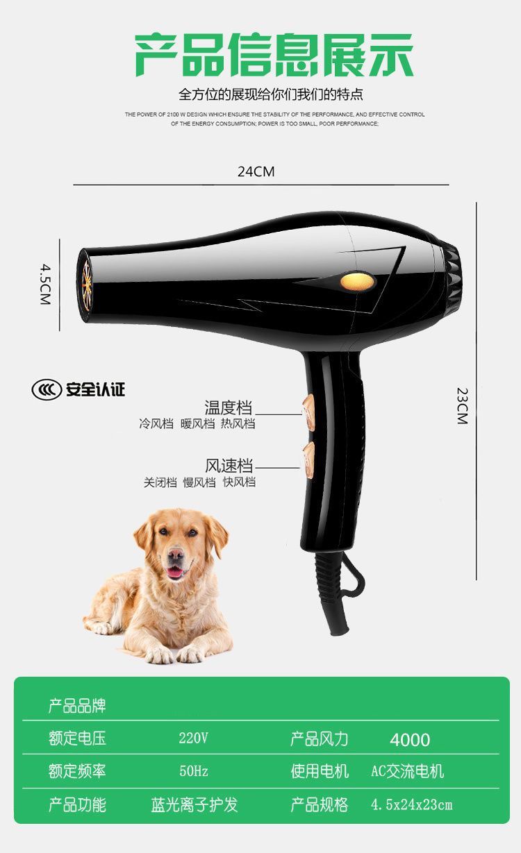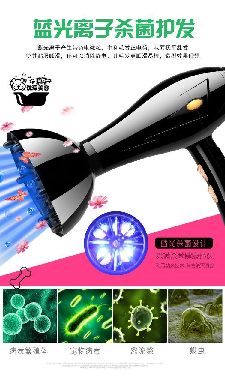 • 살균 기능이 있는 애완동물용 헤어드라이어 [풍력 32000 강화]