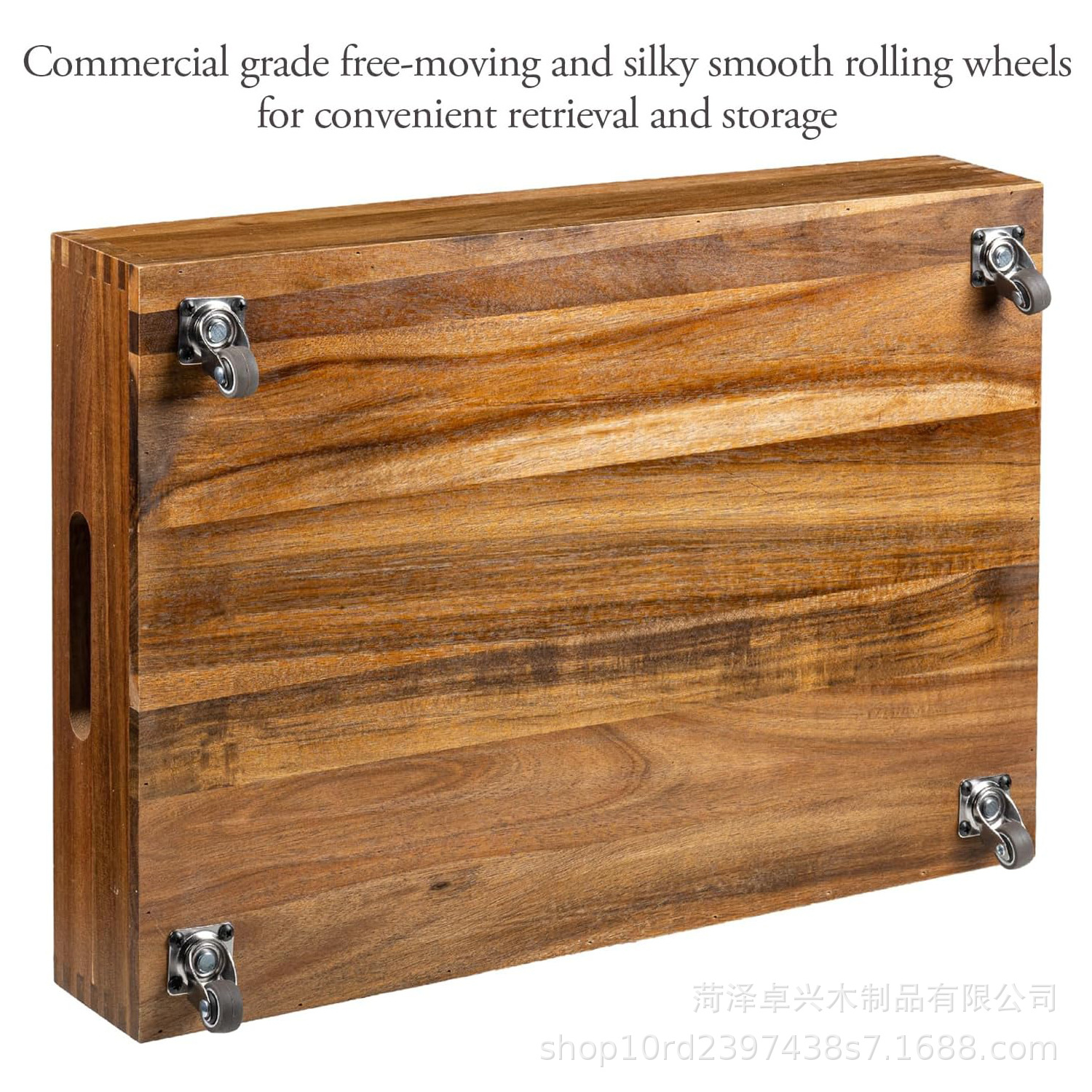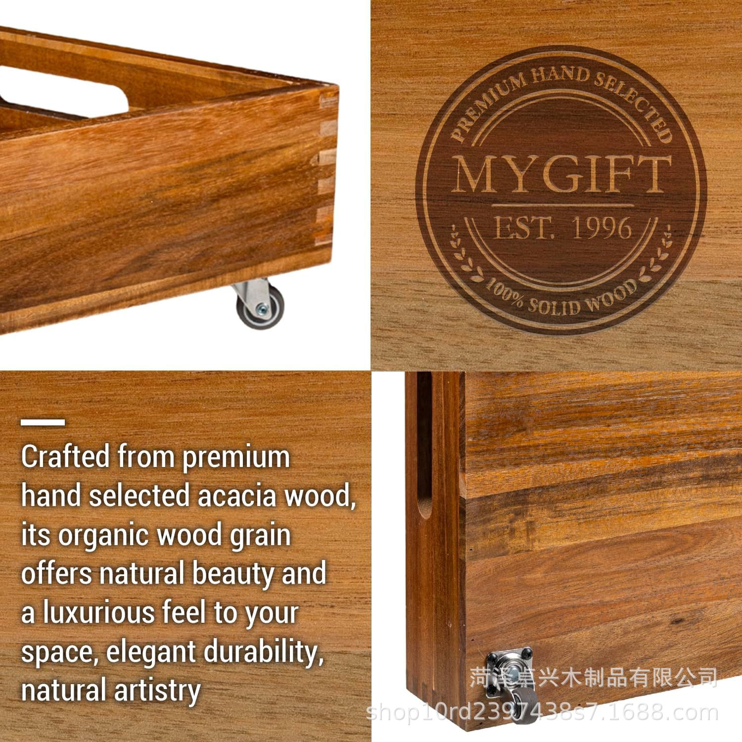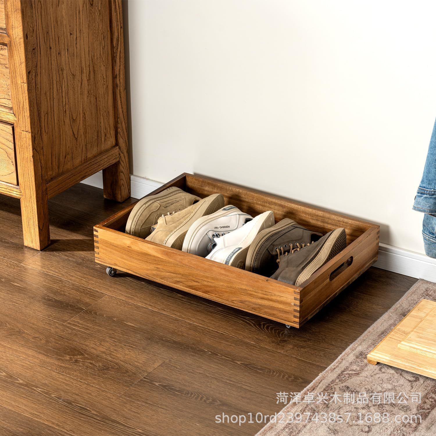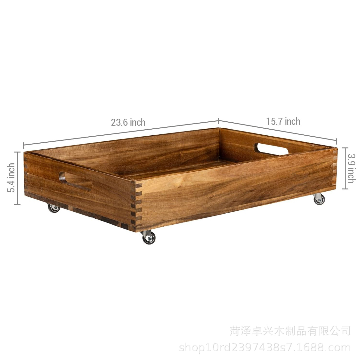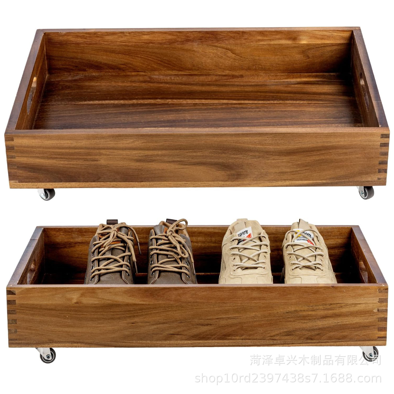 회전 바퀴가있는 단단한 나무 침대 밑 수납 카트 랙 어린이 인형 정리 랙 아카시아 나무 손잡이 신발 보관 랙