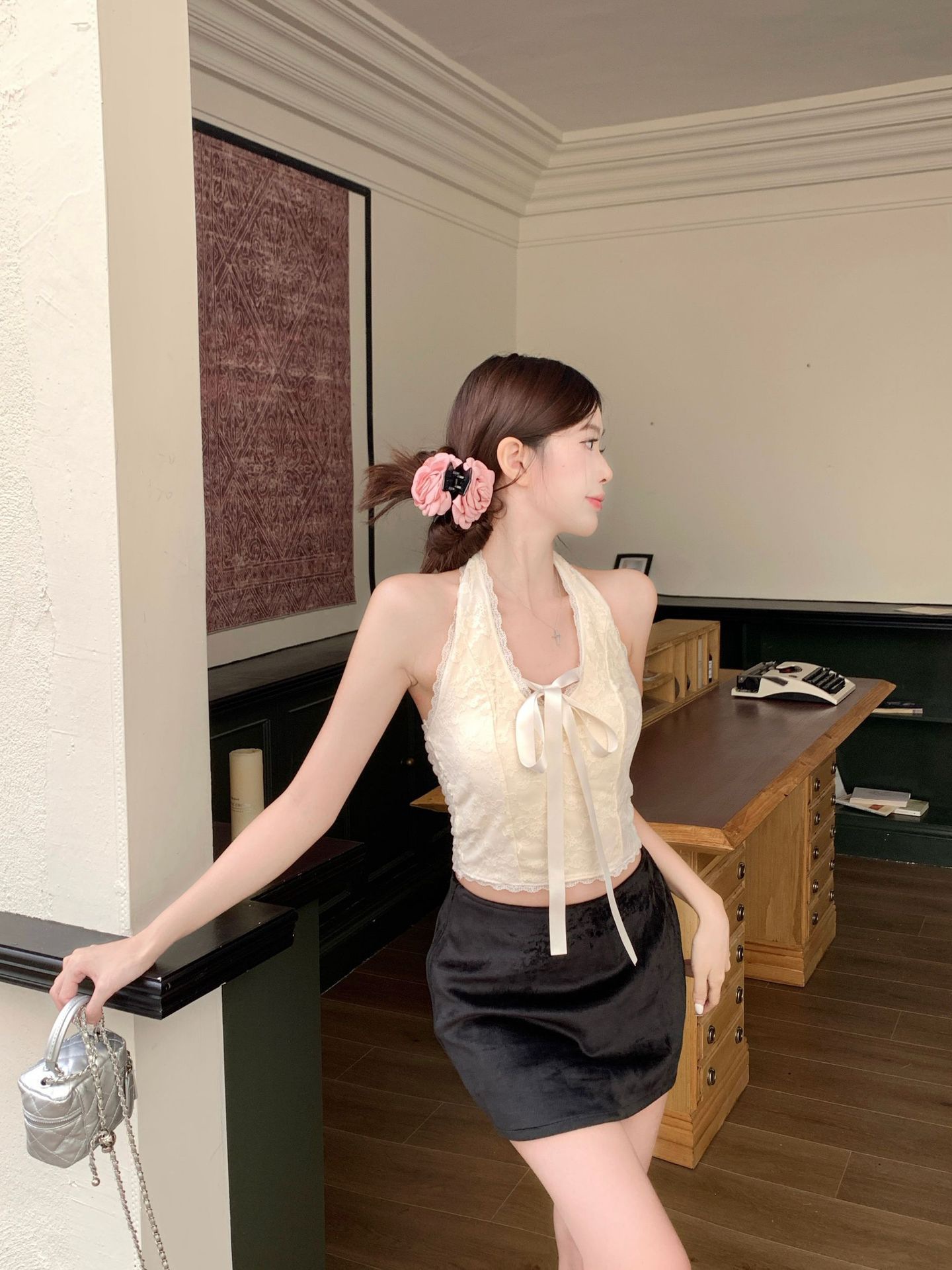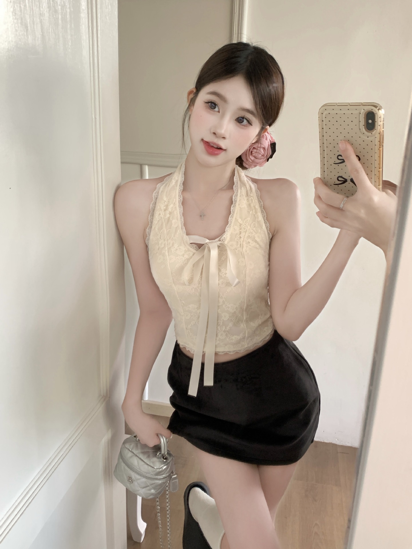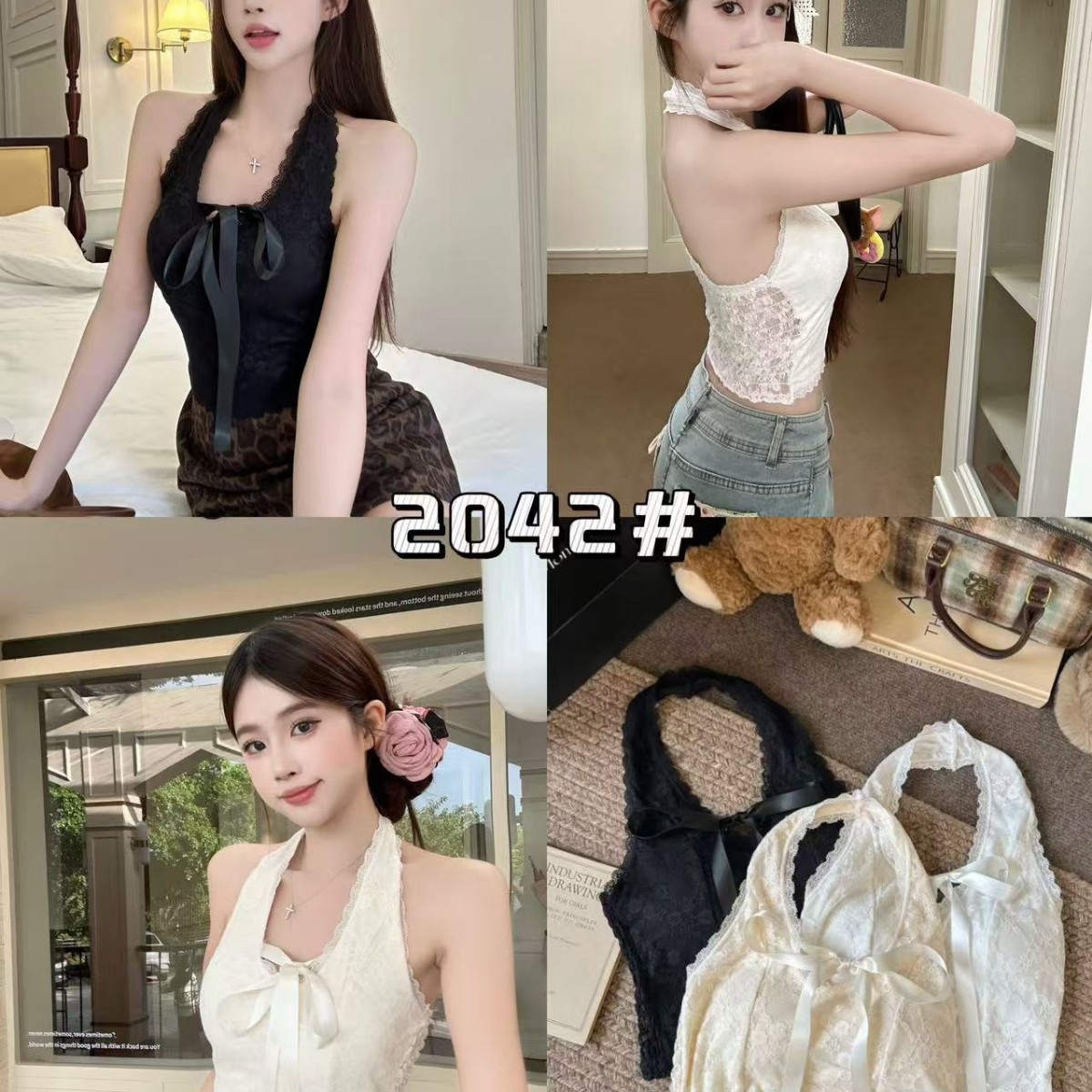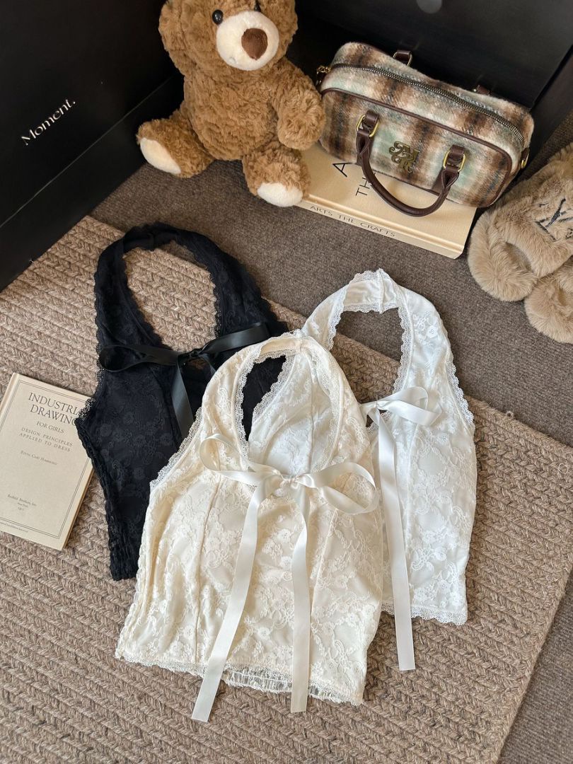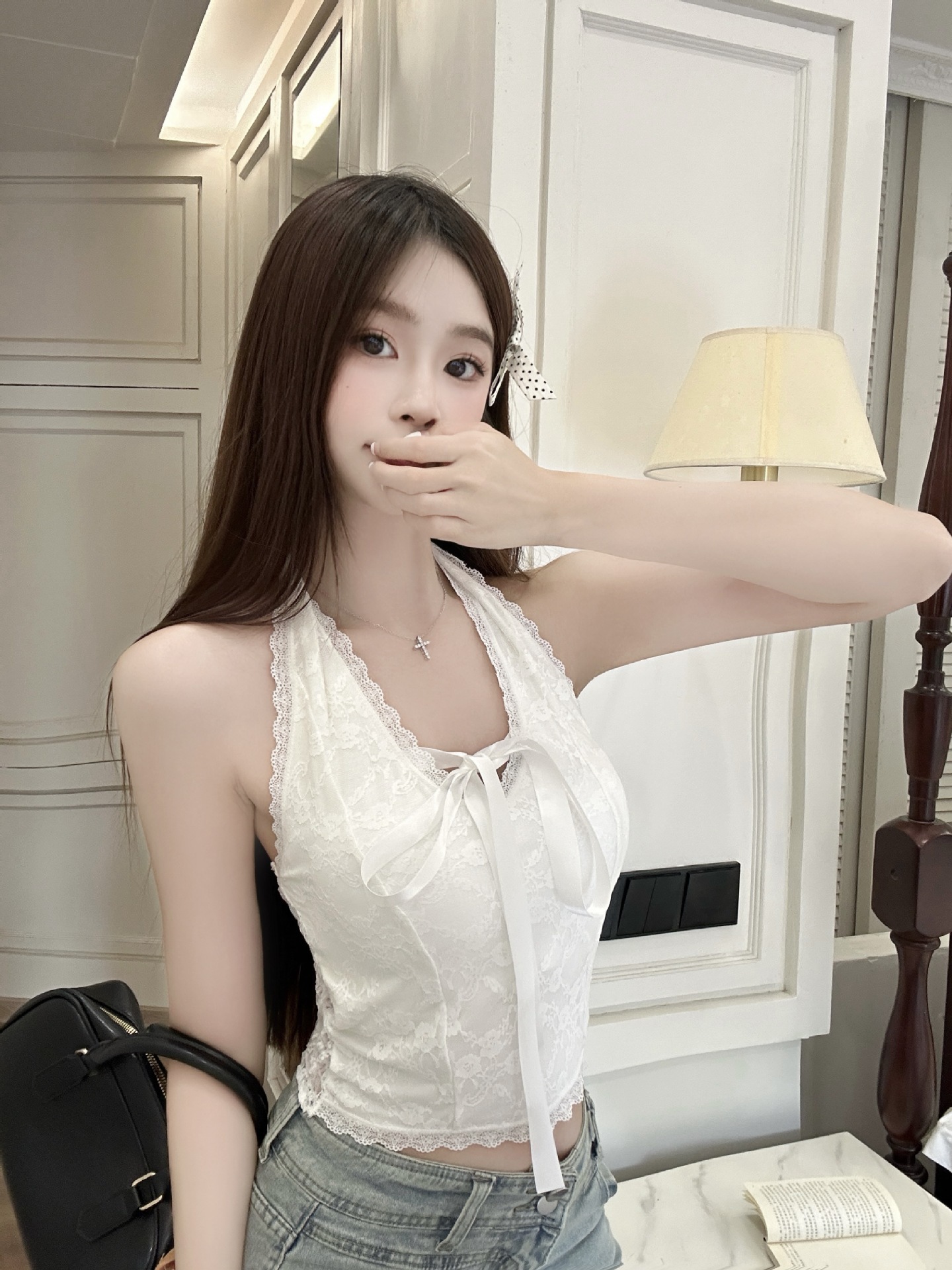 2042 # 가슴 패드가있는 여성용 새로운 보우 v 넥 레이스 캐미솔 달콤한 핫 소녀 섹시한 홀터넥 탑스토어 가기
