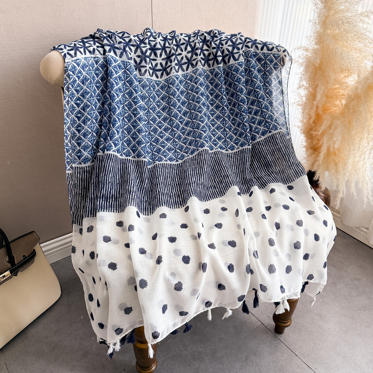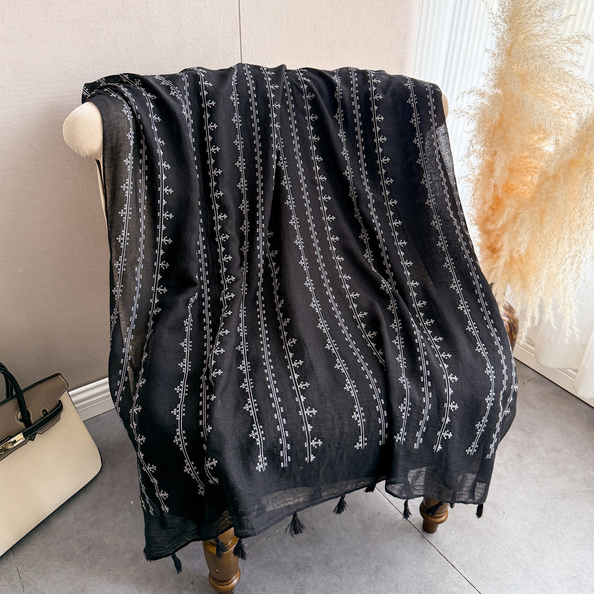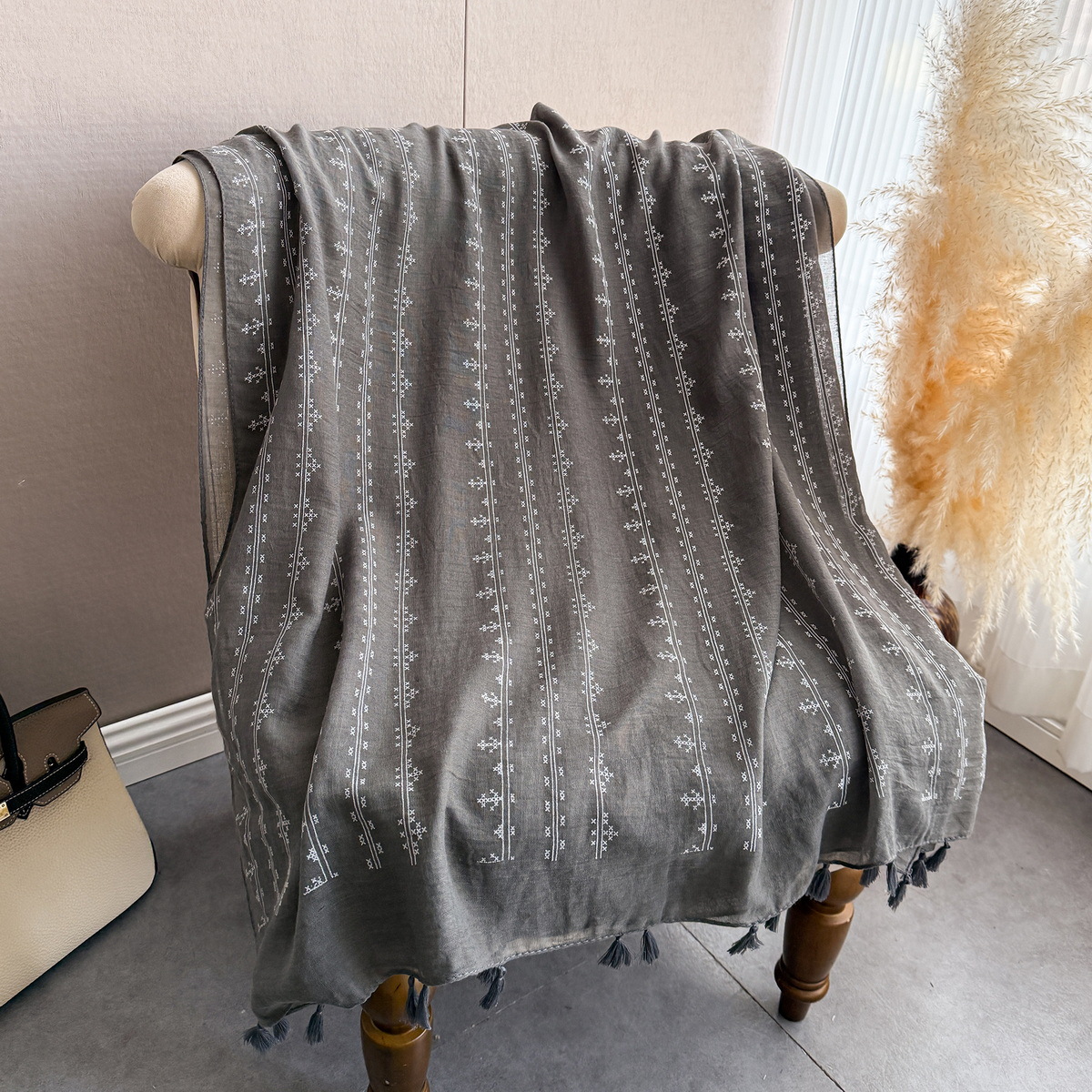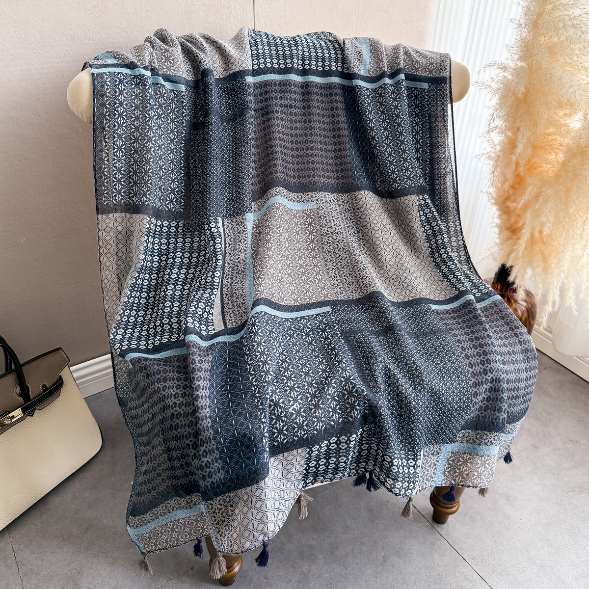 봄 여름 신상 기하학 무늬 면마 소재 일본풍 문예풍 면마 스카프 여성 여행 사진 촬영용 차양 숄