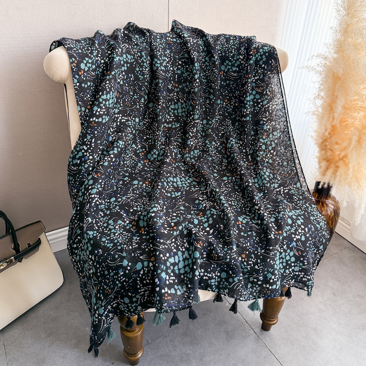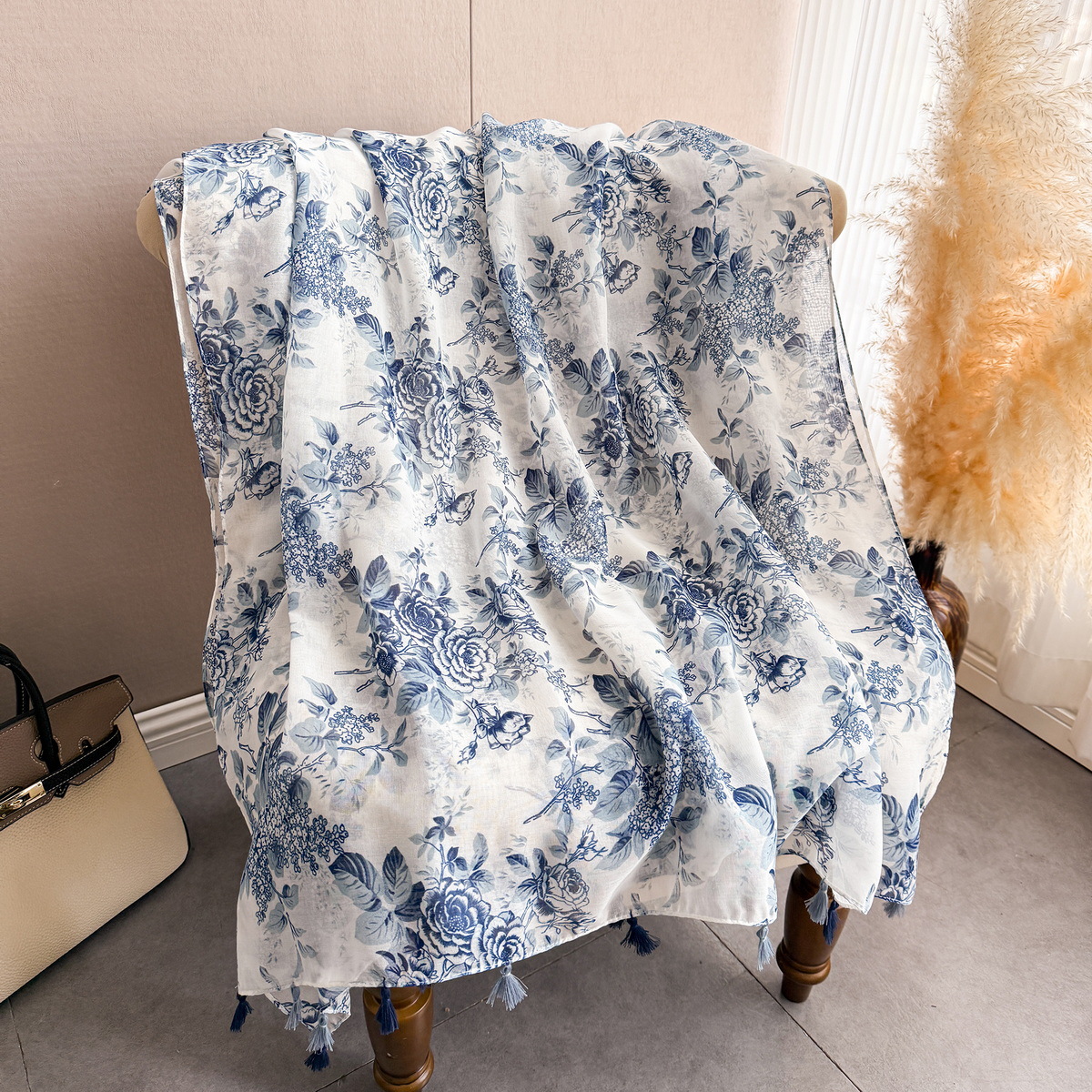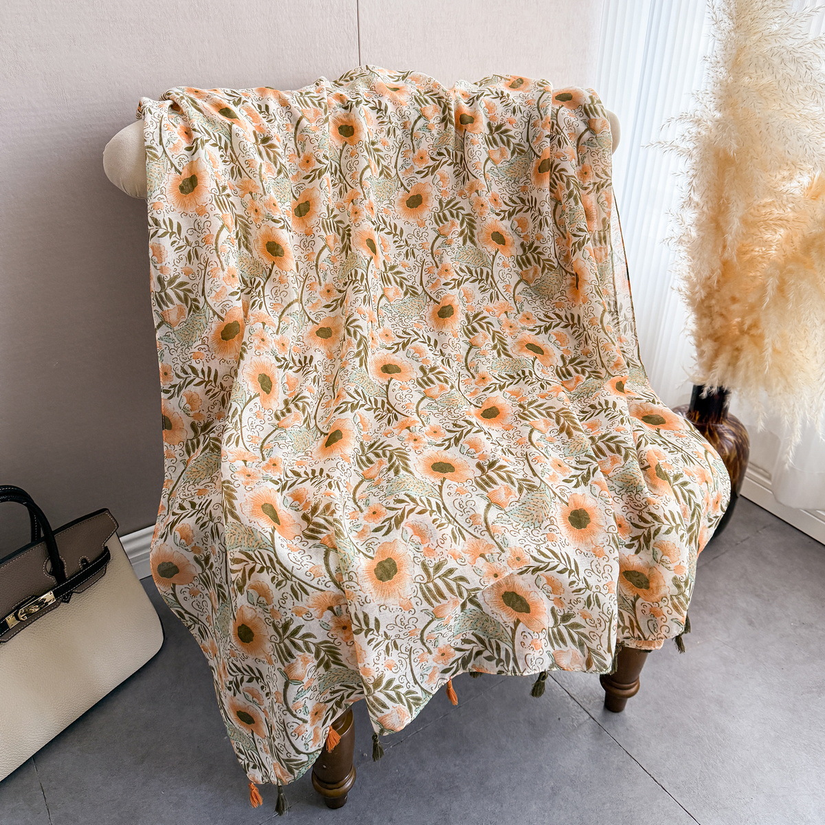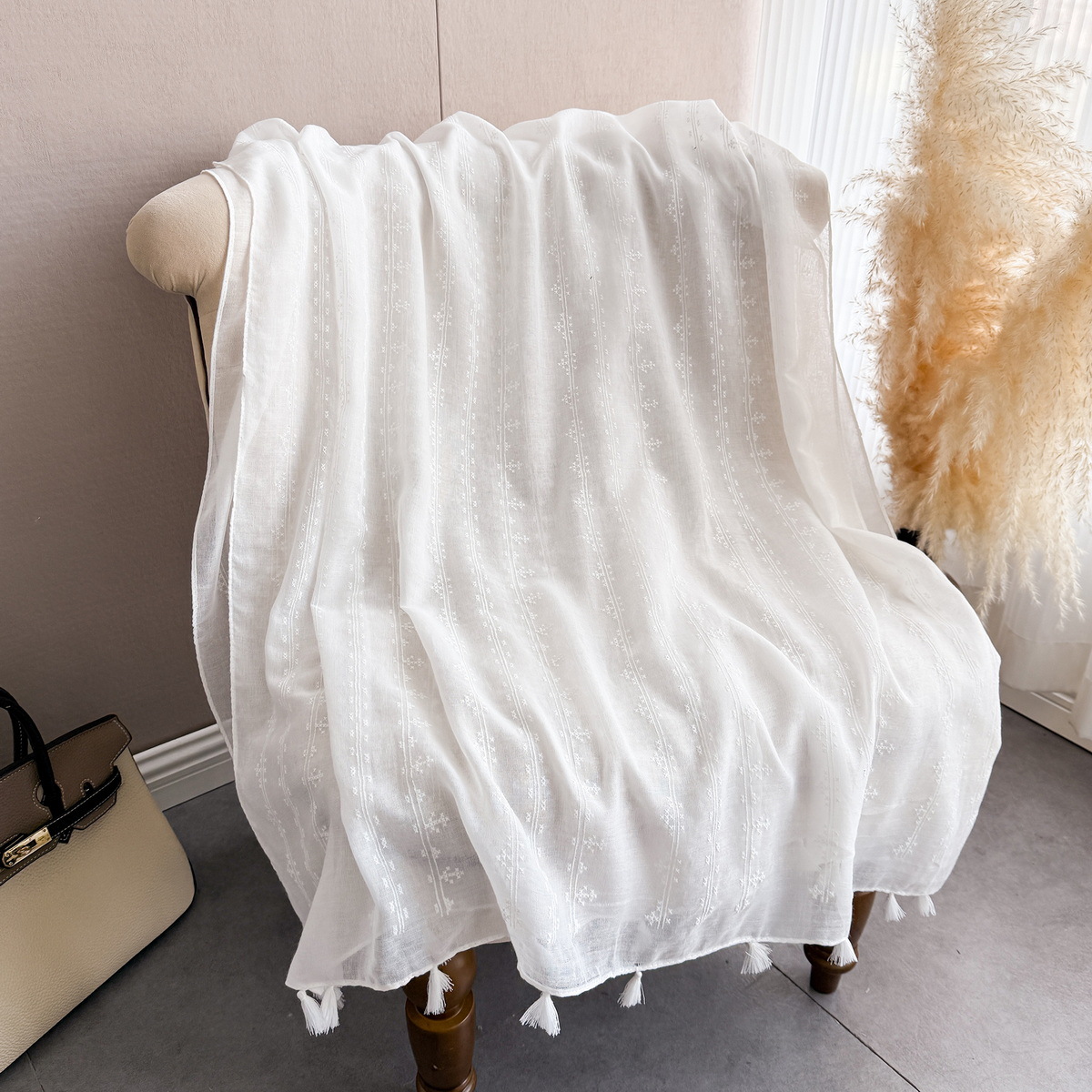 봄 여름 신상 기하학 무늬 면마 소재 일본풍 문예풍 면마 스카프 여성 여행 사진 촬영용 차양 숄