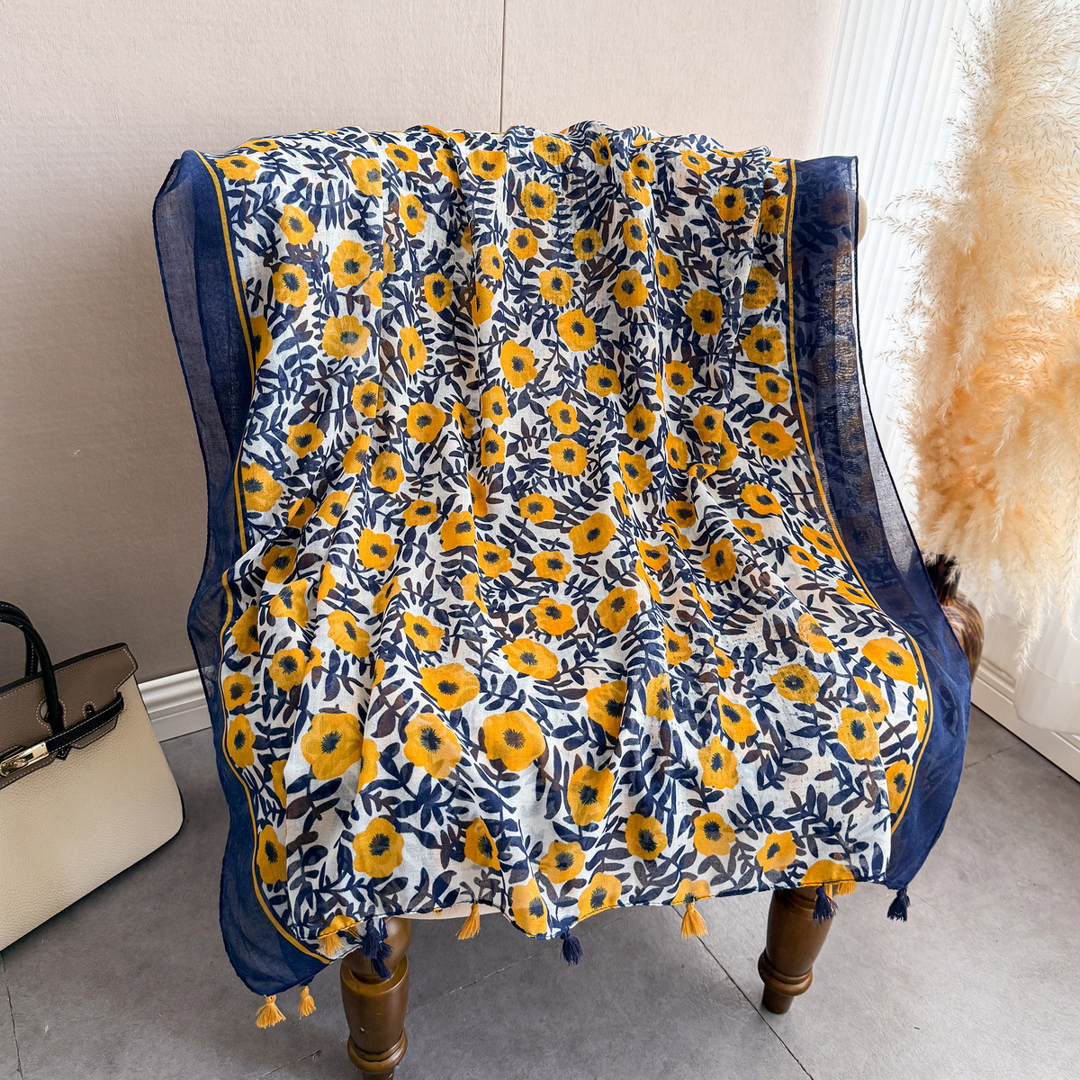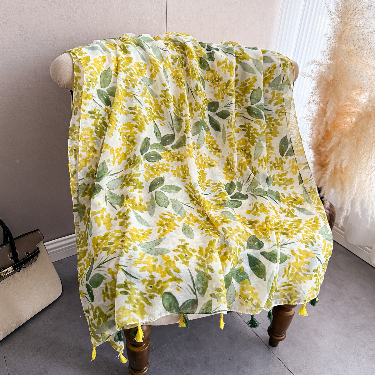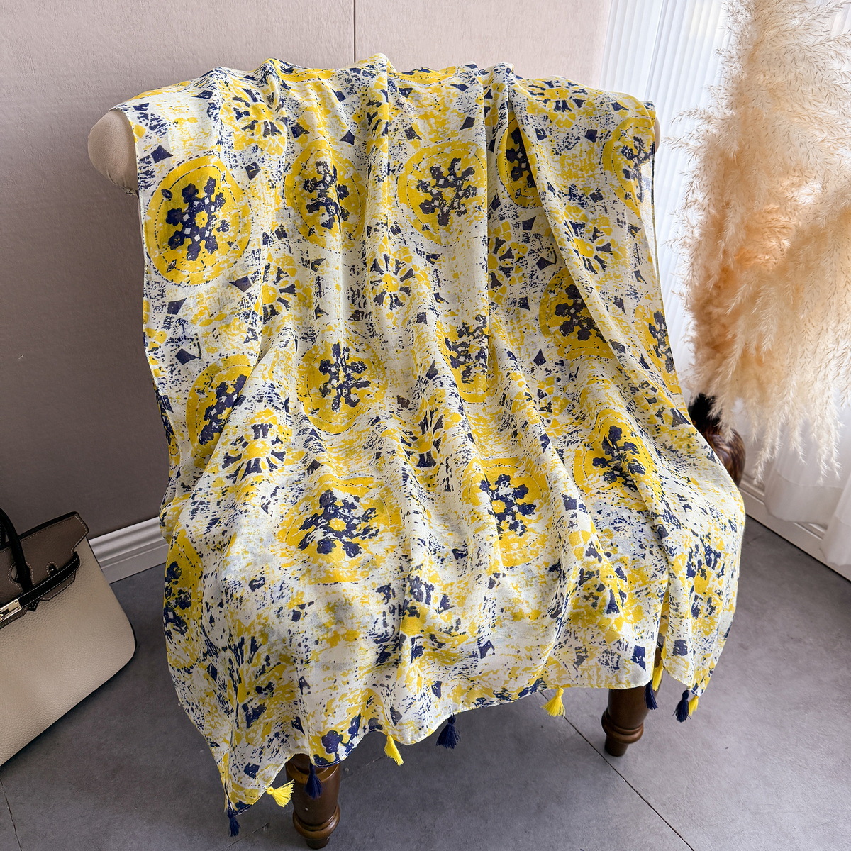 • 에스닉 스타일 노란색 꽃 술 스카프 33#