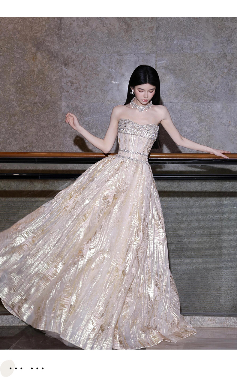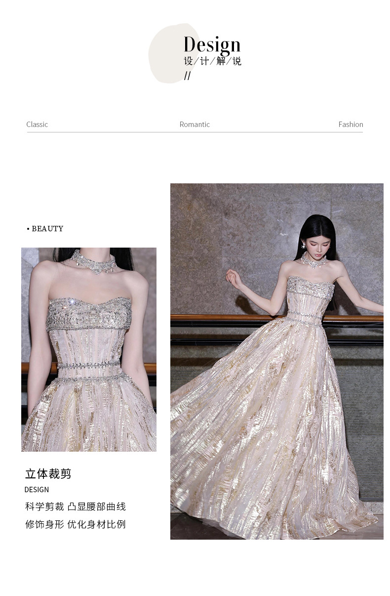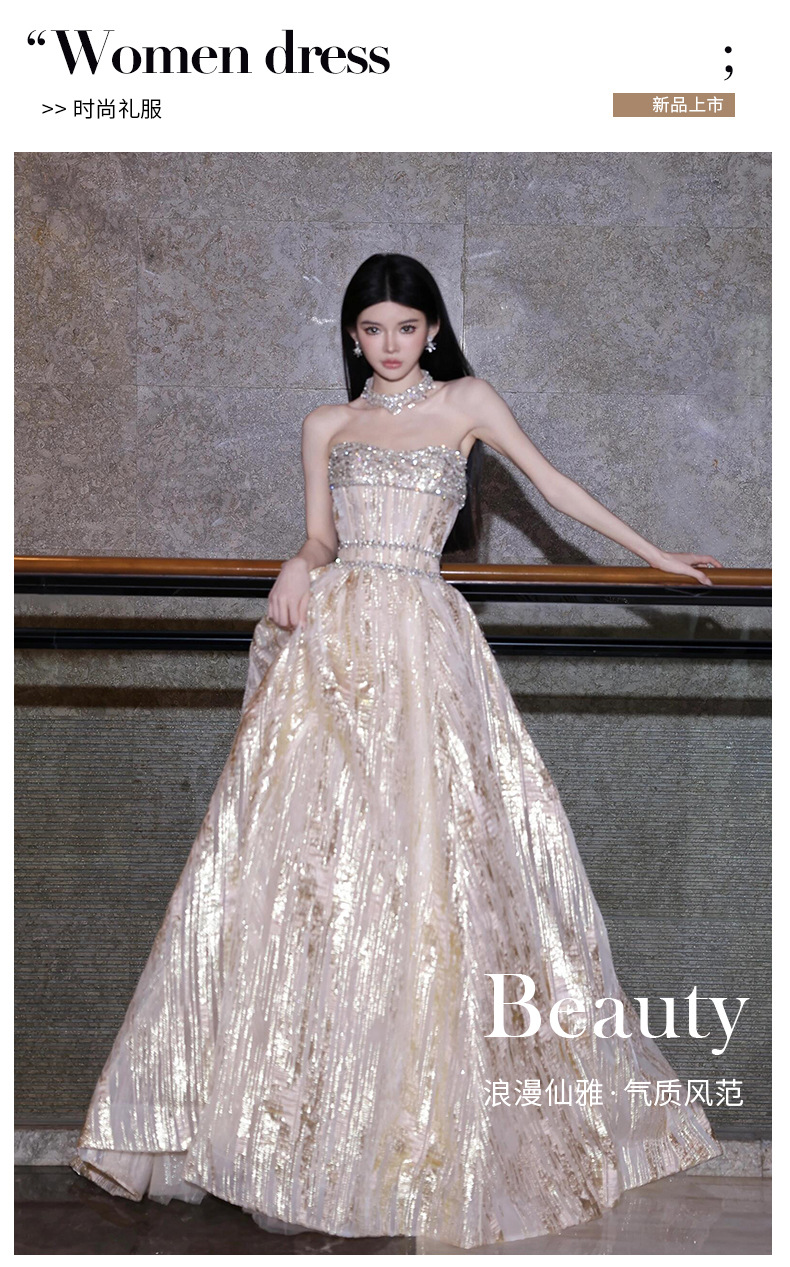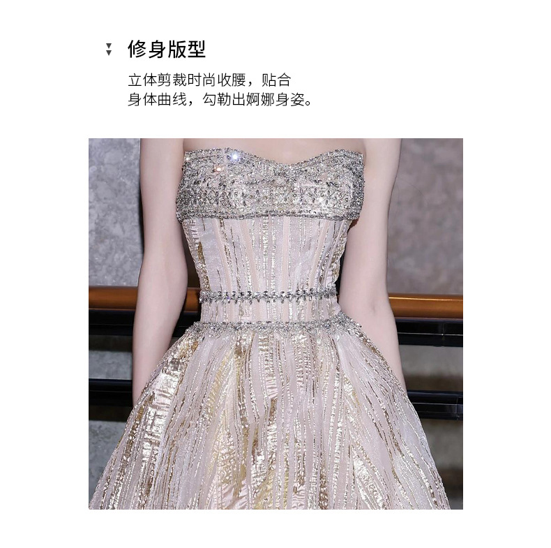 연회 이브닝 드레스 2026 신상 연한 샴페인 색상 튜브탑 졸업 시즌 성인식 롱 드레스 생일 파티 미니 드레스스토어 가기