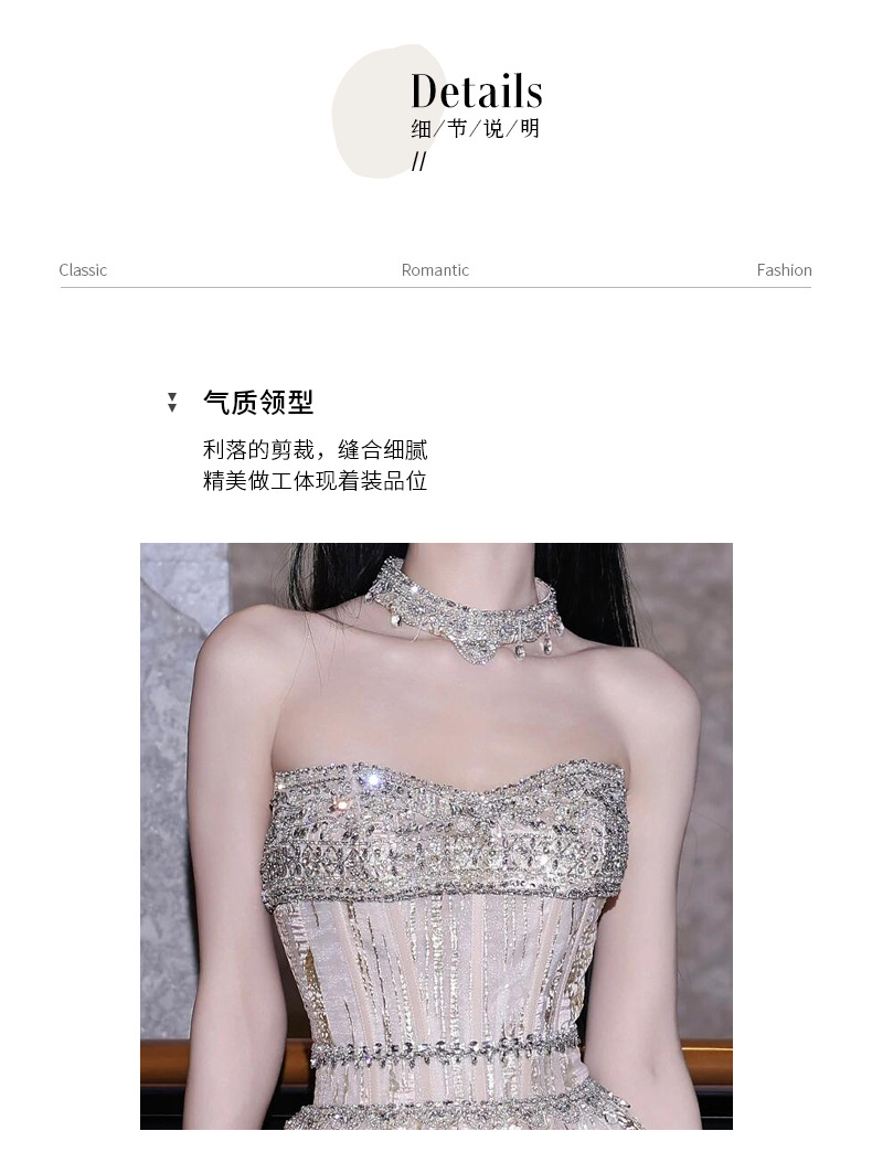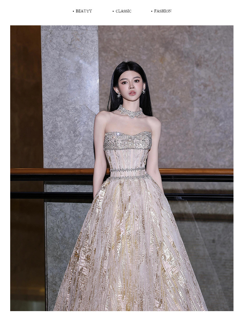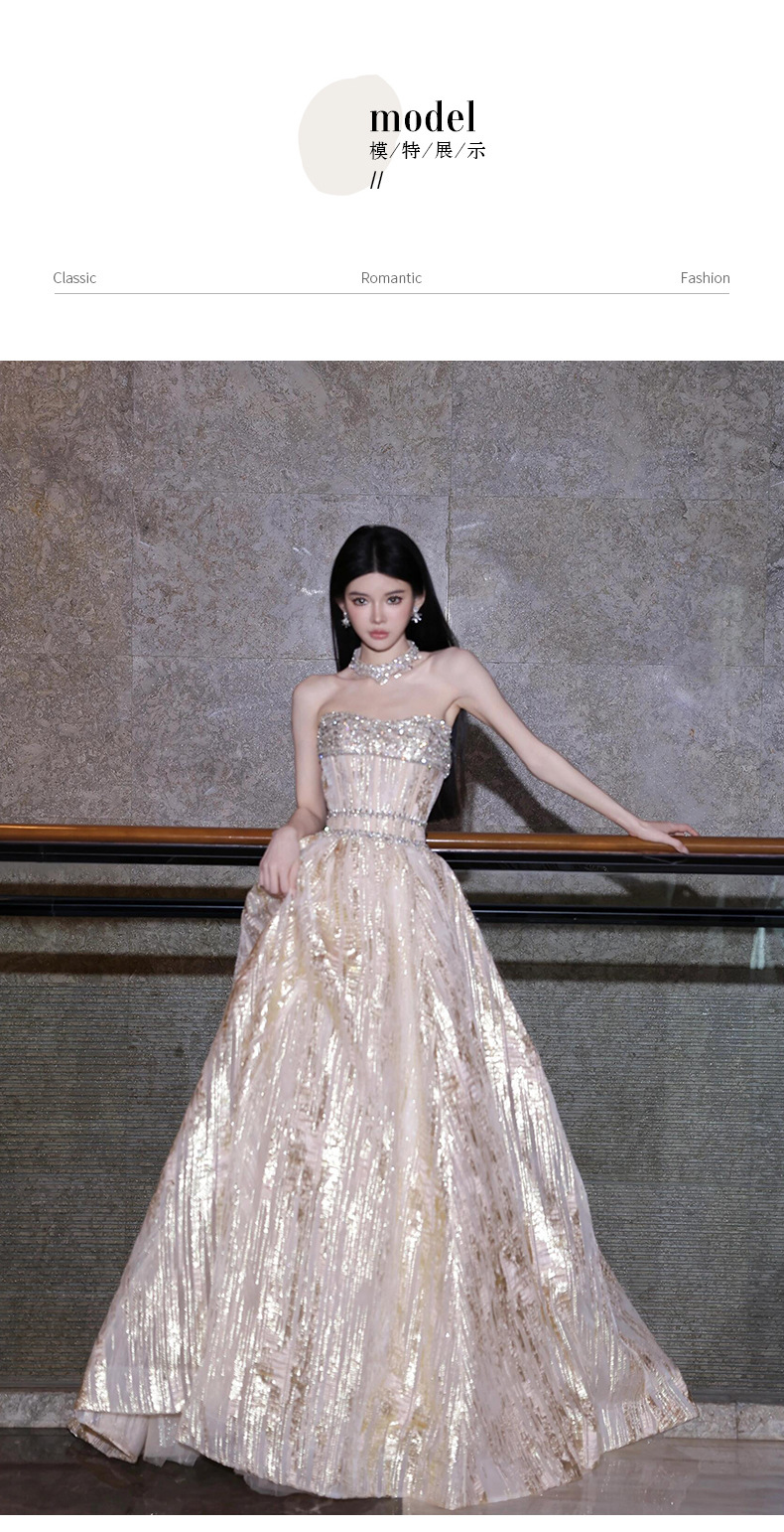 연회 이브닝 드레스 2026 신상 연한 샴페인 색상 튜브탑 졸업 시즌 성인식 롱 드레스 생일 파티 미니 드레스스토어 가기
