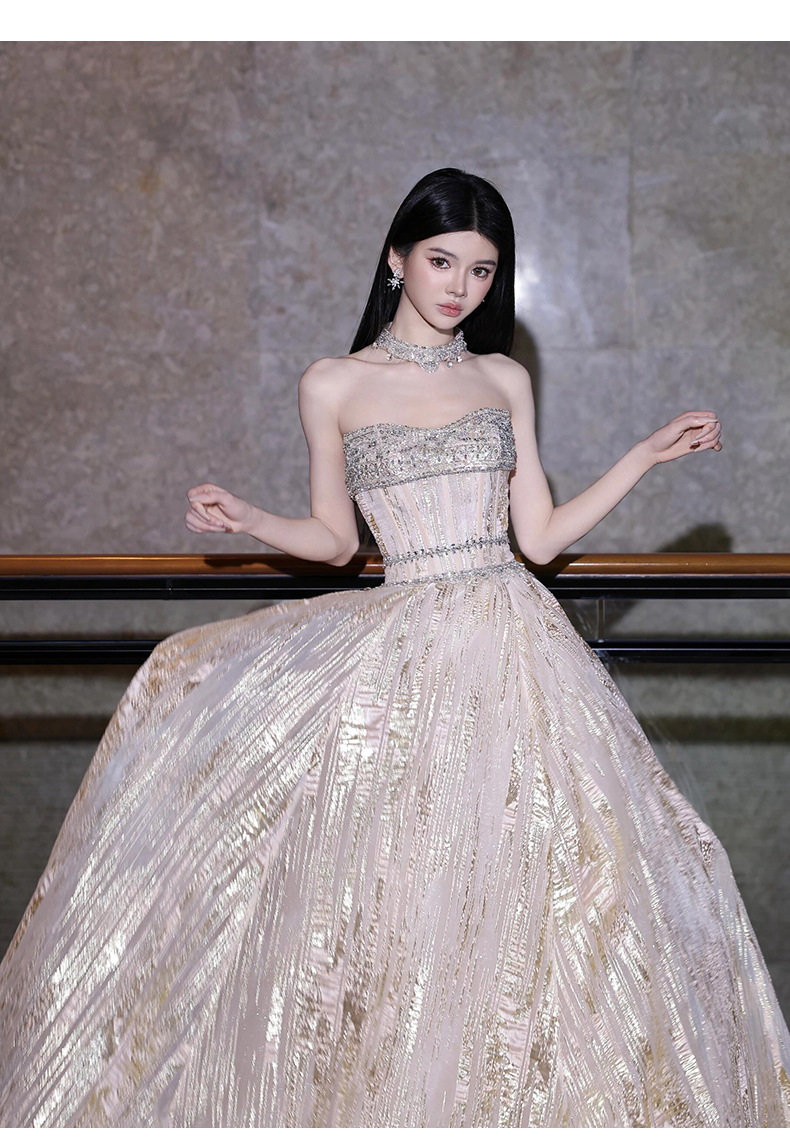 연회 이브닝 드레스 2026 신상 연한 샴페인 색상 튜브탑 졸업 시즌 성인식 롱 드레스 생일 파티 미니 드레스