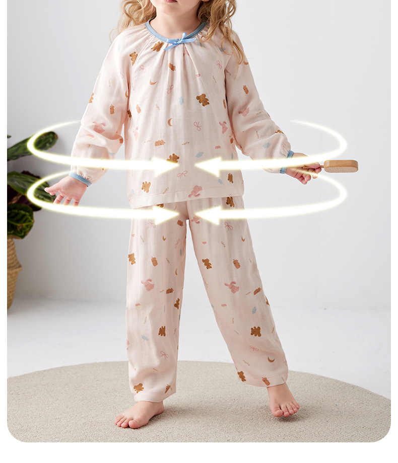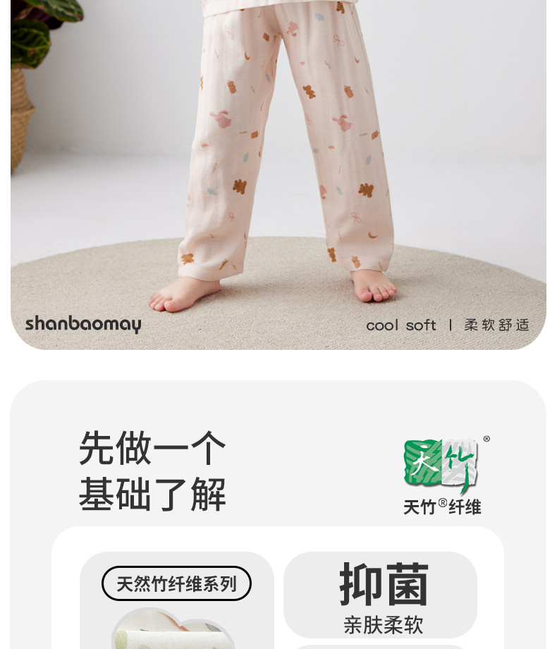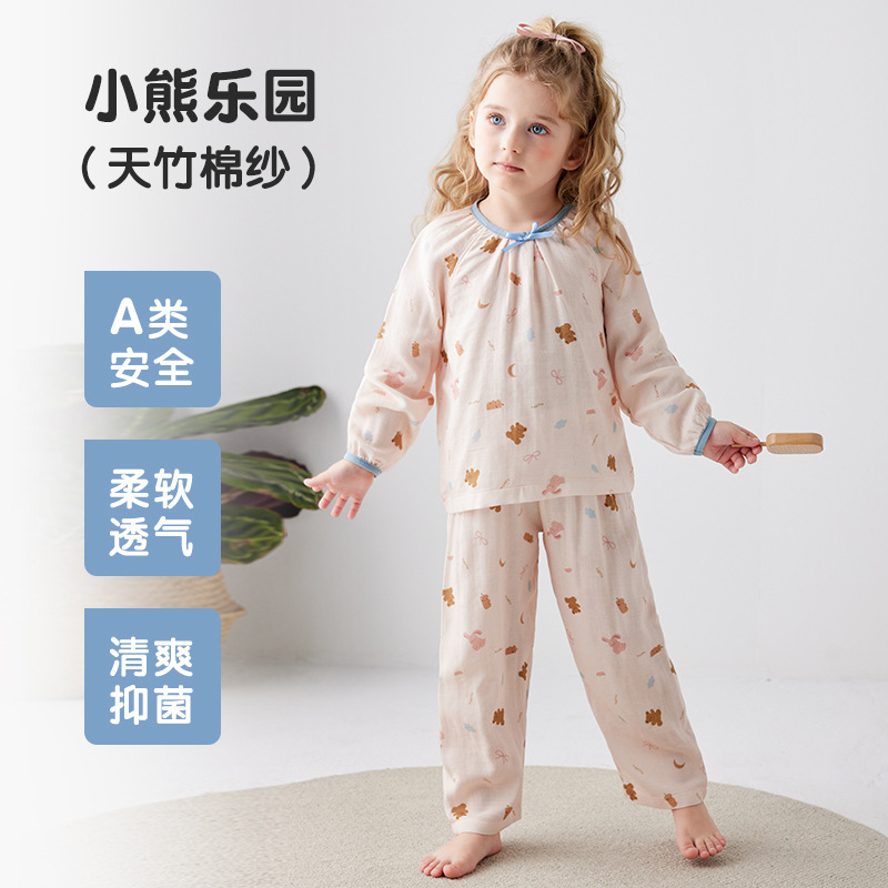 Shangbaomai 봄과 여름 소녀 잠옷 세트 대나무 섬유 어린이 가정 의류 소녀 Tianzhu 면사 통기성 및 땀 흡수스토어 가기