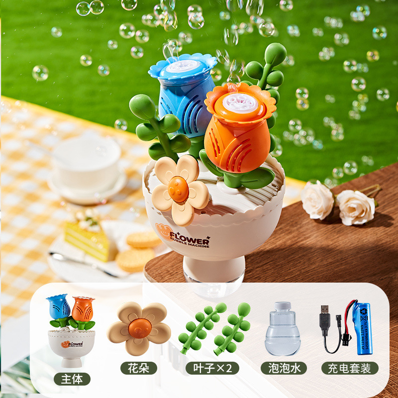 꽃다발 버블 머신 전기 완전 자동 버블 버블 라이트 어린이 장난감 소년과 소녀를위한