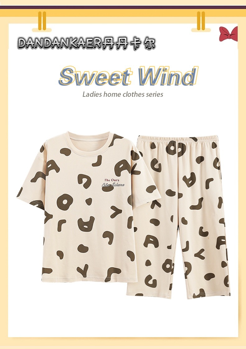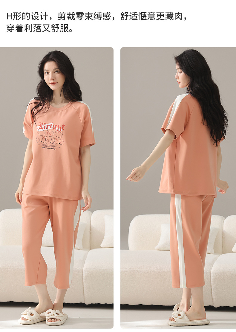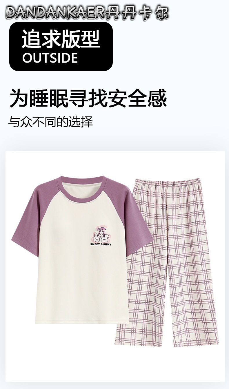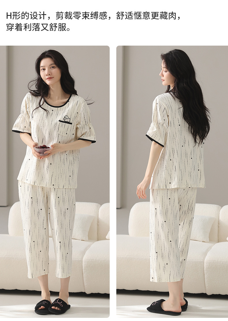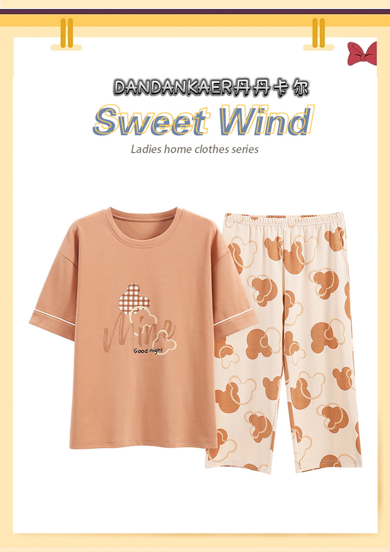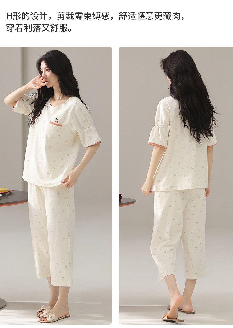 여성용 잠옷 여름 순수 코튼 반팔 캐주얼 달콤하고 귀여운 소녀 학생 플러스 사이즈 크롭 바지 홈웨어 세트스토어 가기
