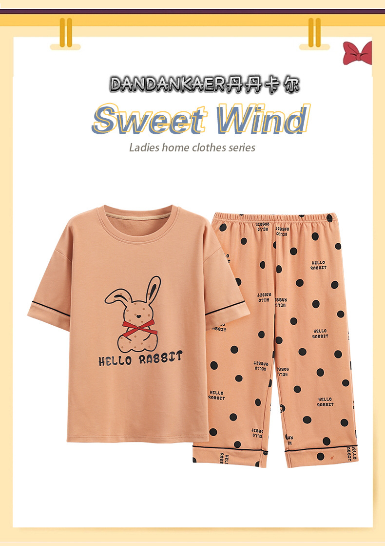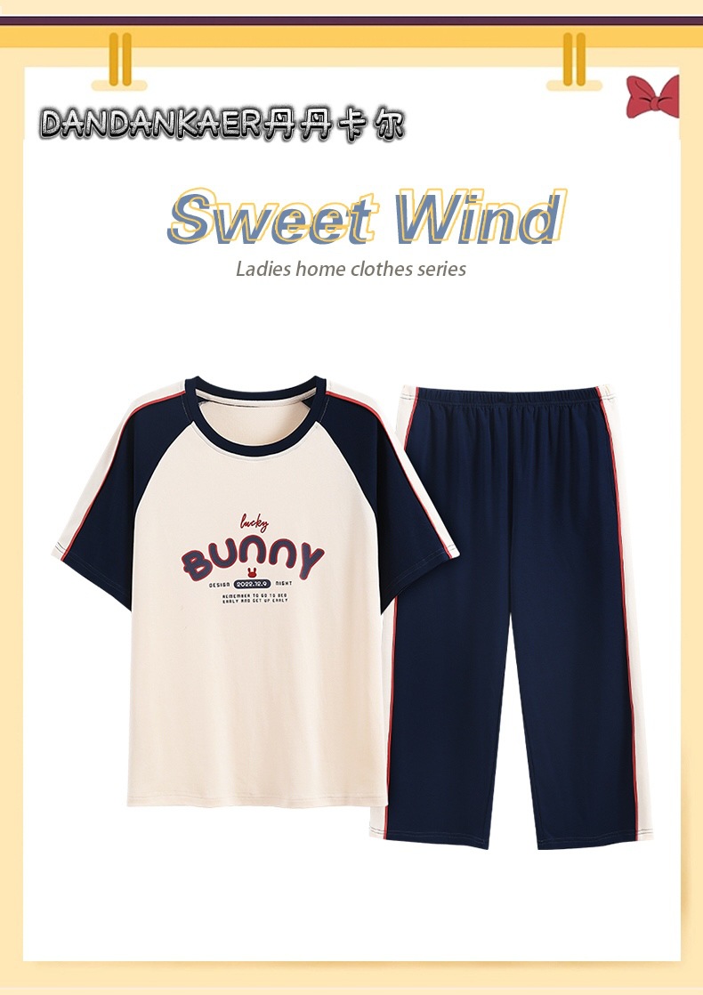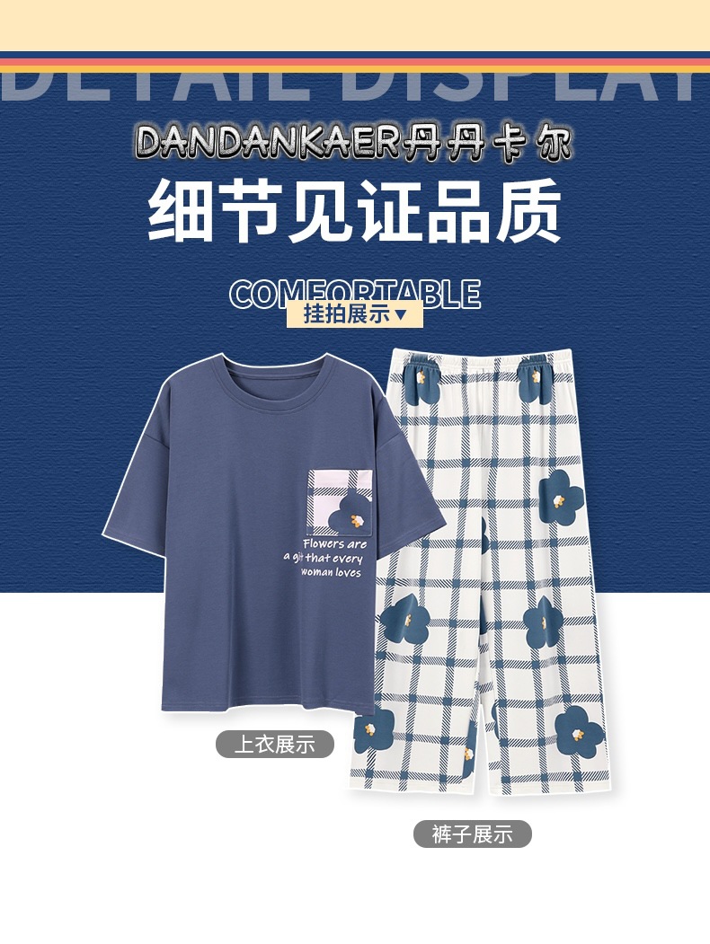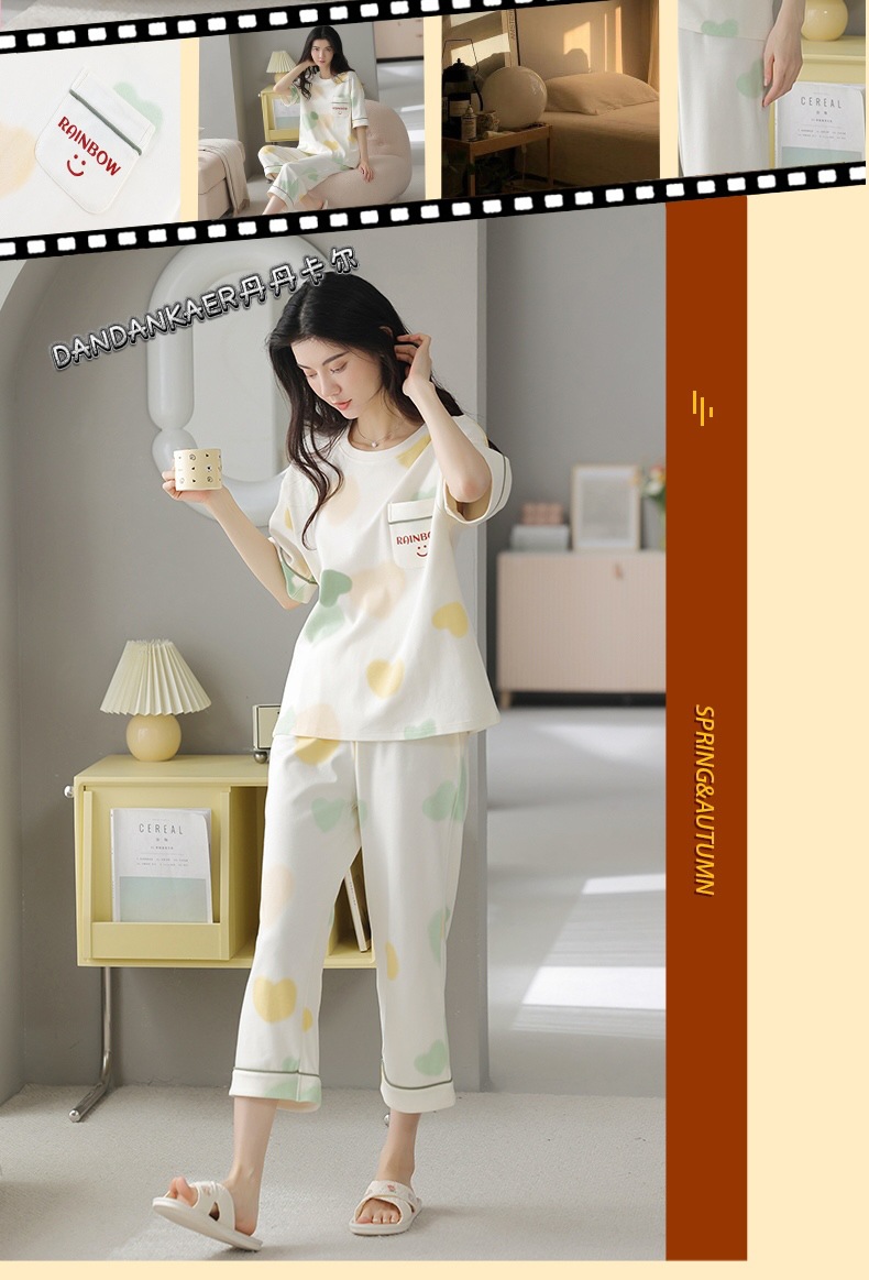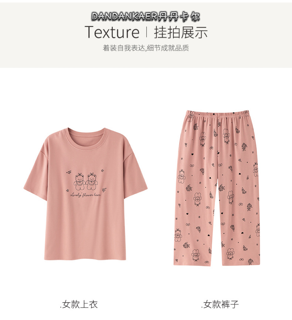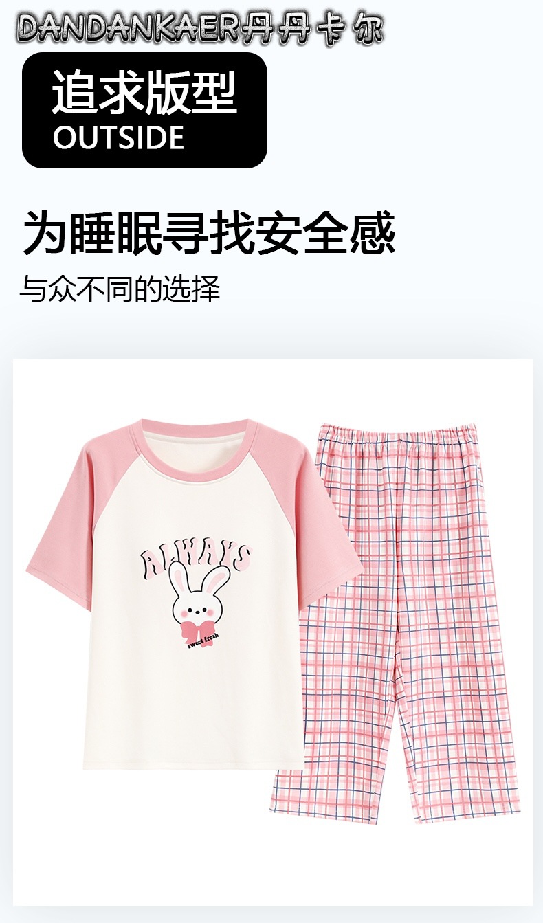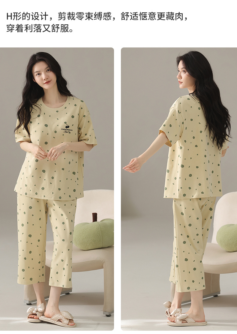 여성용 잠옷 여름 순수 코튼 반팔 캐주얼 달콤하고 귀여운 소녀 학생 플러스 사이즈 크롭 바지 홈웨어 세트스토어 가기