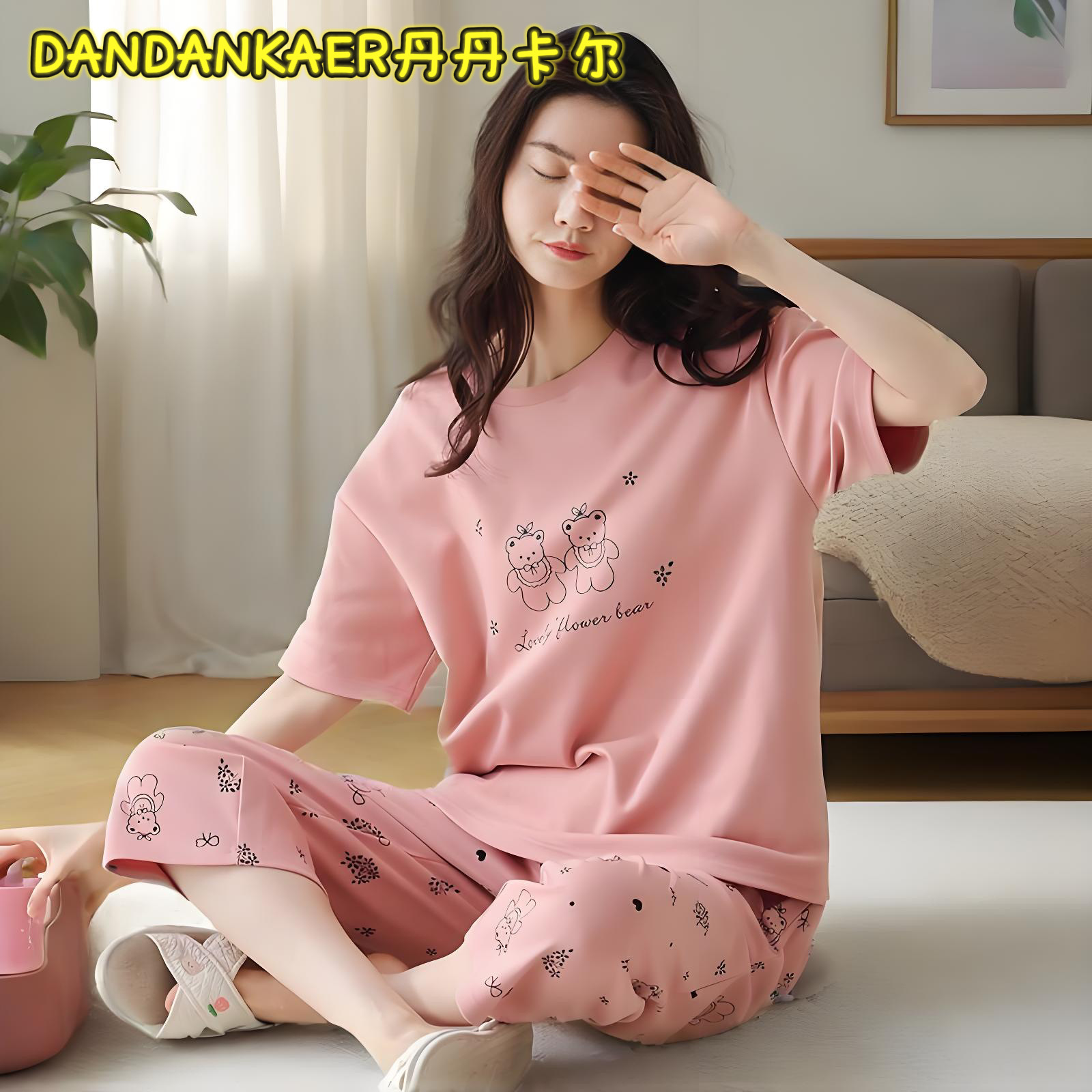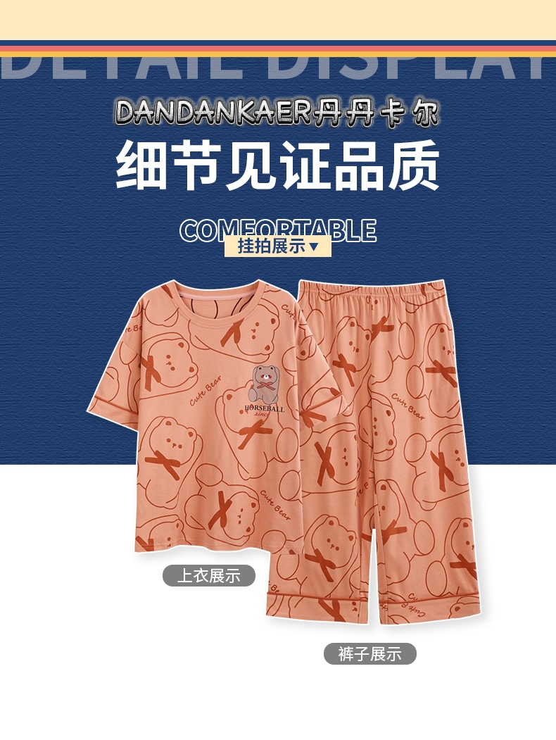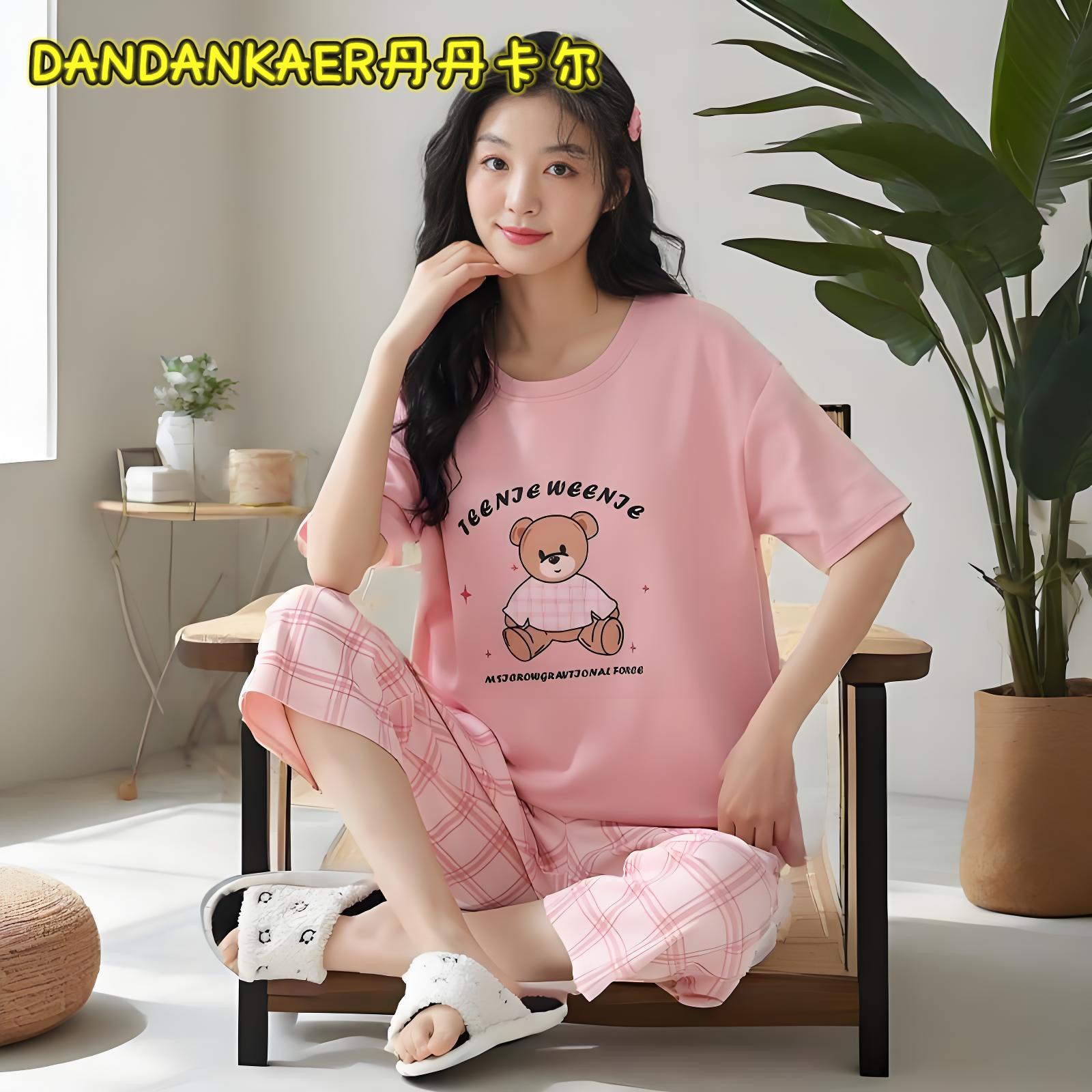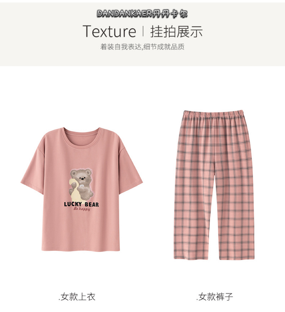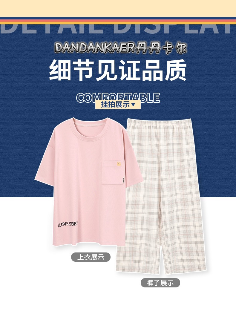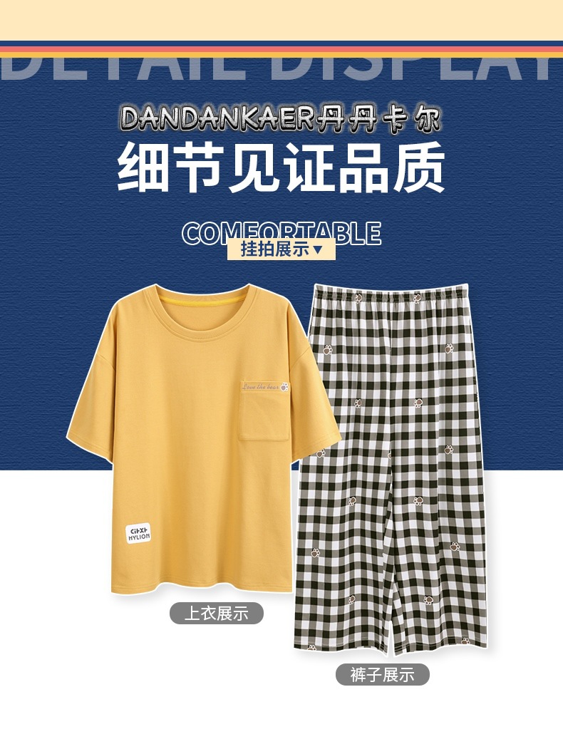 여성용 잠옷 여름 순수 코튼 반팔 캐주얼 달콤하고 귀여운 소녀 학생 플러스 사이즈 크롭 바지 홈웨어 세트스토어 가기