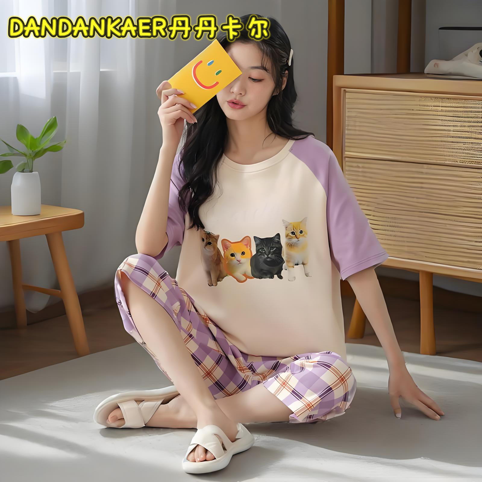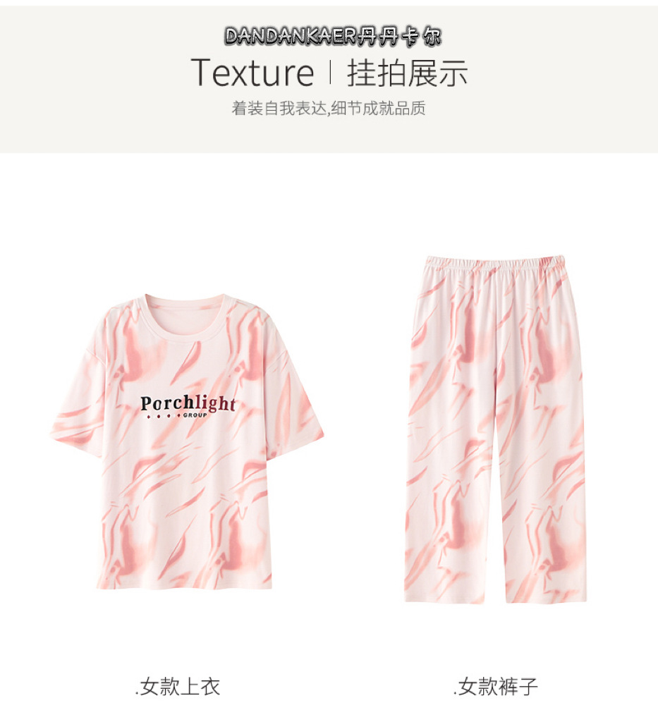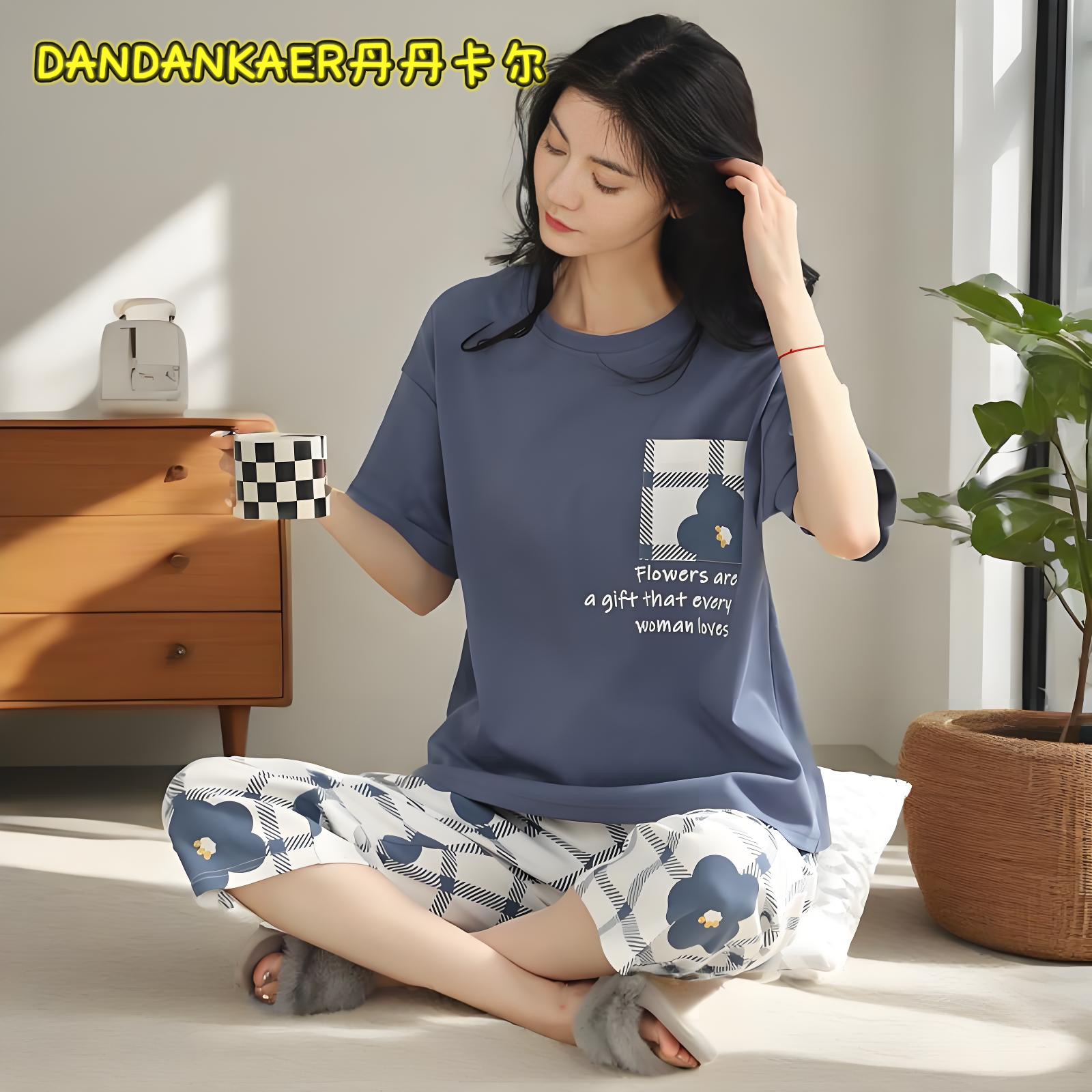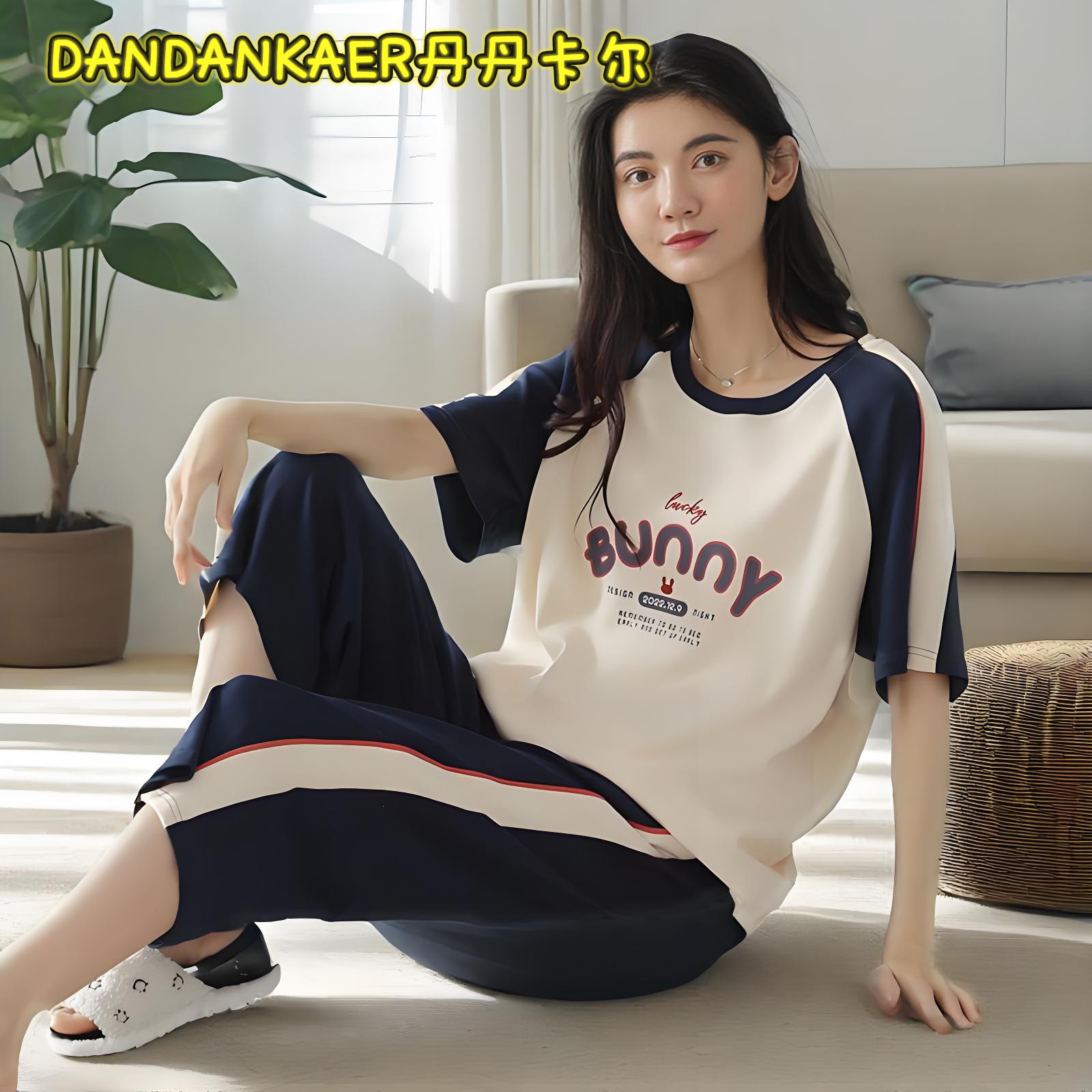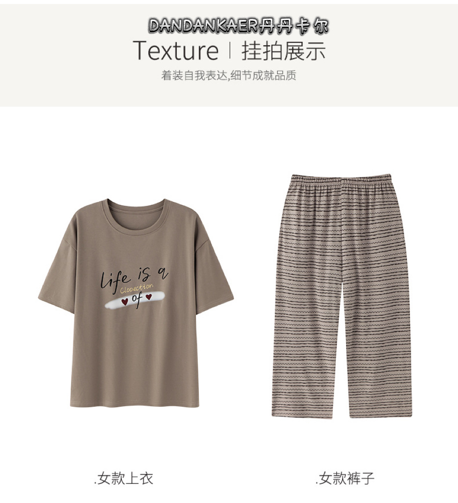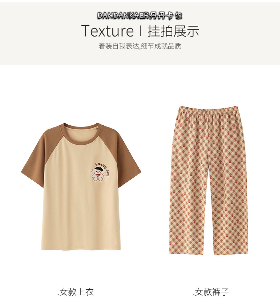 여성용 잠옷 여름 순수 코튼 반팔 캐주얼 달콤하고 귀여운 소녀 학생 플러스 사이즈 크롭 바지 홈웨어 세트스토어 가기