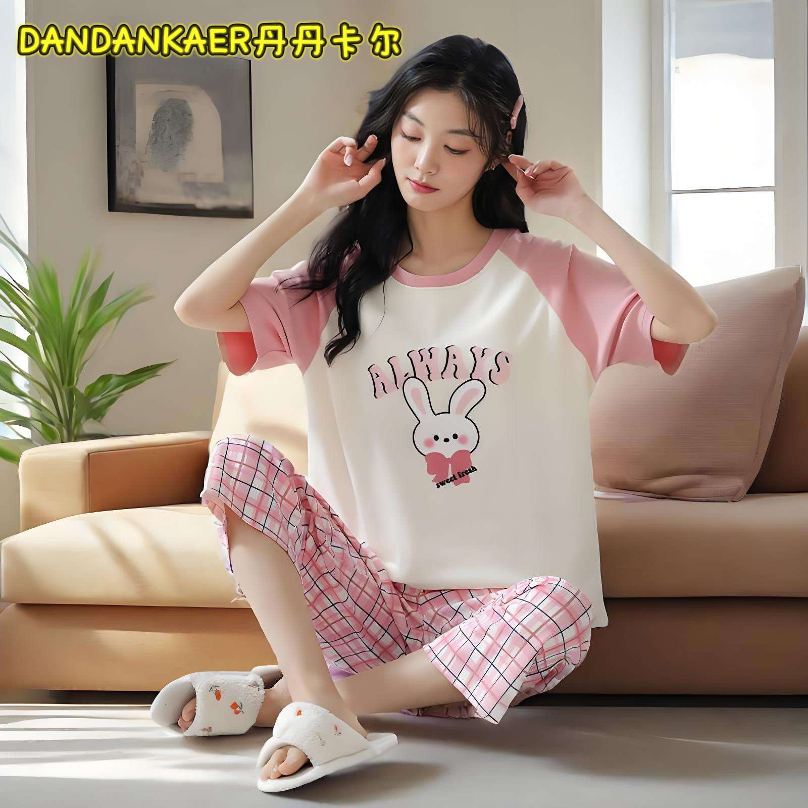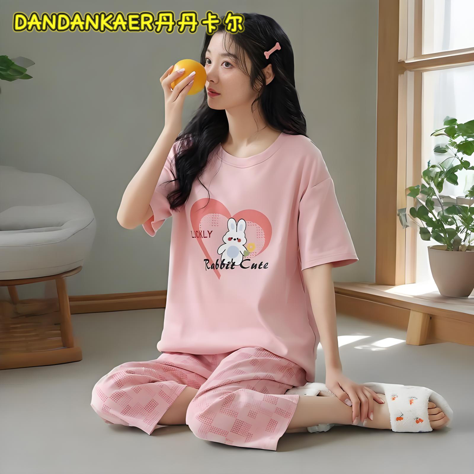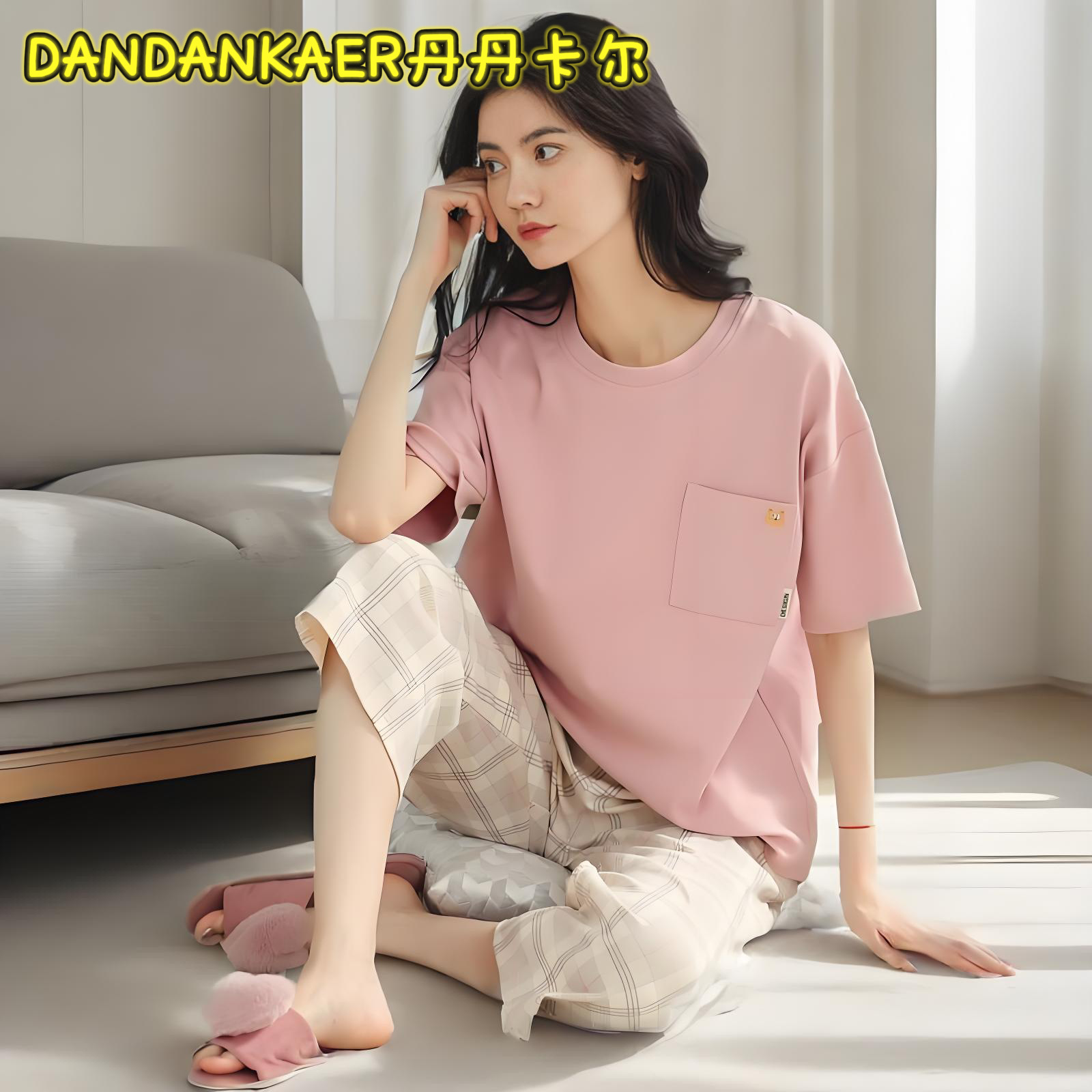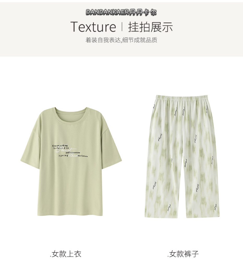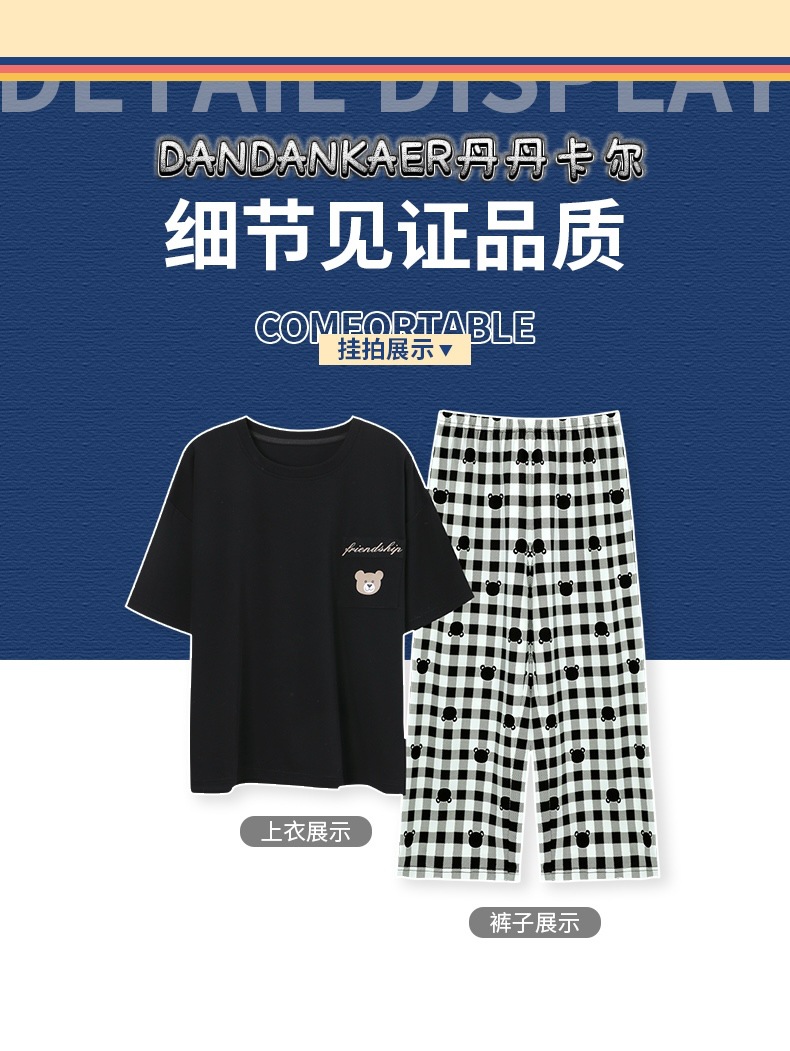 여성용 잠옷 여름 순수 코튼 반팔 캐주얼 달콤하고 귀여운 소녀 학생 플러스 사이즈 크롭 바지 홈웨어 세트스토어 가기