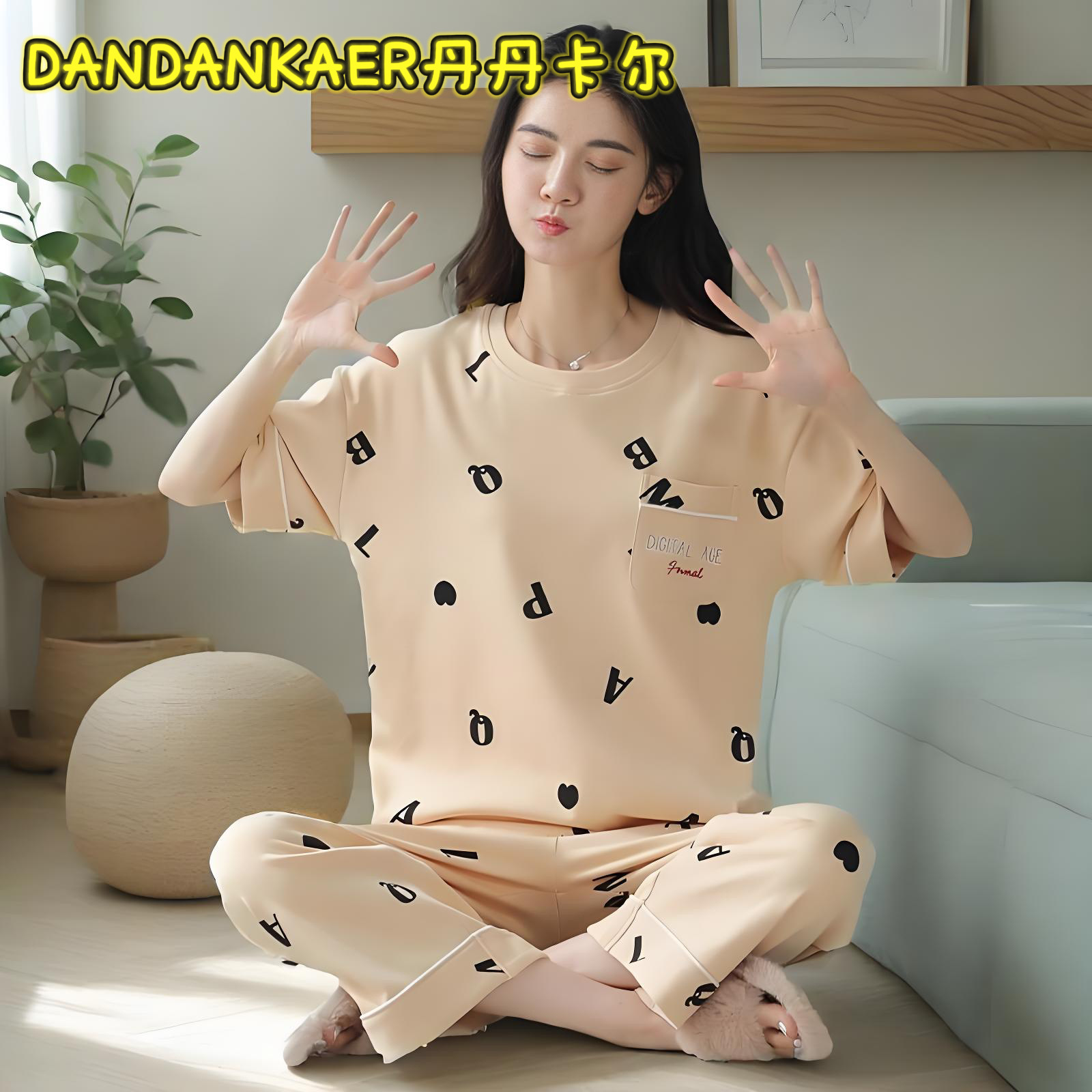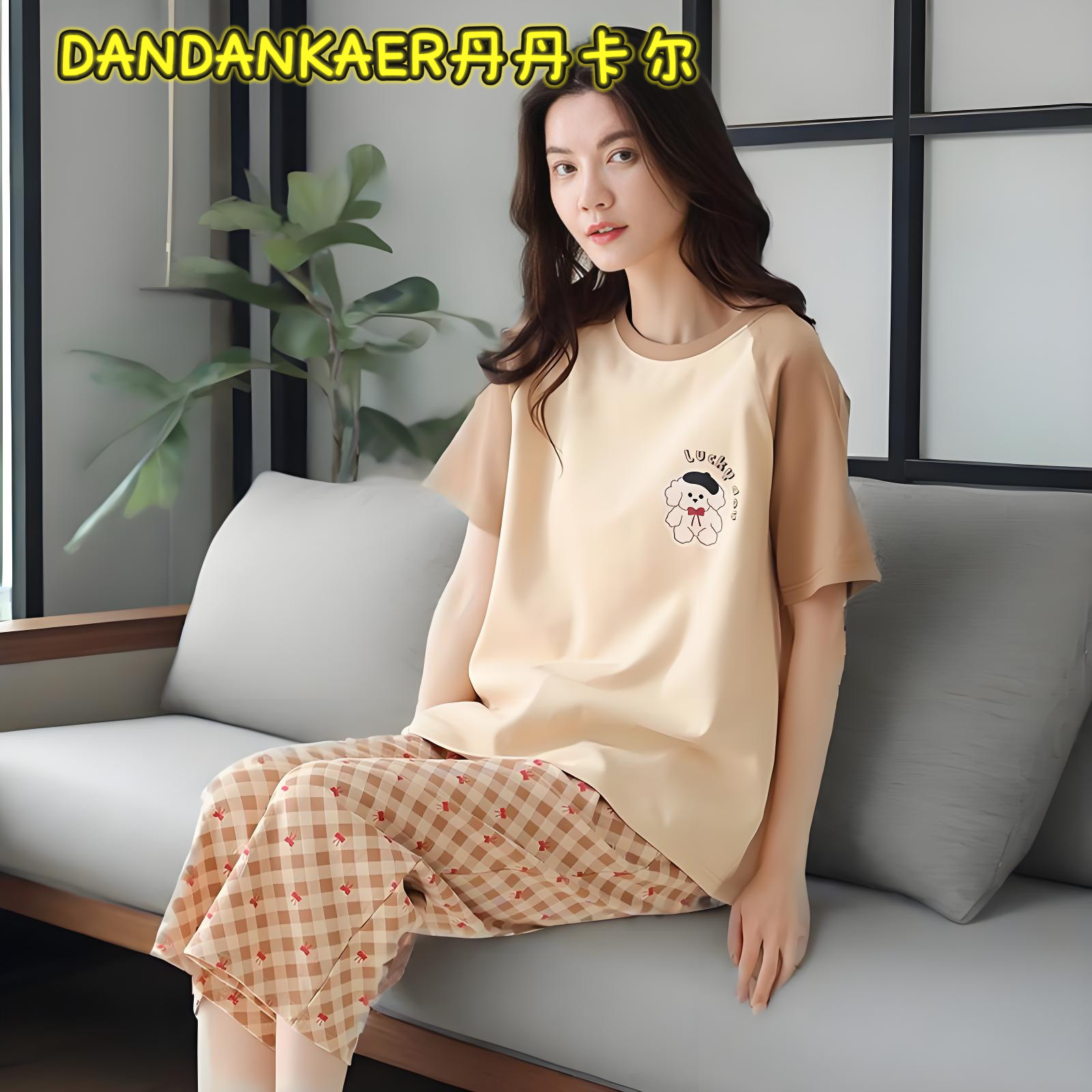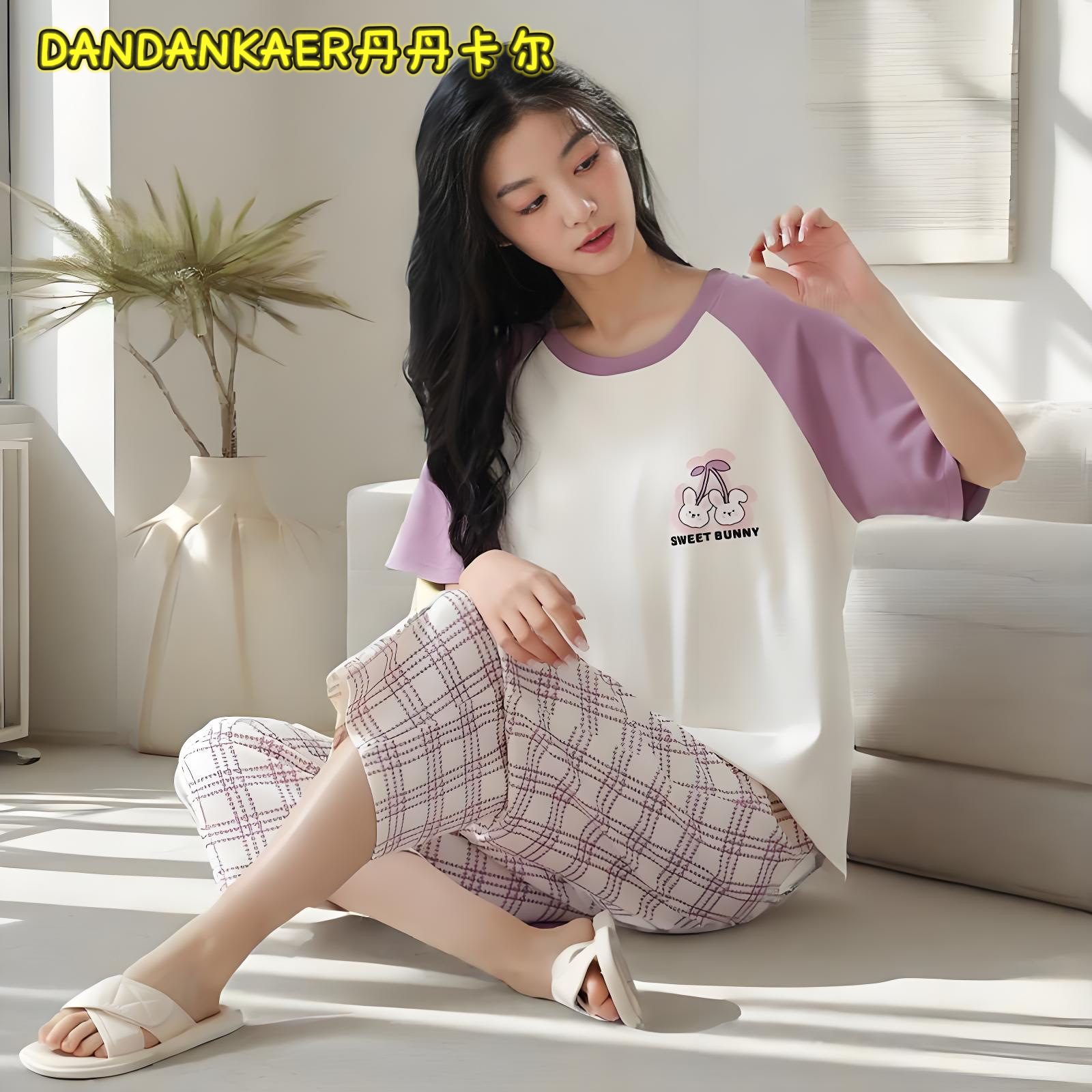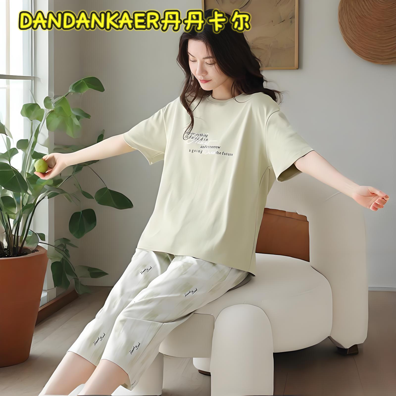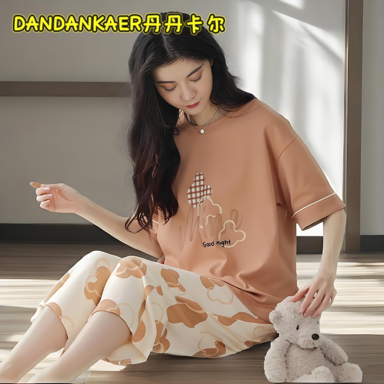 여성용 잠옷 여름 순수 코튼 반팔 캐주얼 달콤하고 귀여운 소녀 학생 플러스 사이즈 크롭 바지 홈웨어 세트스토어 가기
