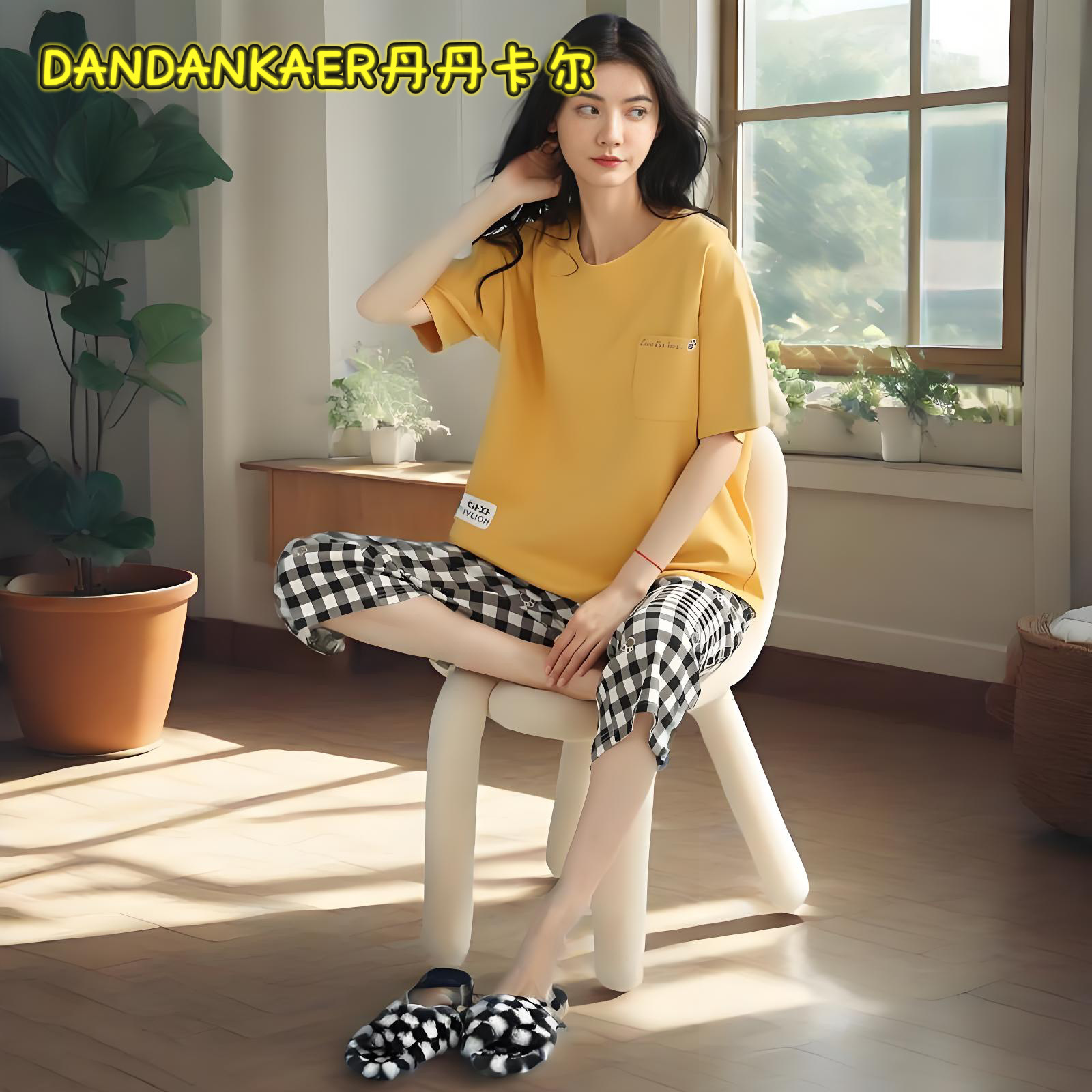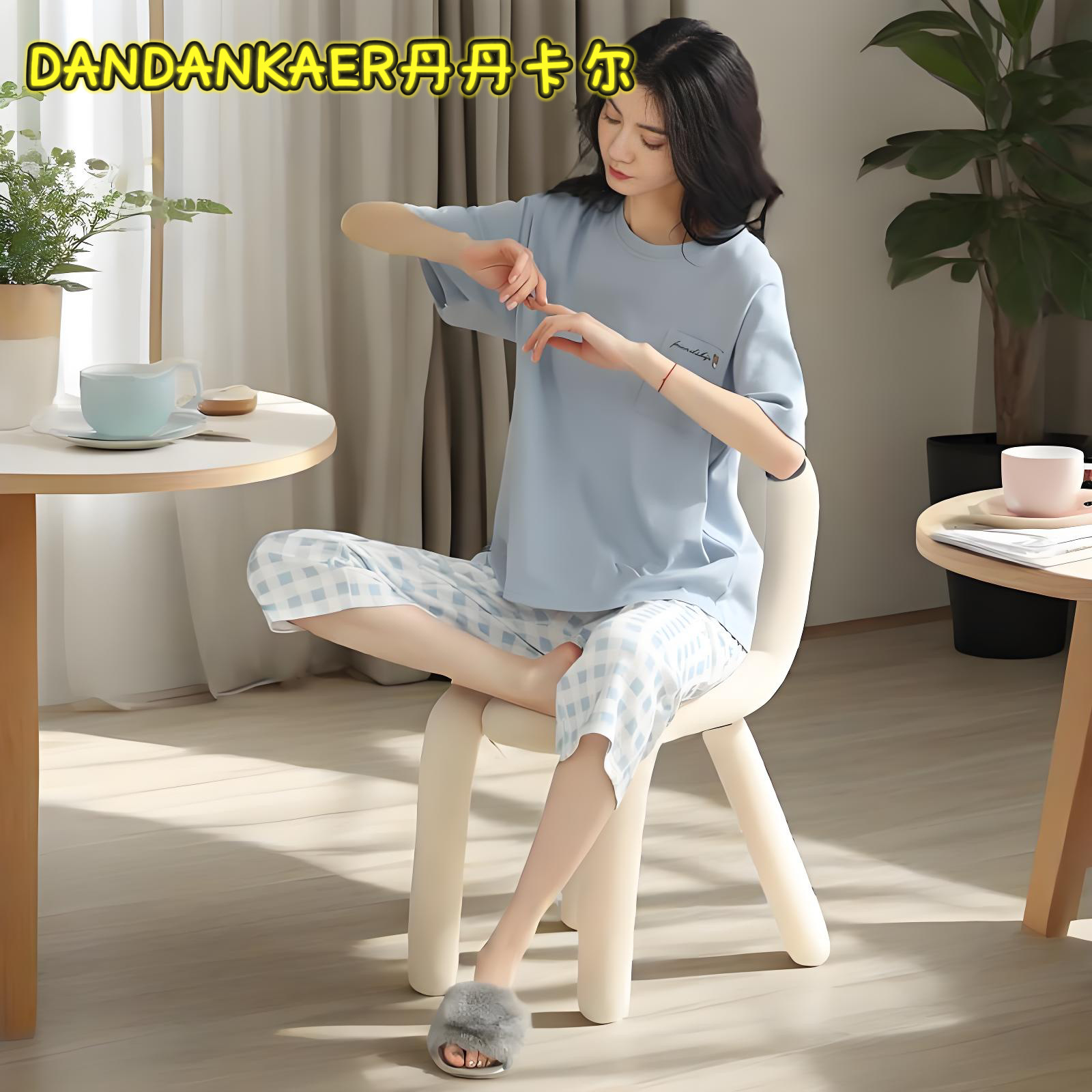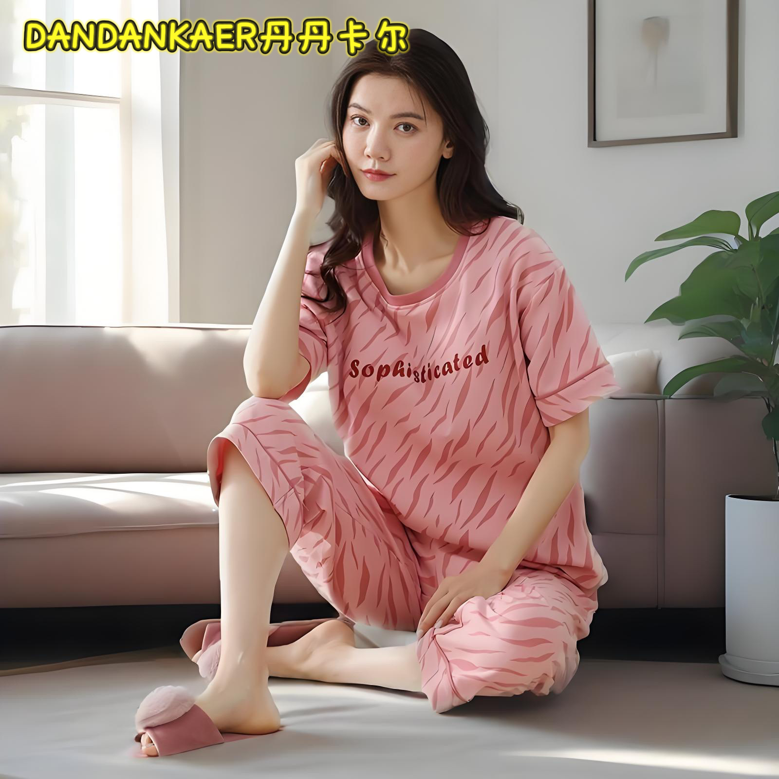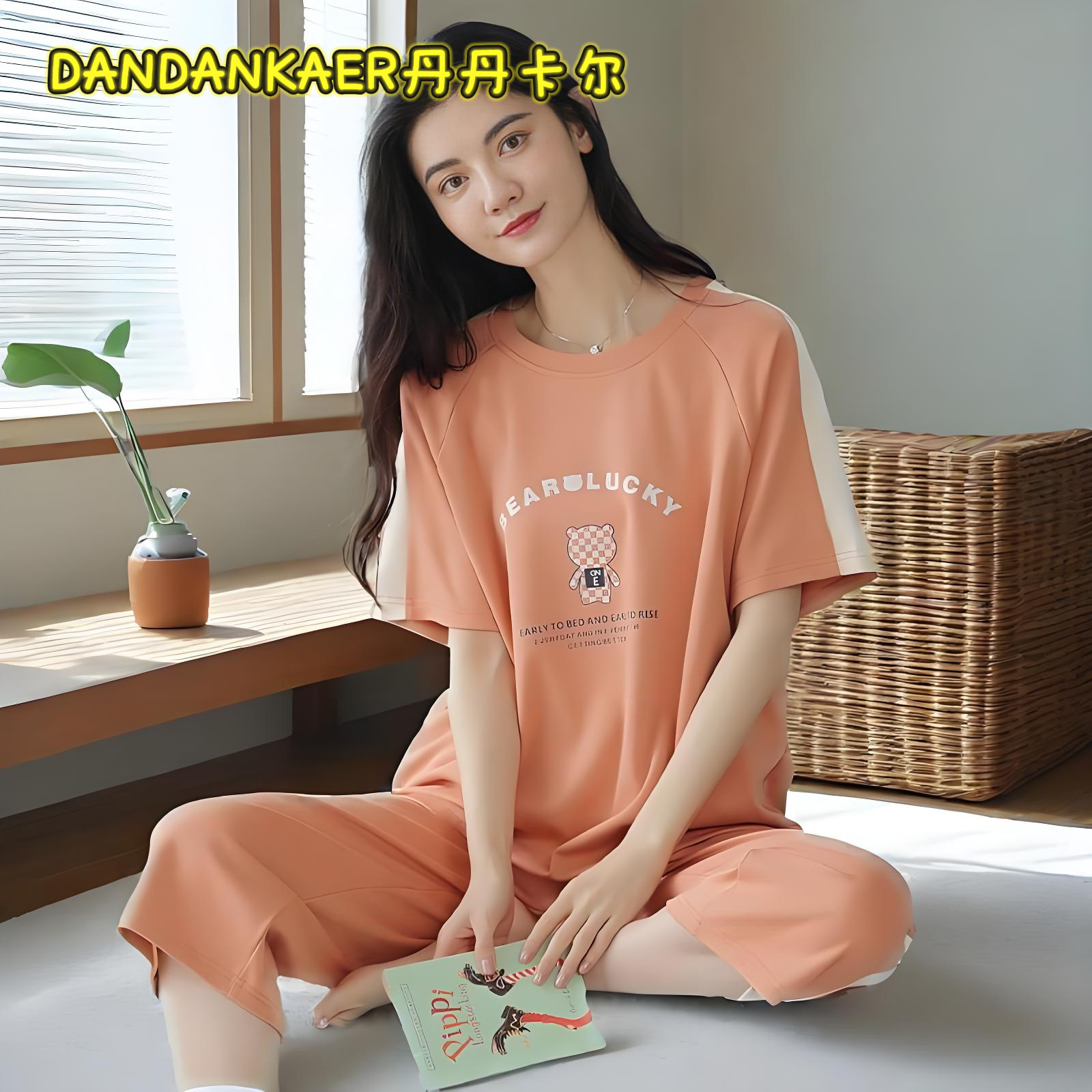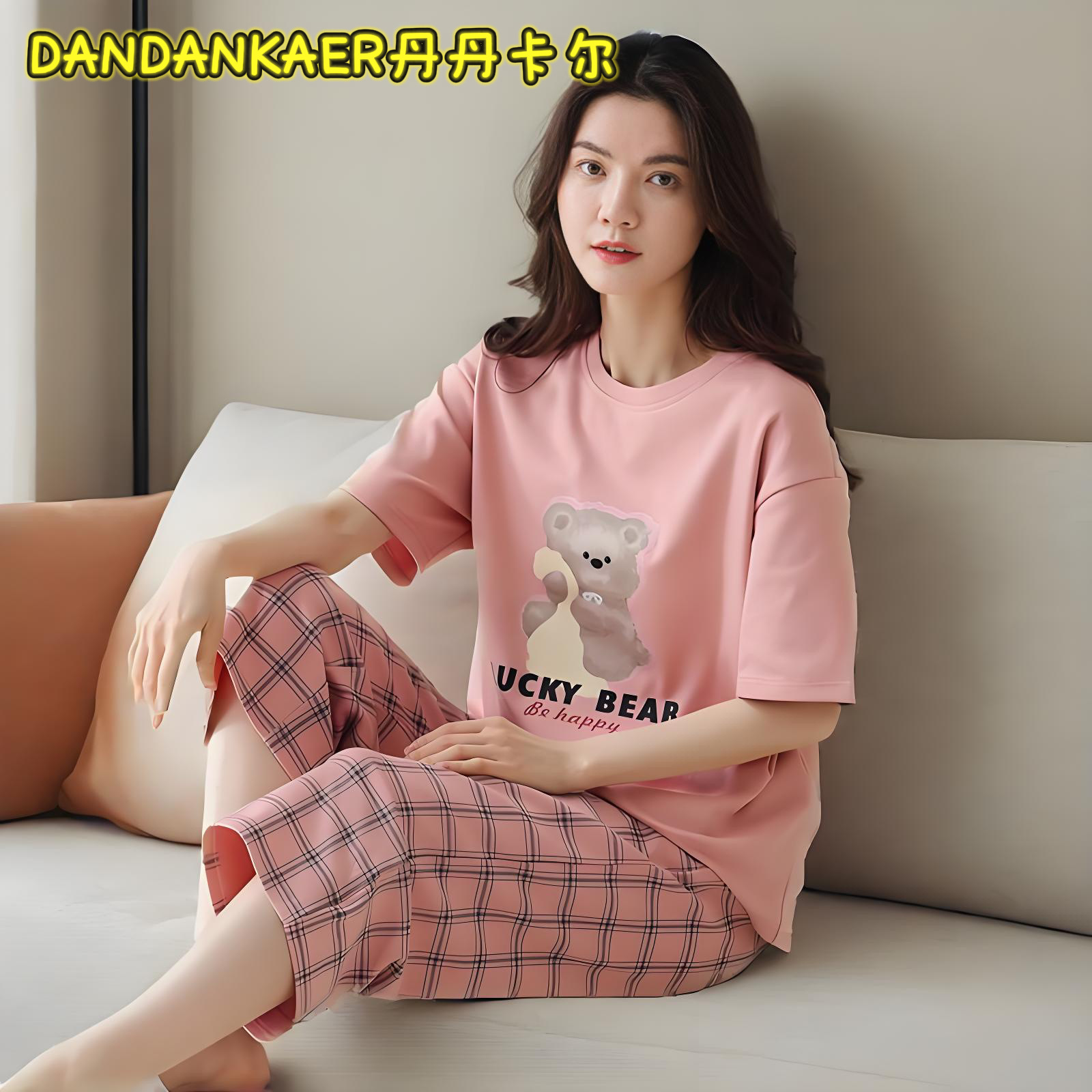 여성용 잠옷 여름 순수 코튼 반팔 캐주얼 달콤하고 귀여운 소녀 학생 플러스 사이즈 크롭 바지 홈웨어 세트스토어 가기