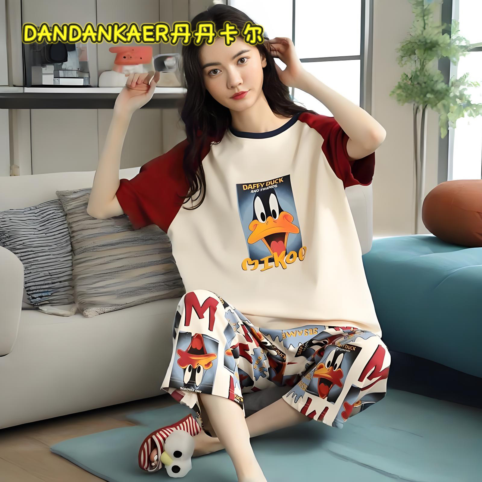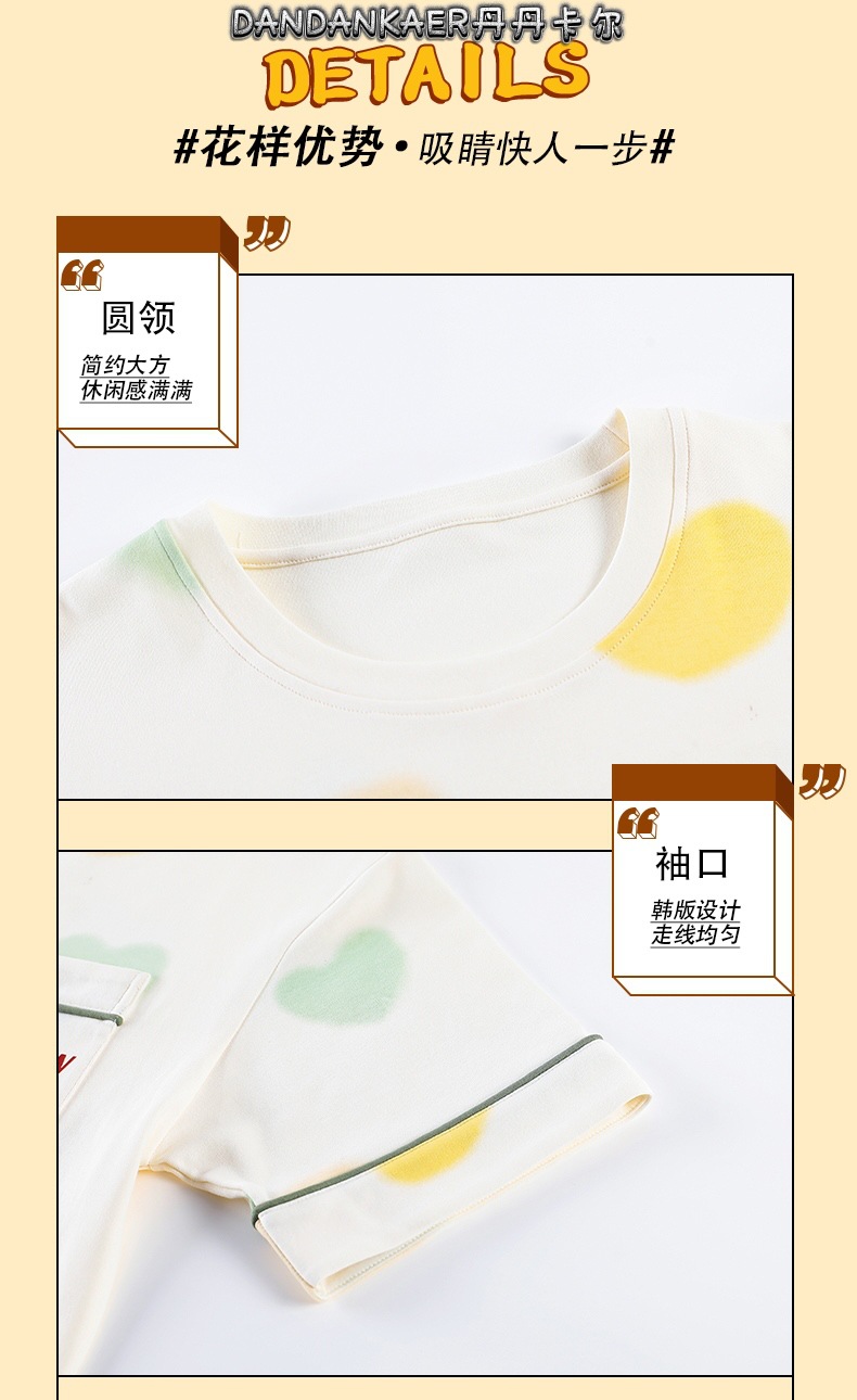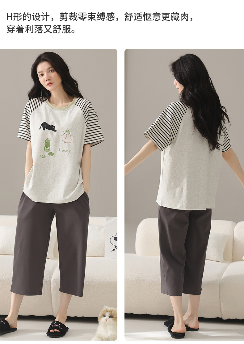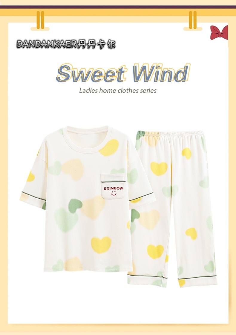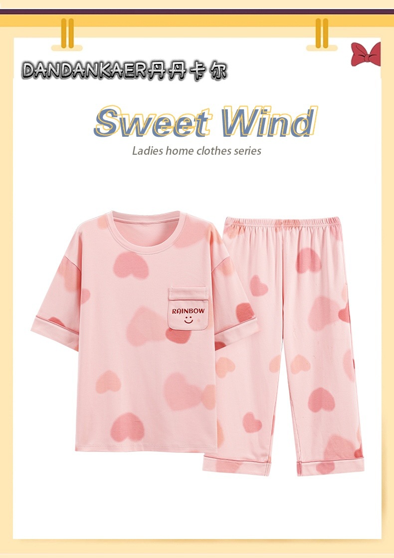 여성용 잠옷 여름 순수 코튼 반팔 캐주얼 달콤하고 귀여운 소녀 학생 플러스 사이즈 크롭 바지 홈웨어 세트