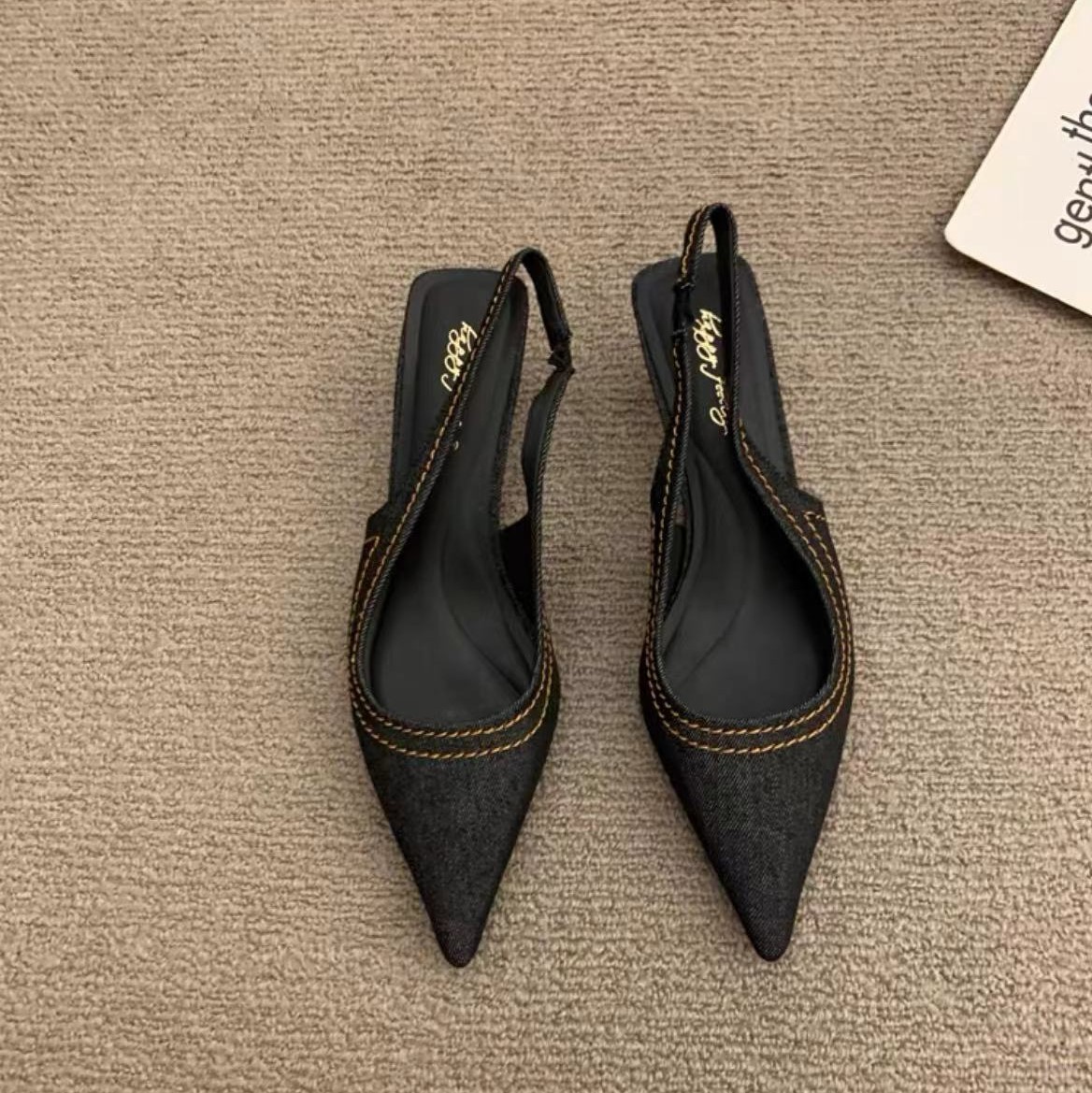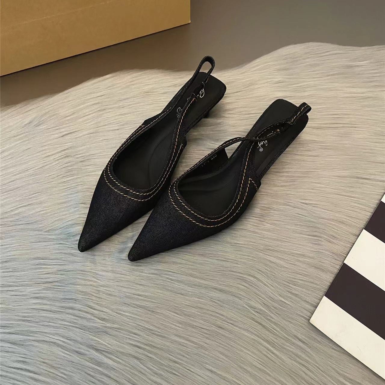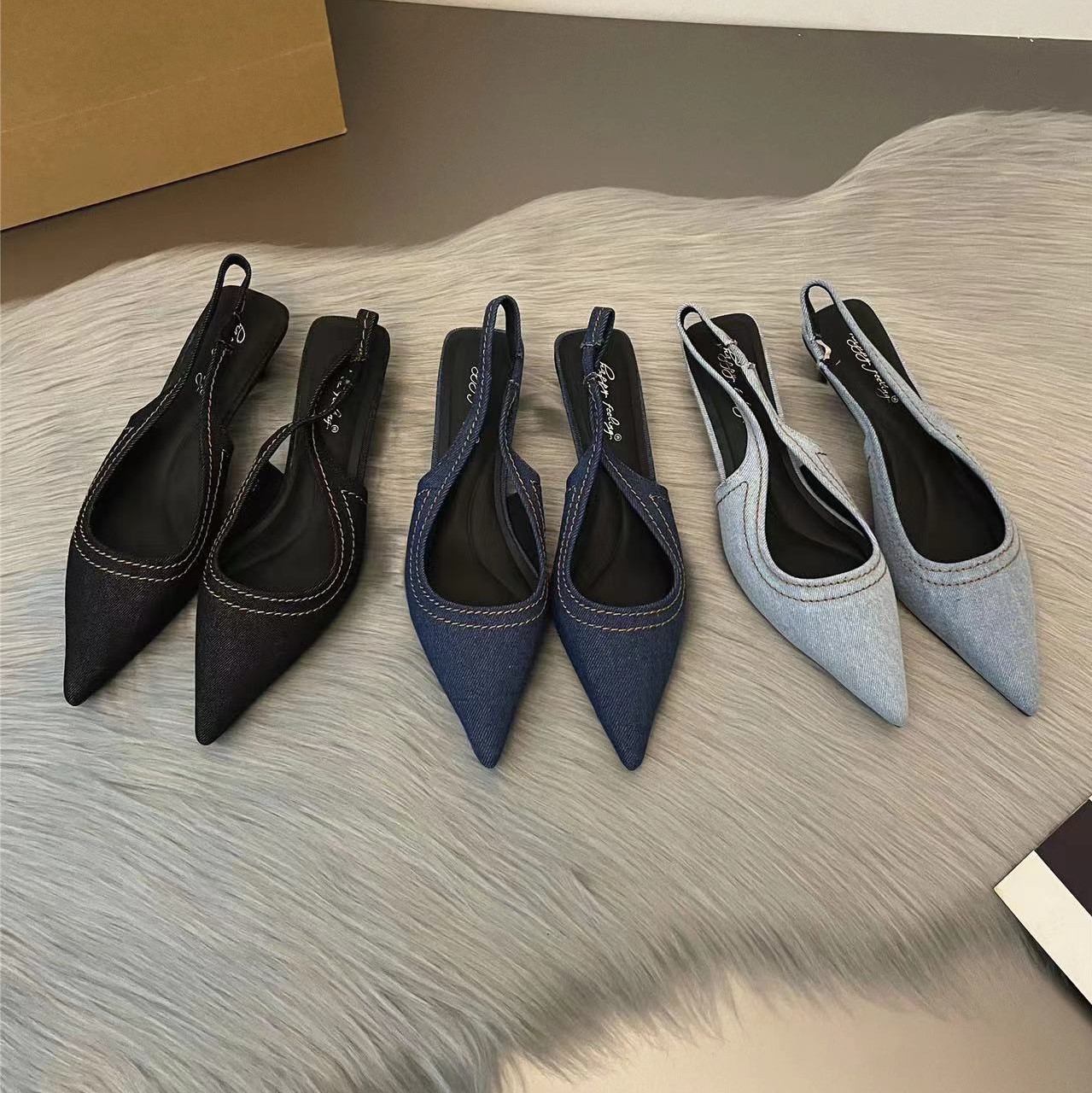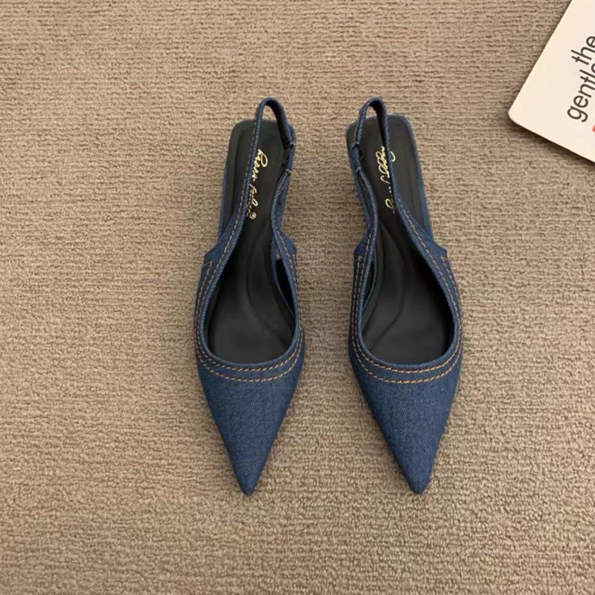 2025 봄 신상 여성화 하이힐 블루 데님 캣힐 포인티드 토 백 토 하이힐 샌들스토어 가기