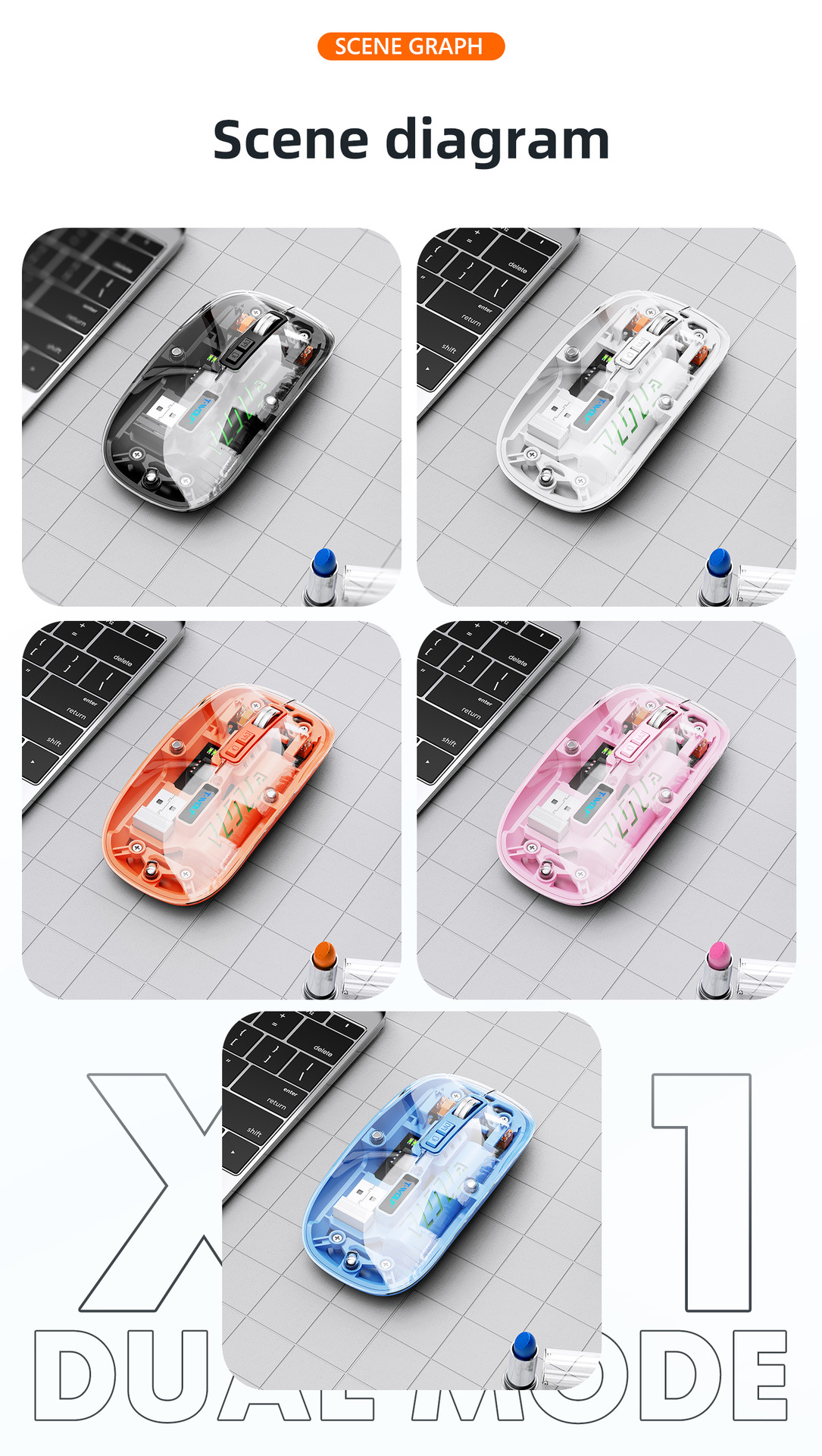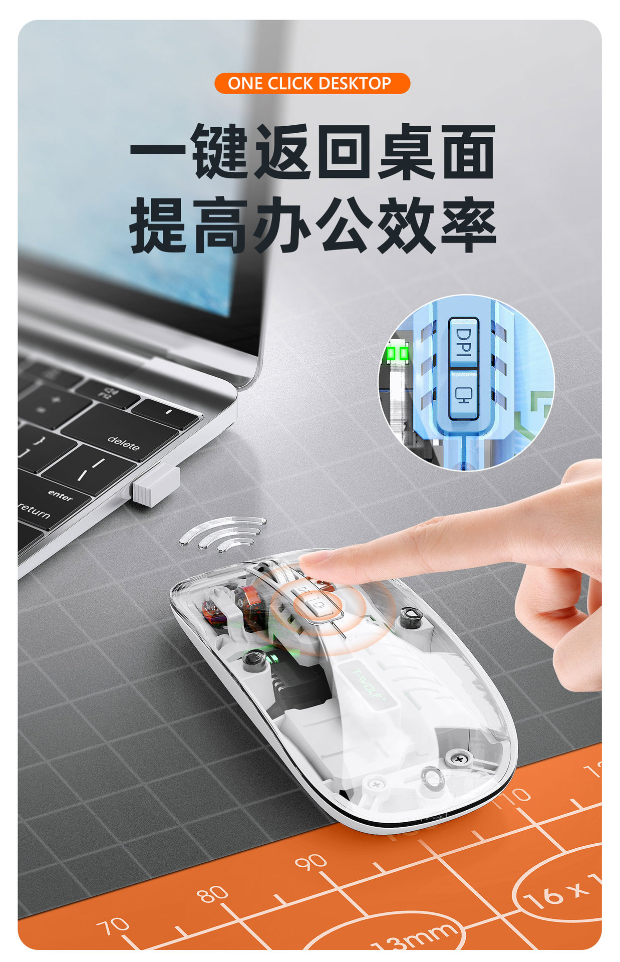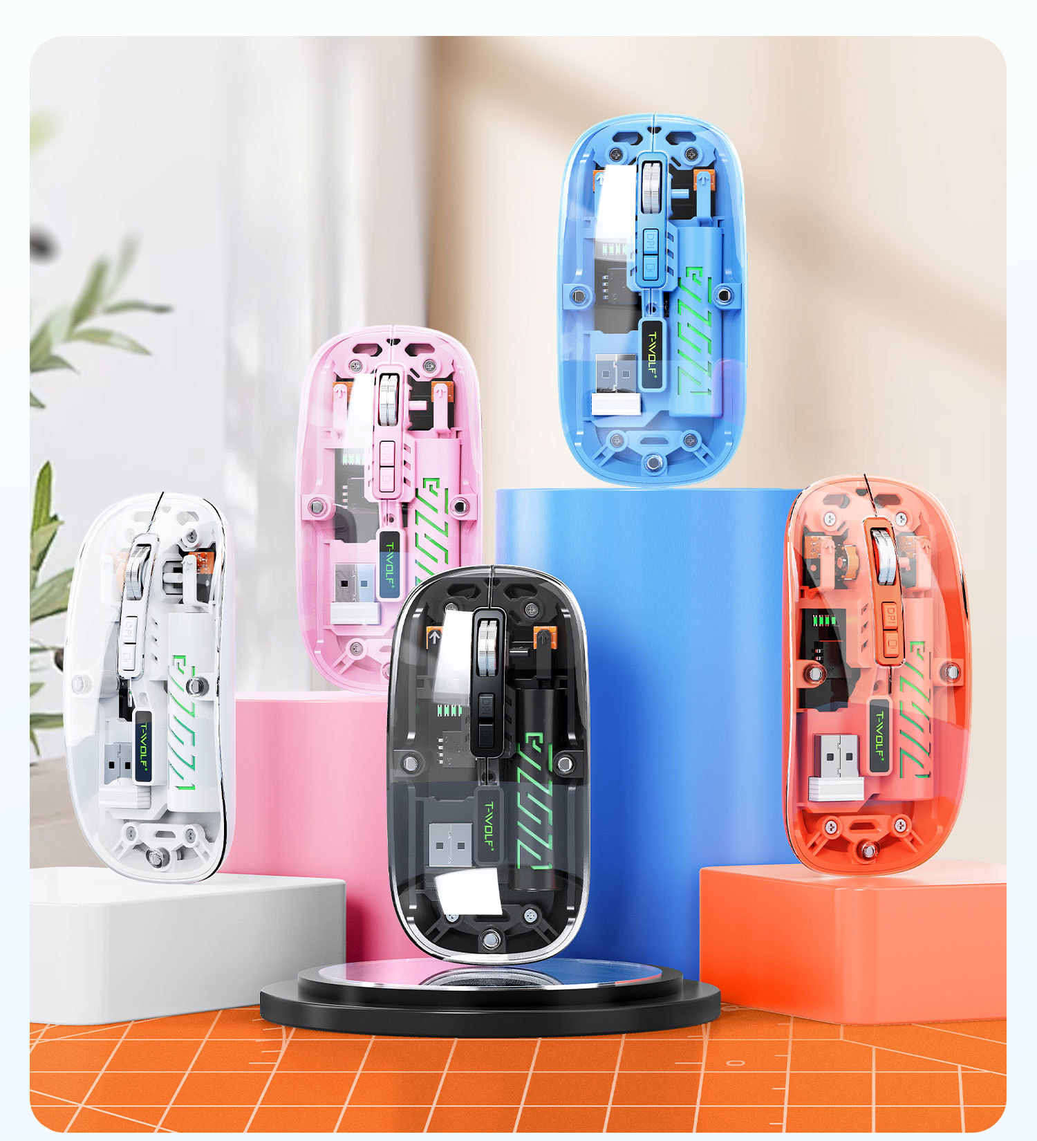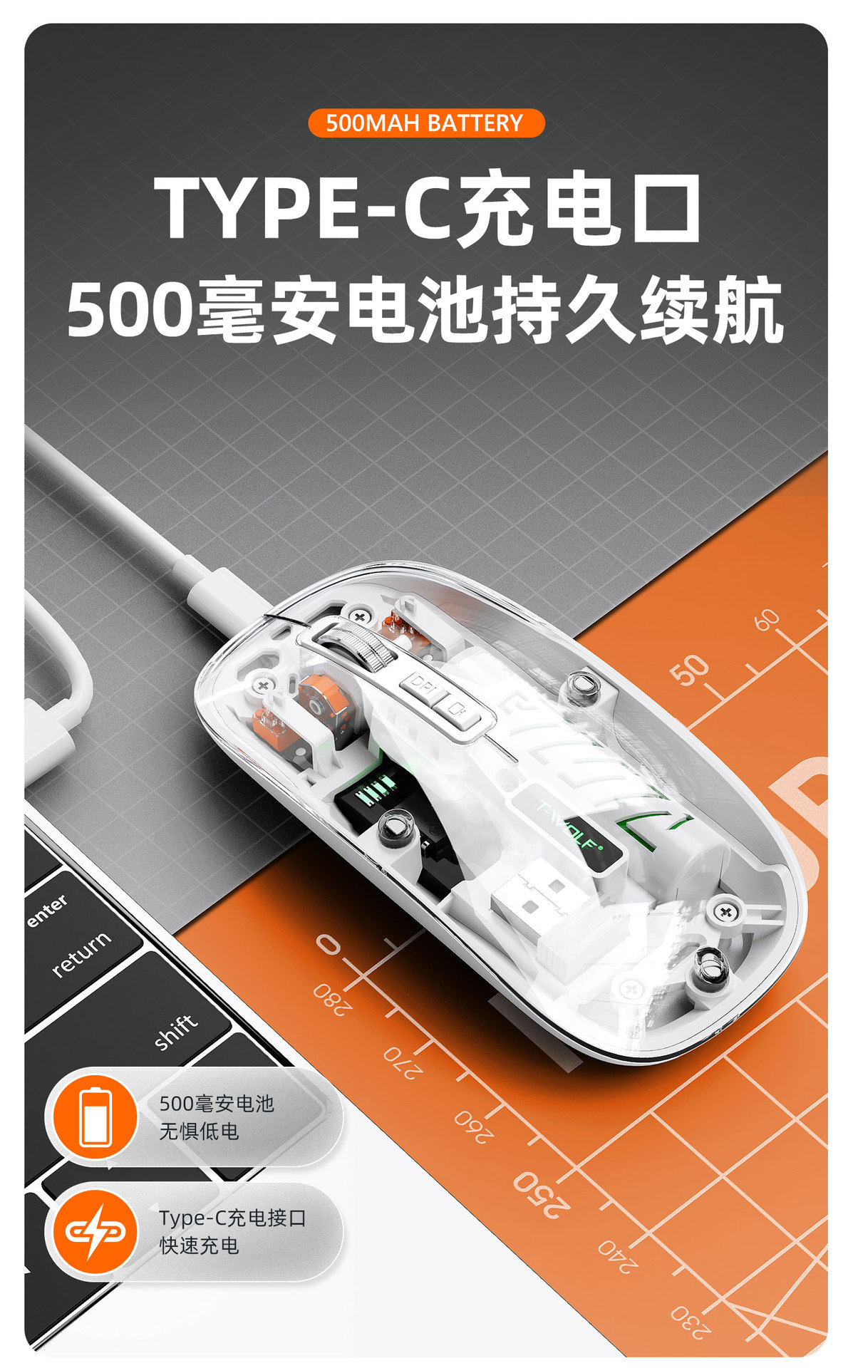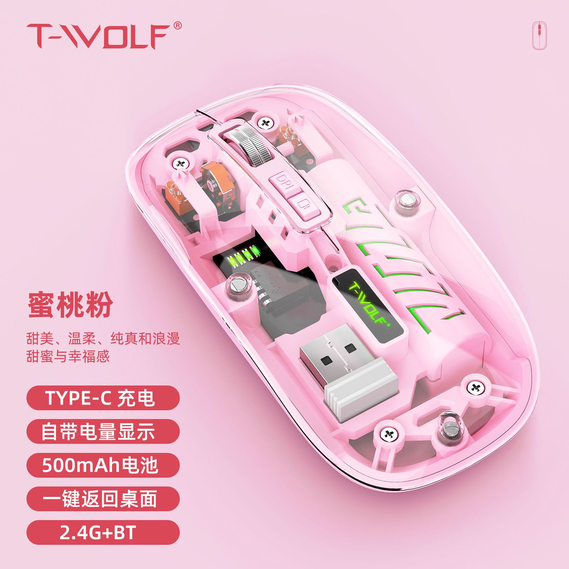 T-WOLF 레이울프 X11 투명 무선 마우스 충전식 전력 표시 발광 듀얼 모드 블루투스 마우스 무소음스토어 가기
