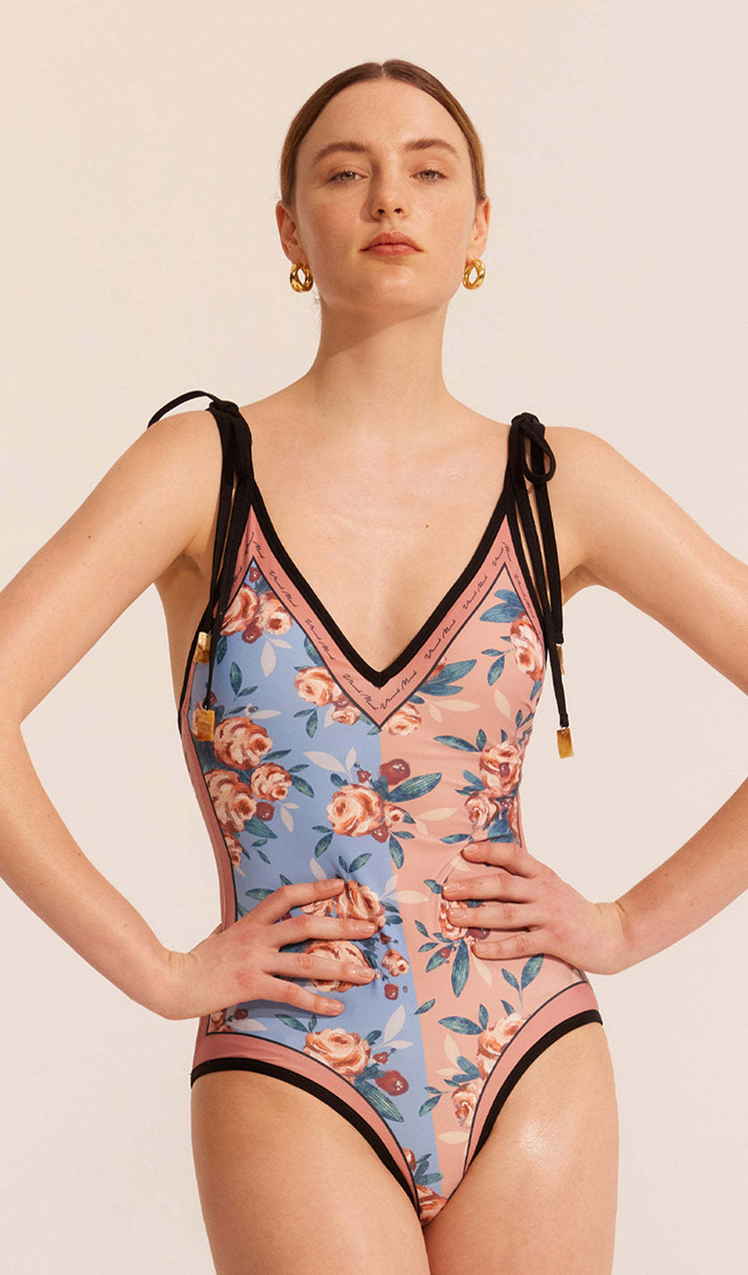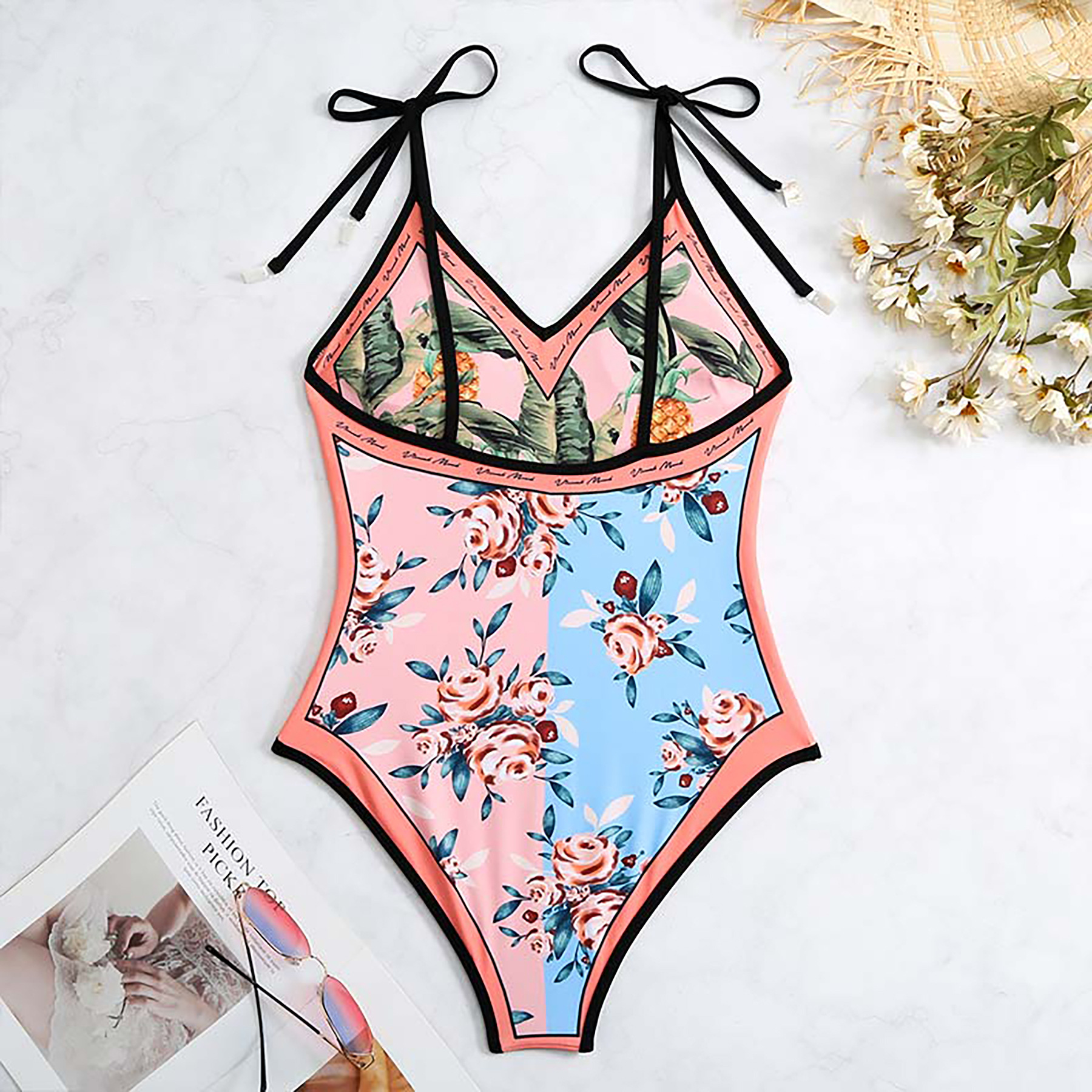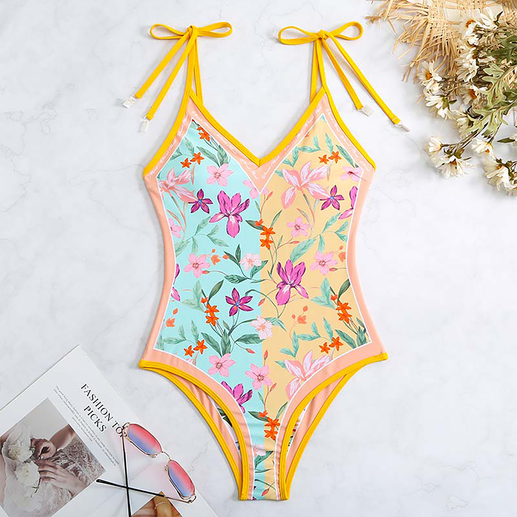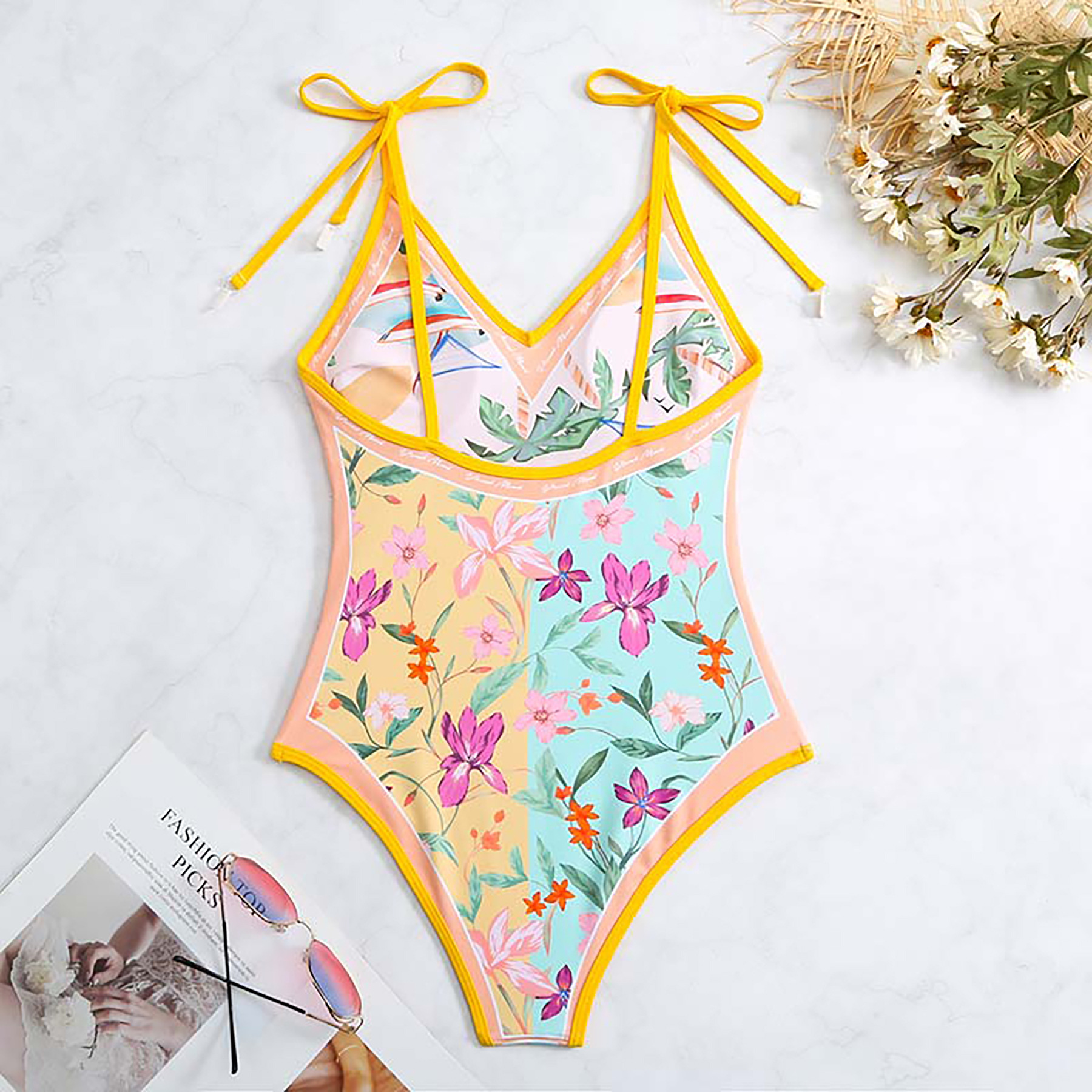 2025 유럽과 미국의 새로운 원피스 양면 수영복 여성용 꽉 슬리밍 복고풍 대외 무역 스트랩 프린트 수영복 여성용