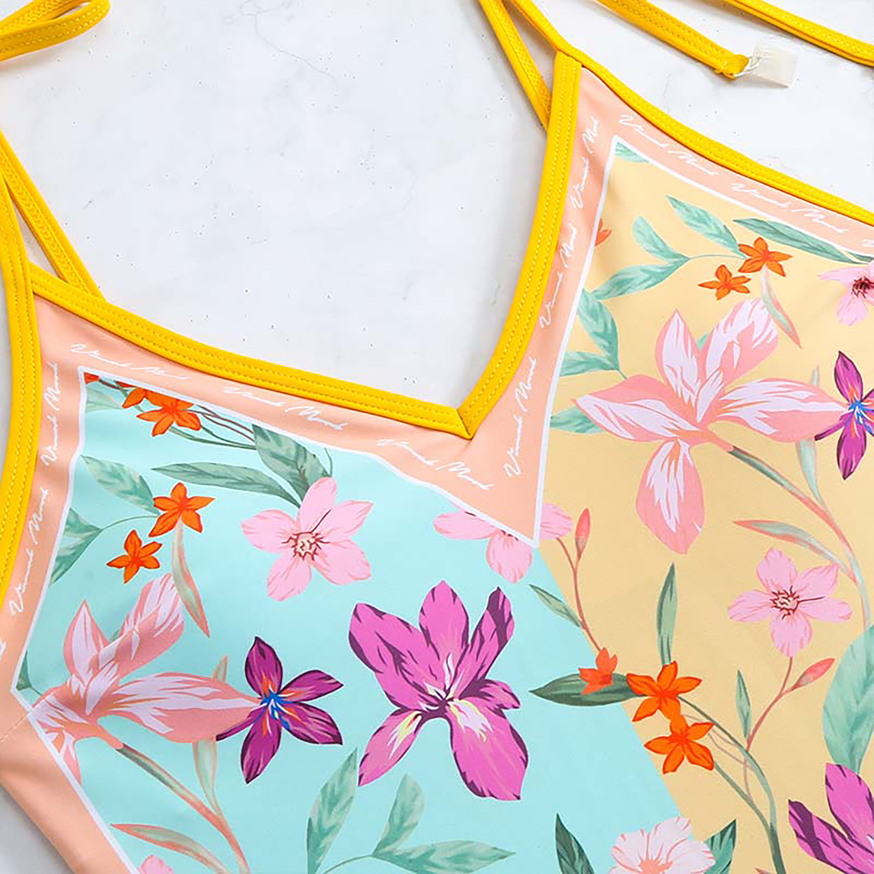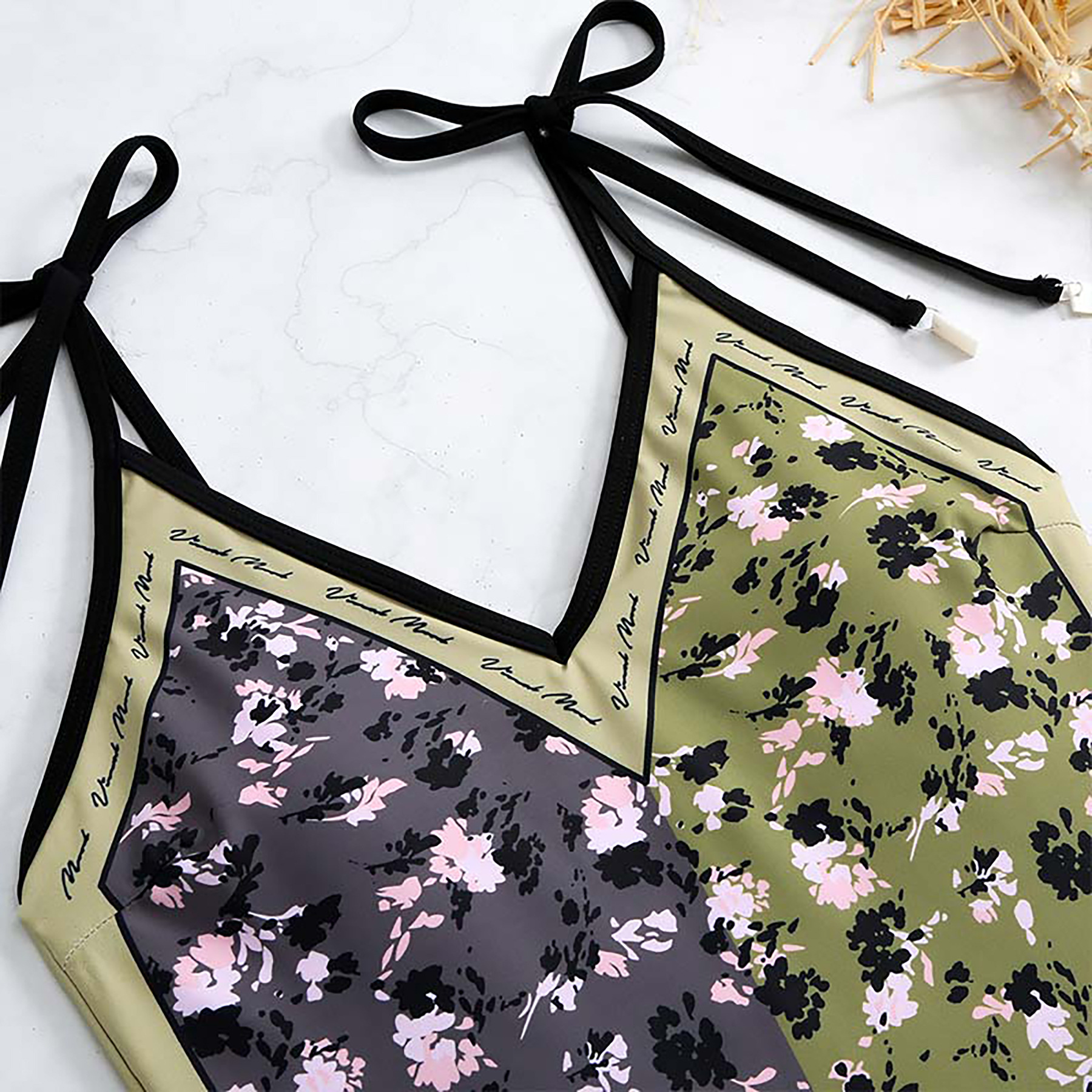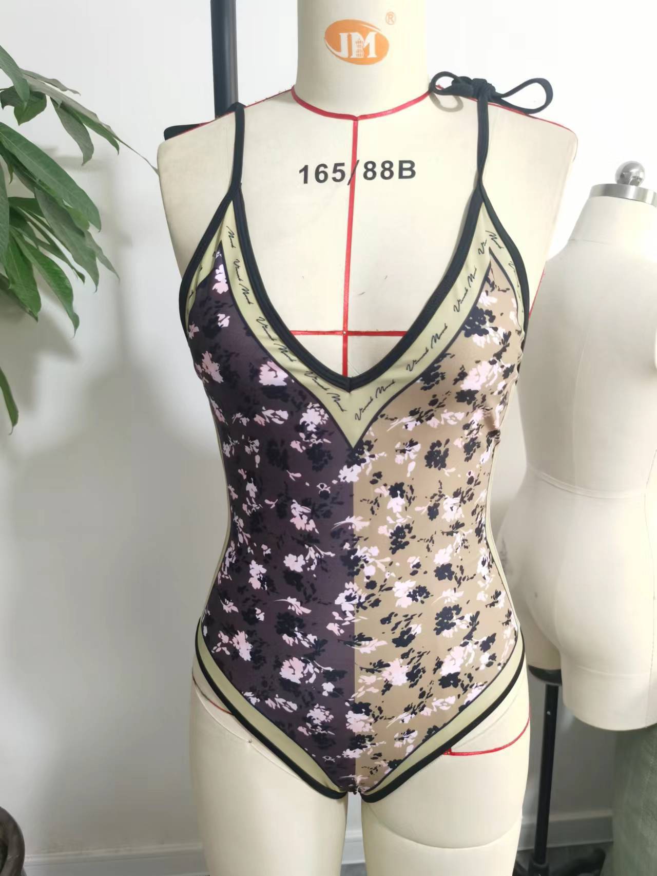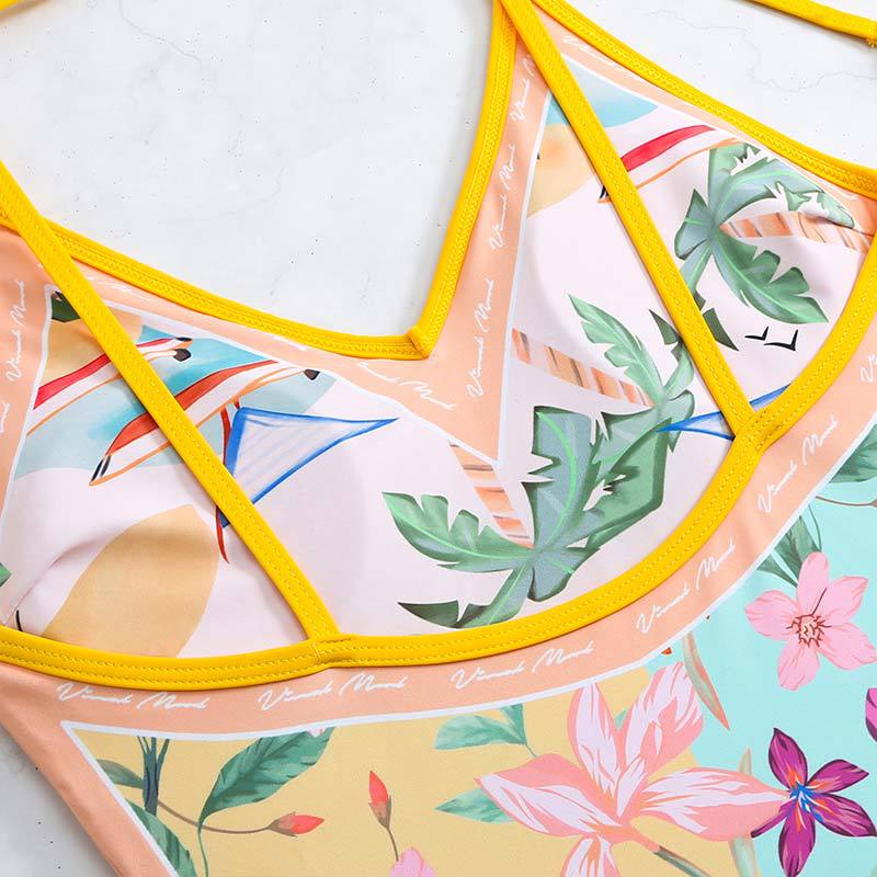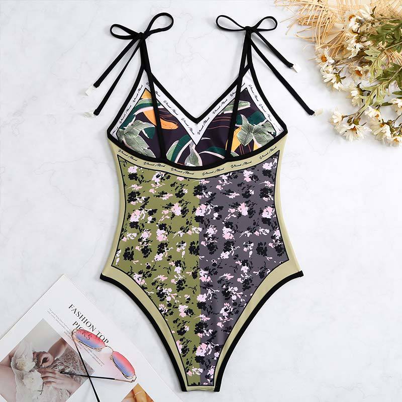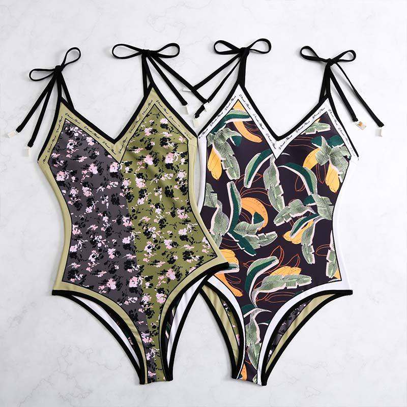 2025 유럽과 미국의 새로운 원피스 양면 수영복 여성용 꽉 슬리밍 복고풍 대외 무역 스트랩 프린트 수영복 여성용스토어 가기