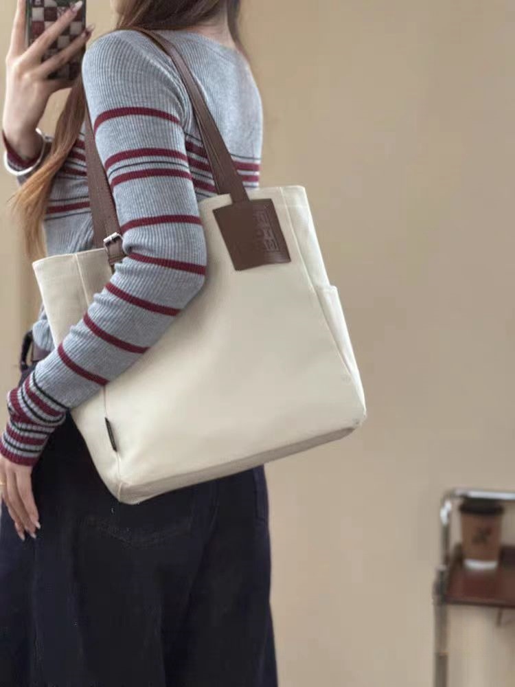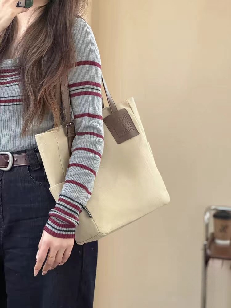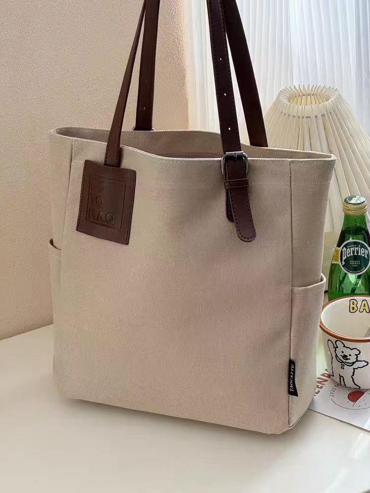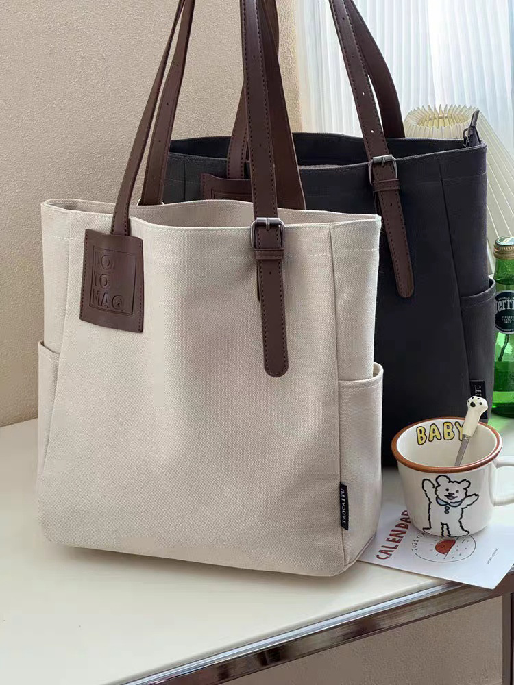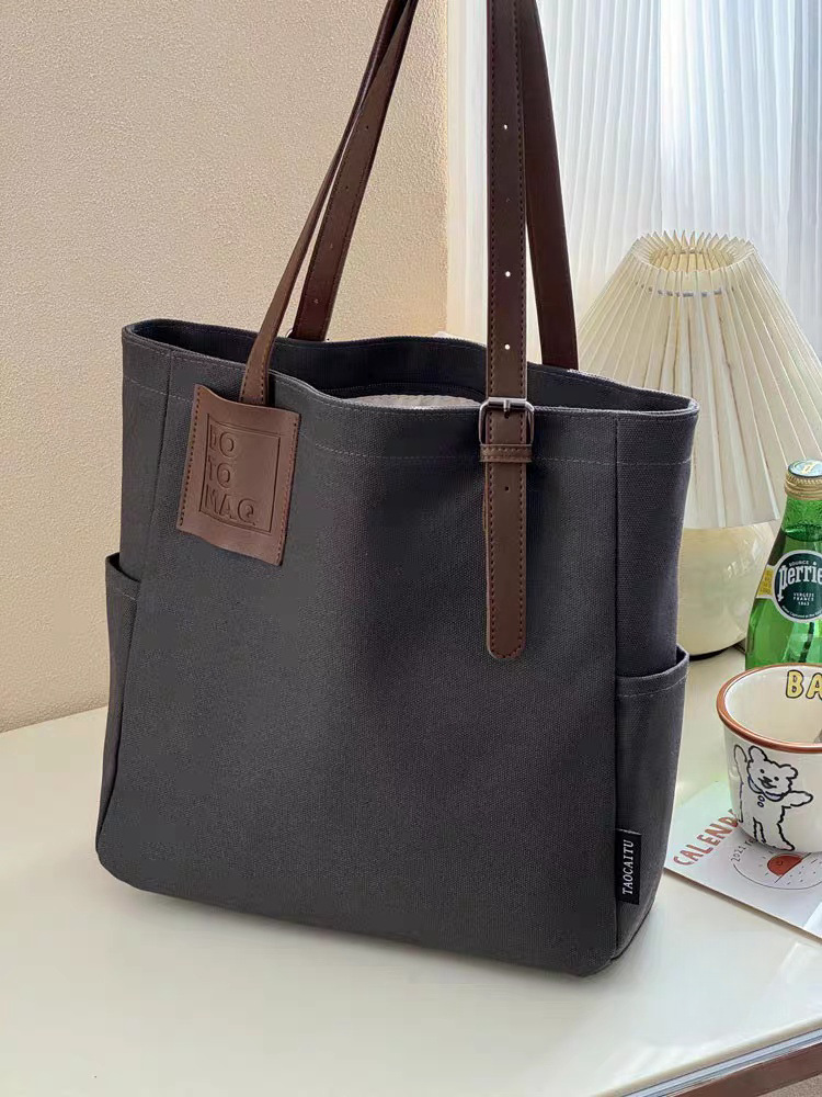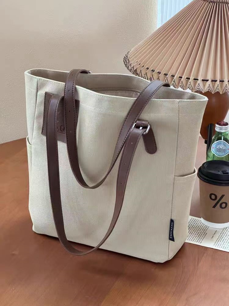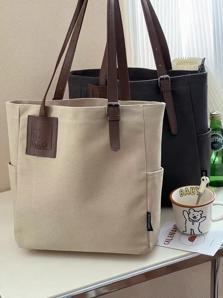 독창적인 디자인, 문학적이고 통근용 두꺼운 캔버스 숄더 휴대용 패션 심플 캐주얼 다용도 학생 토트 백