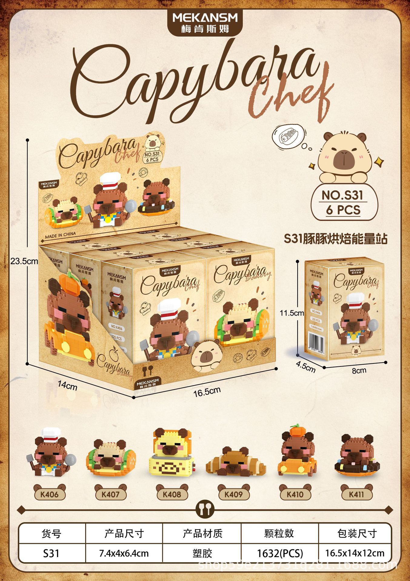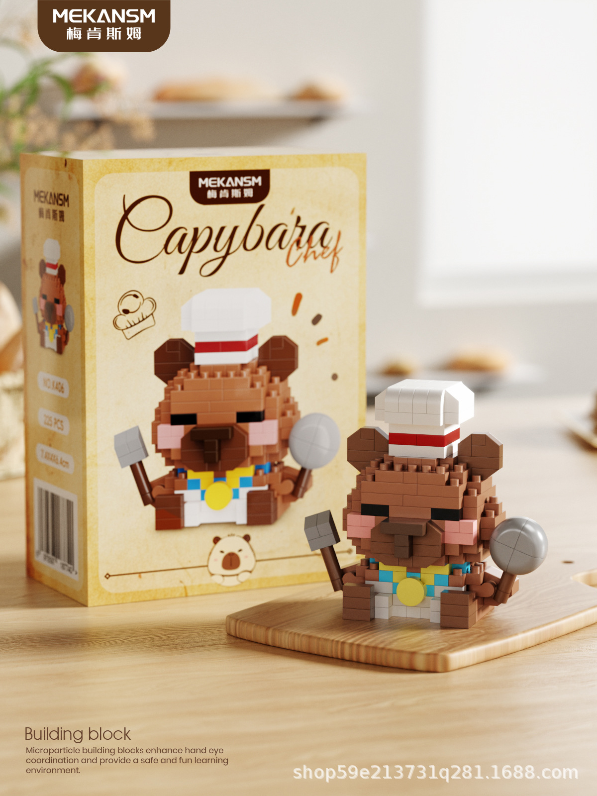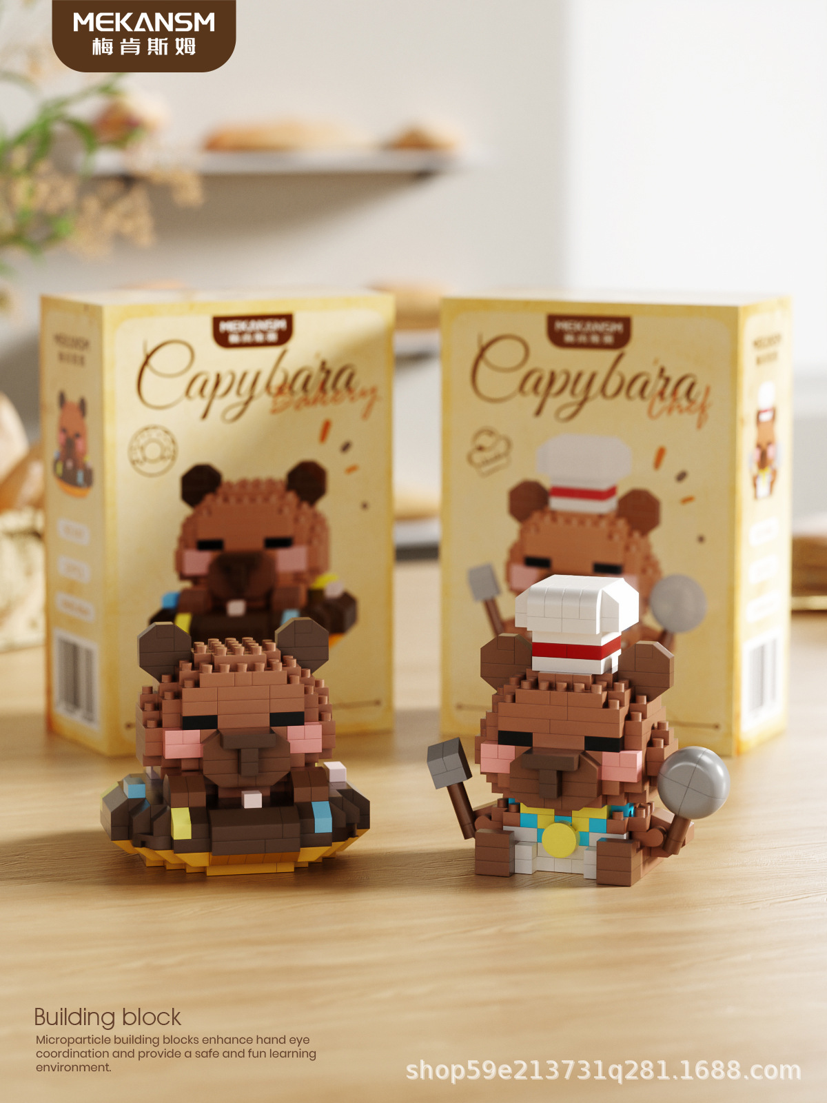 [도매 및 배송] 레고 교육 장식품과 호환되는 카피바라 빌딩 블록 어린이날 선물 블라인드 박스 귀여운 데스크탑스토어 가기
