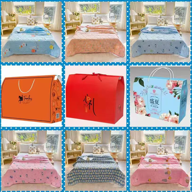 선물 상자가 포함된 여름 이불, 에어컨, 여름 회사 행사 이불, 오프닝 선물, 워시드 코튼 여름 이불, 대외 무역