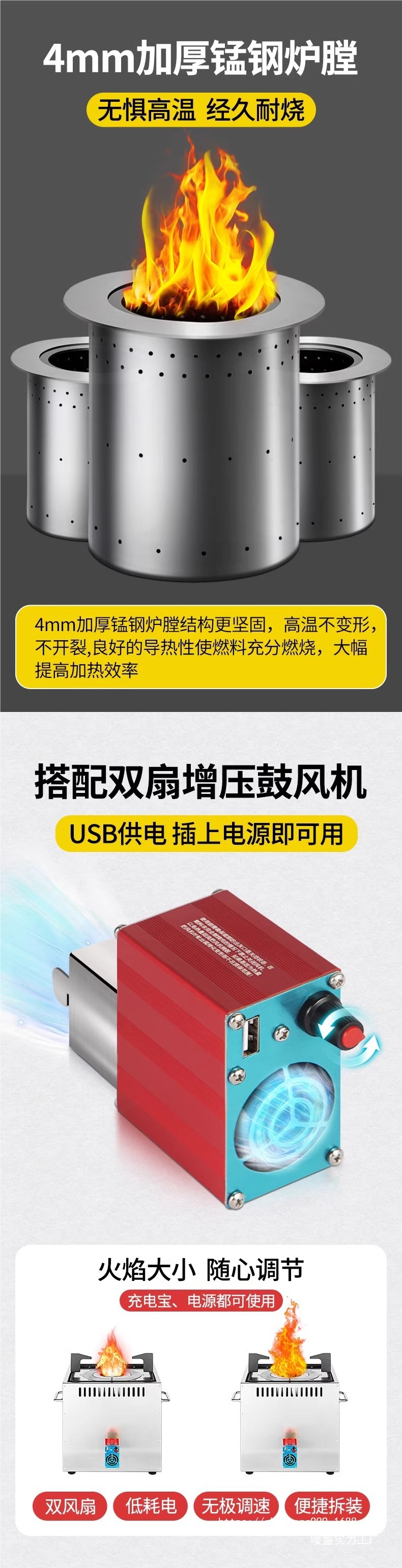• 업그레이드된 두꺼운 스테인레스 스틸 라이너 [중형] 방풍 + 단열 + 퍼니스 옵션