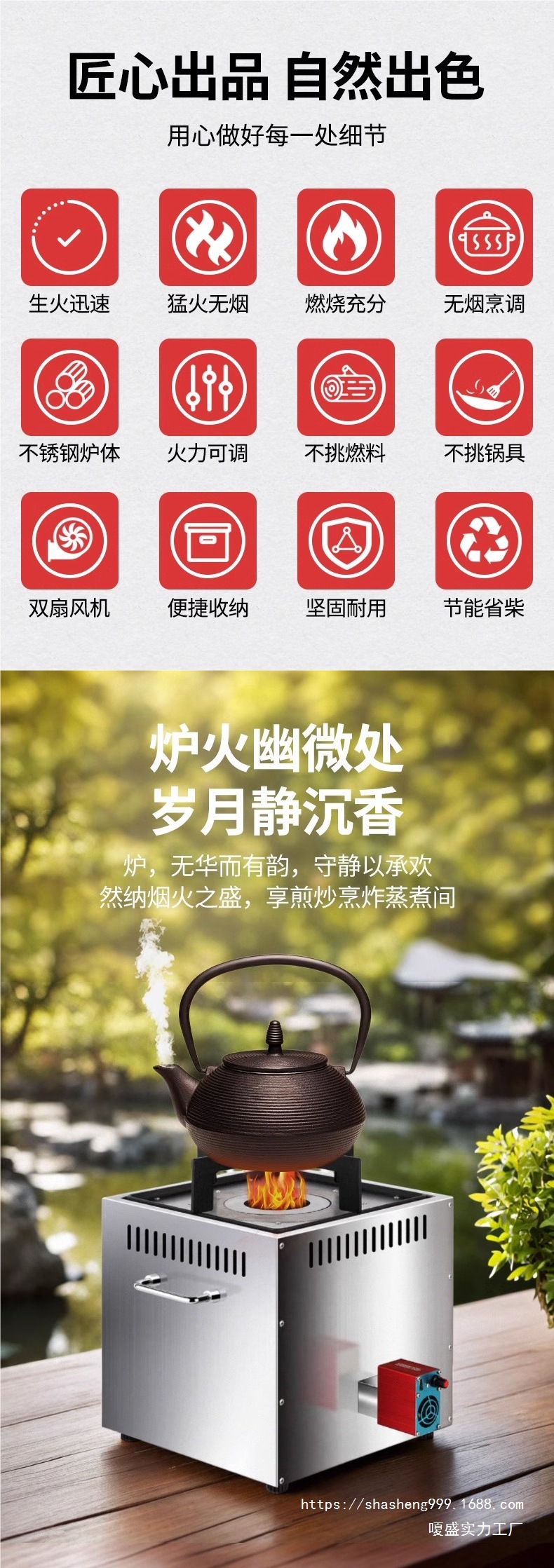 • 업그레이드된 두꺼운 스테인레스 스틸 라이너 [대형] 방풍 + 단열 + 퍼니스 옵션