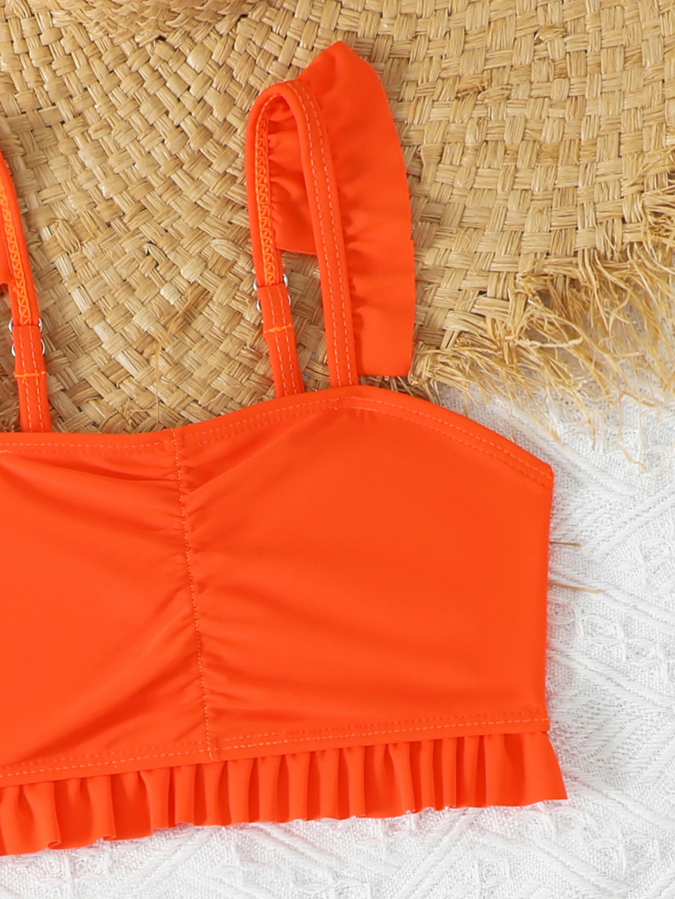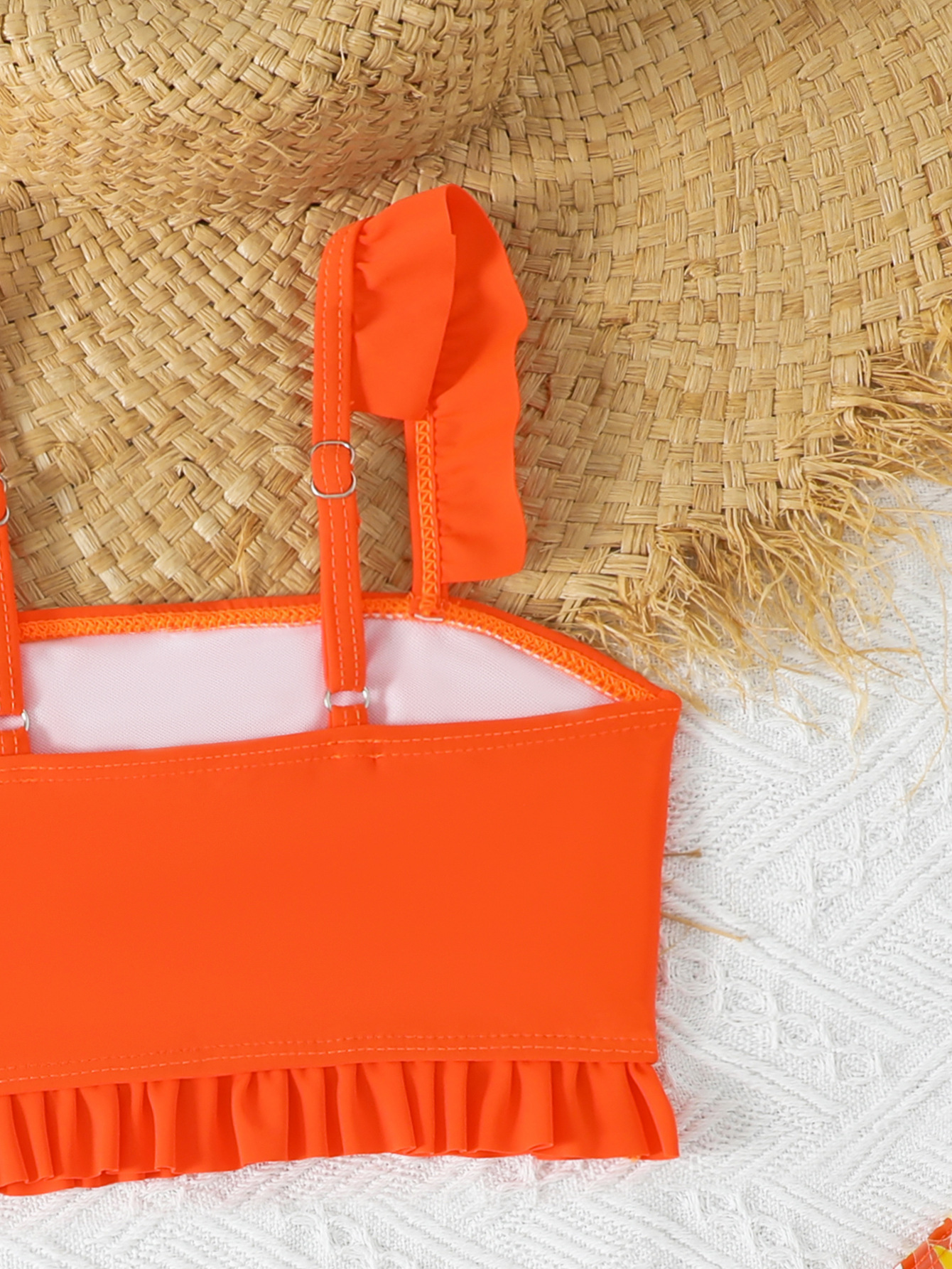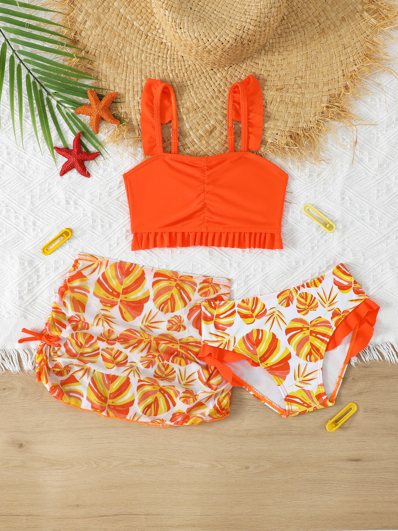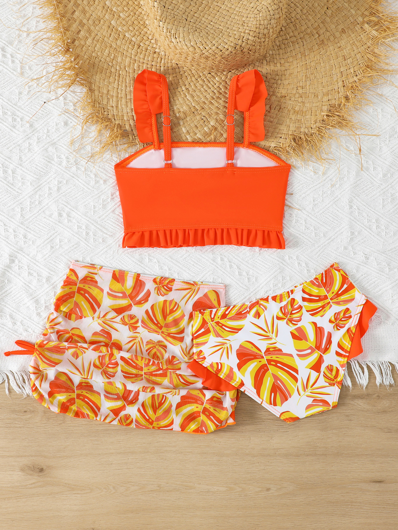 2025 새로운 크로스보더 소녀 스플릿 수영복 귀엽고 편안한 어린이 수영복 편안한 4-7Y 3피스 거즈 스커트