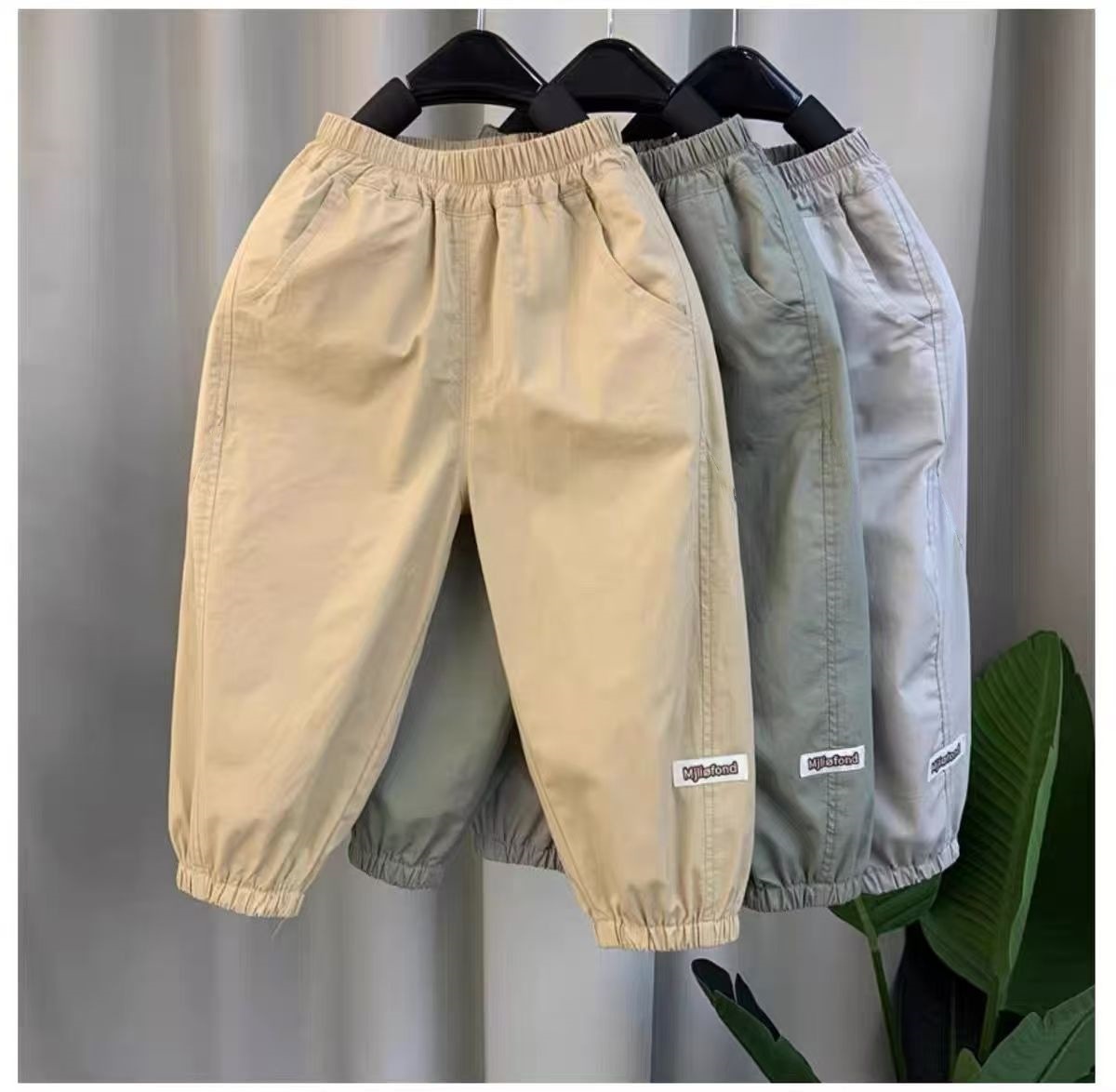 소년 바지 2025 봄 여름 얇은 아동 캐주얼 바지 중소형 아동 작업복 아기 겉옷 느슨한 레깅스
