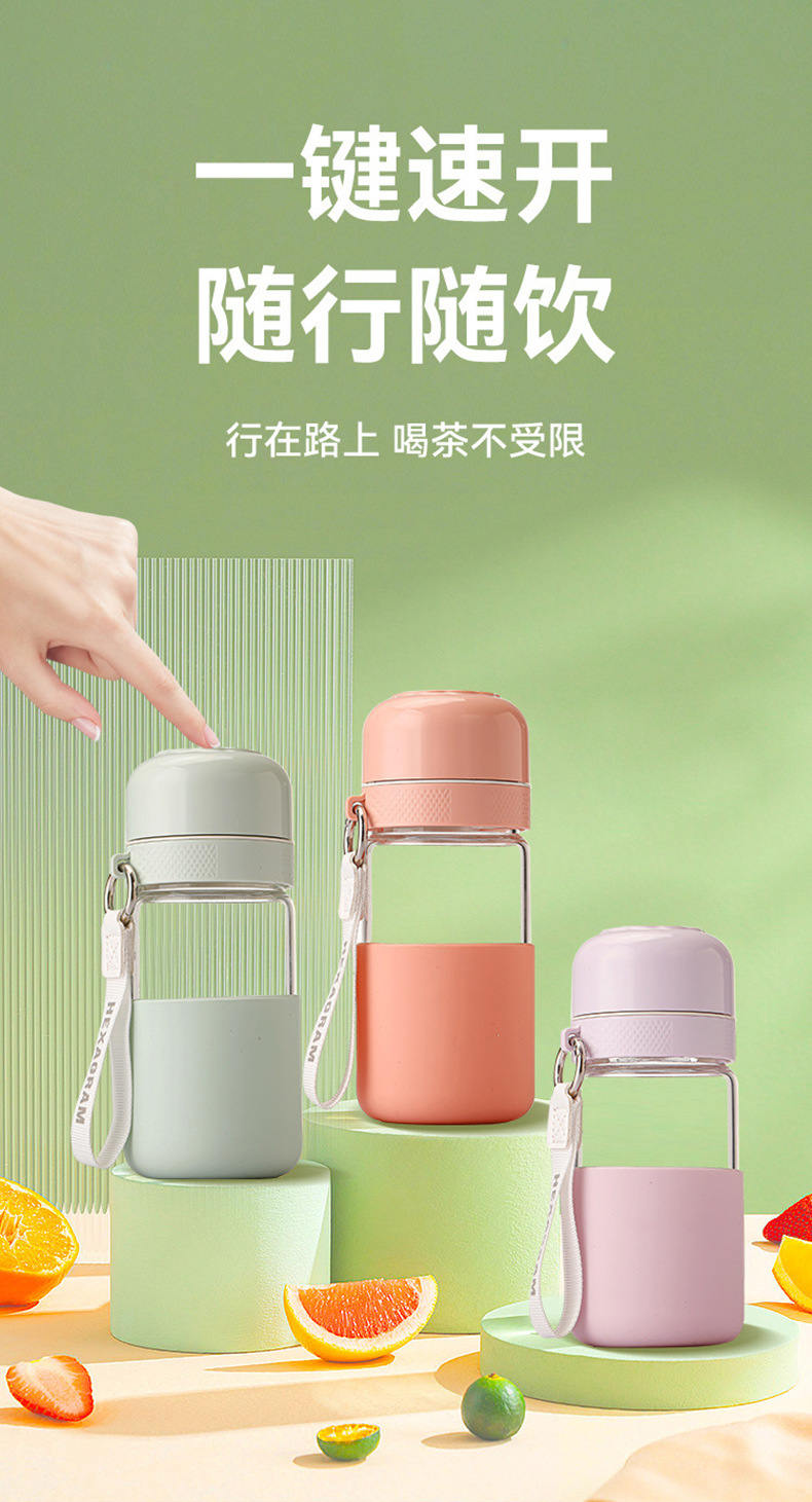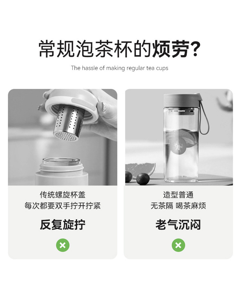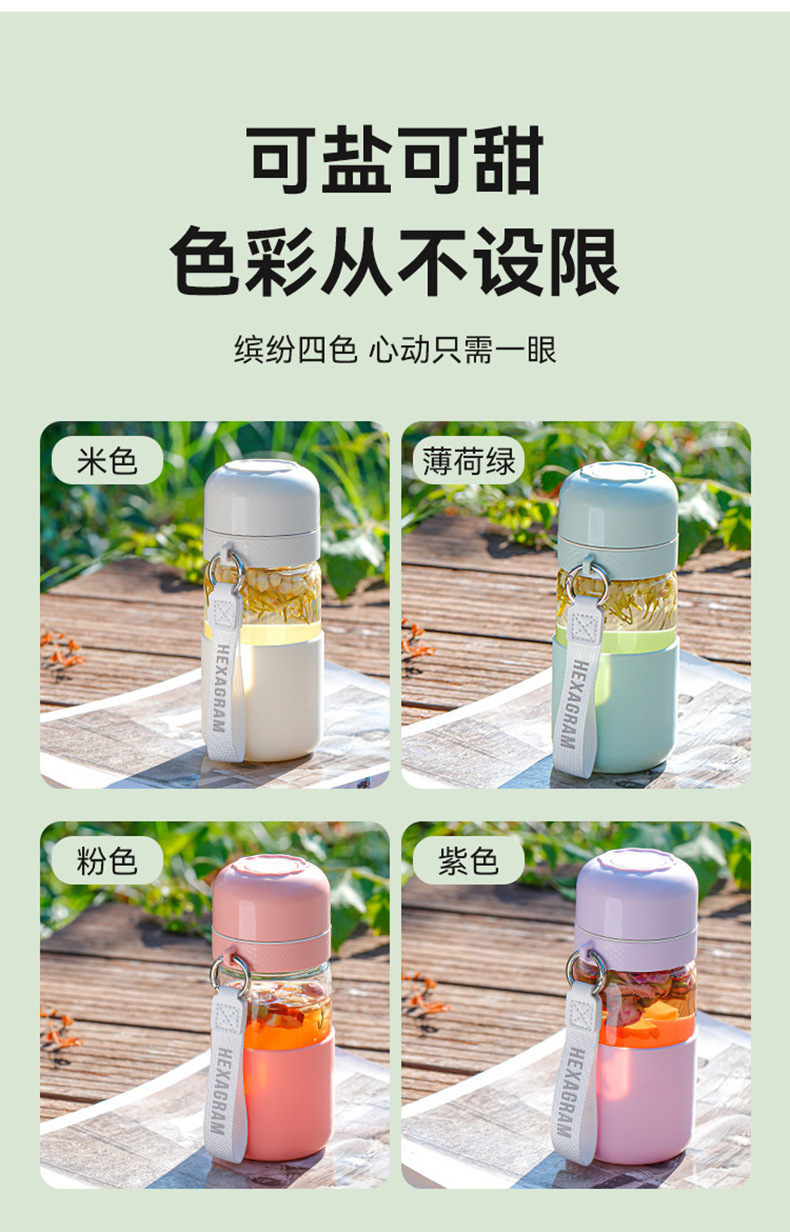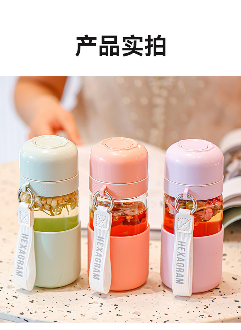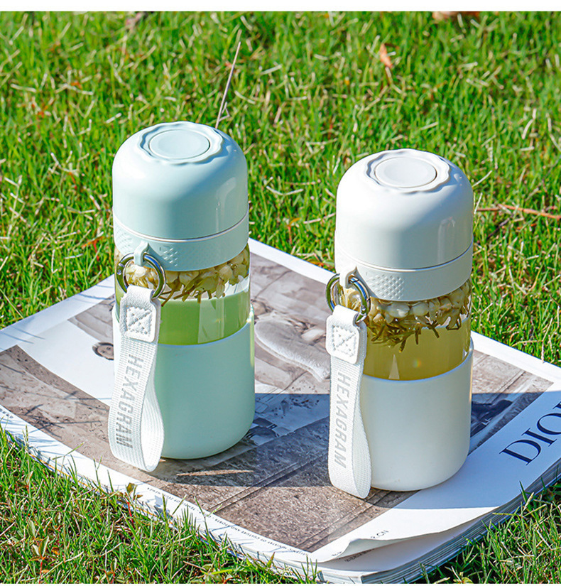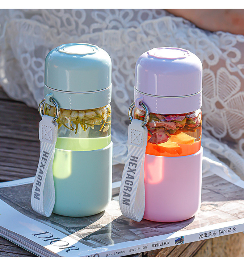 원클릭 개폐 유리 컵, 고온 방지, 새로운 차와 물 분리 찻잔, 만화 컬러 화상 방지 물컵, 야외 손잡이스토어 가기