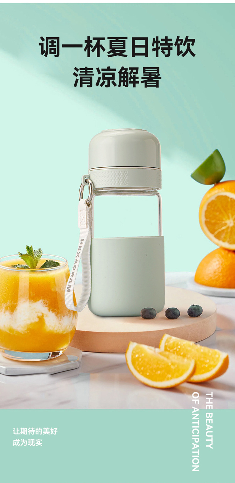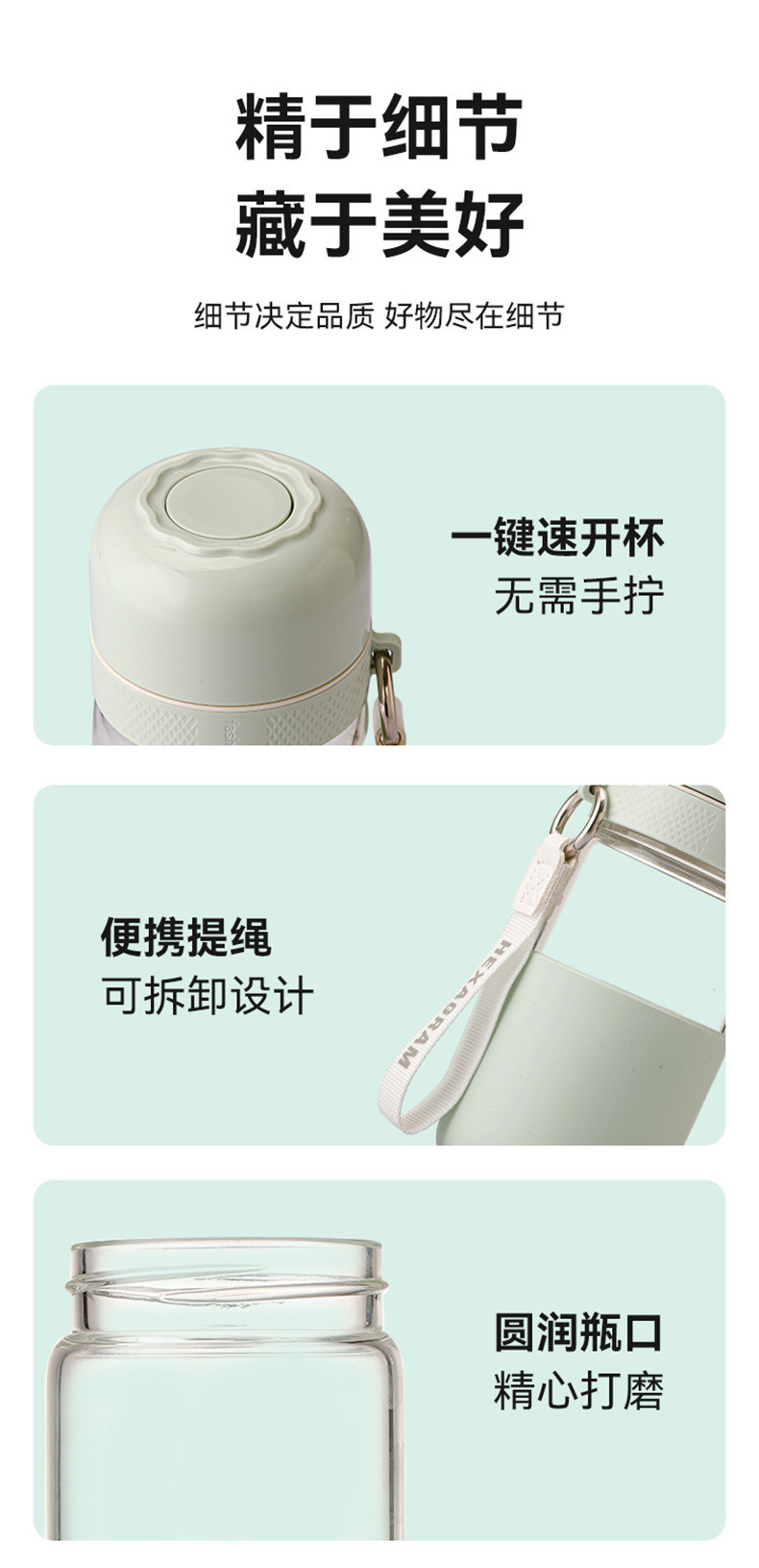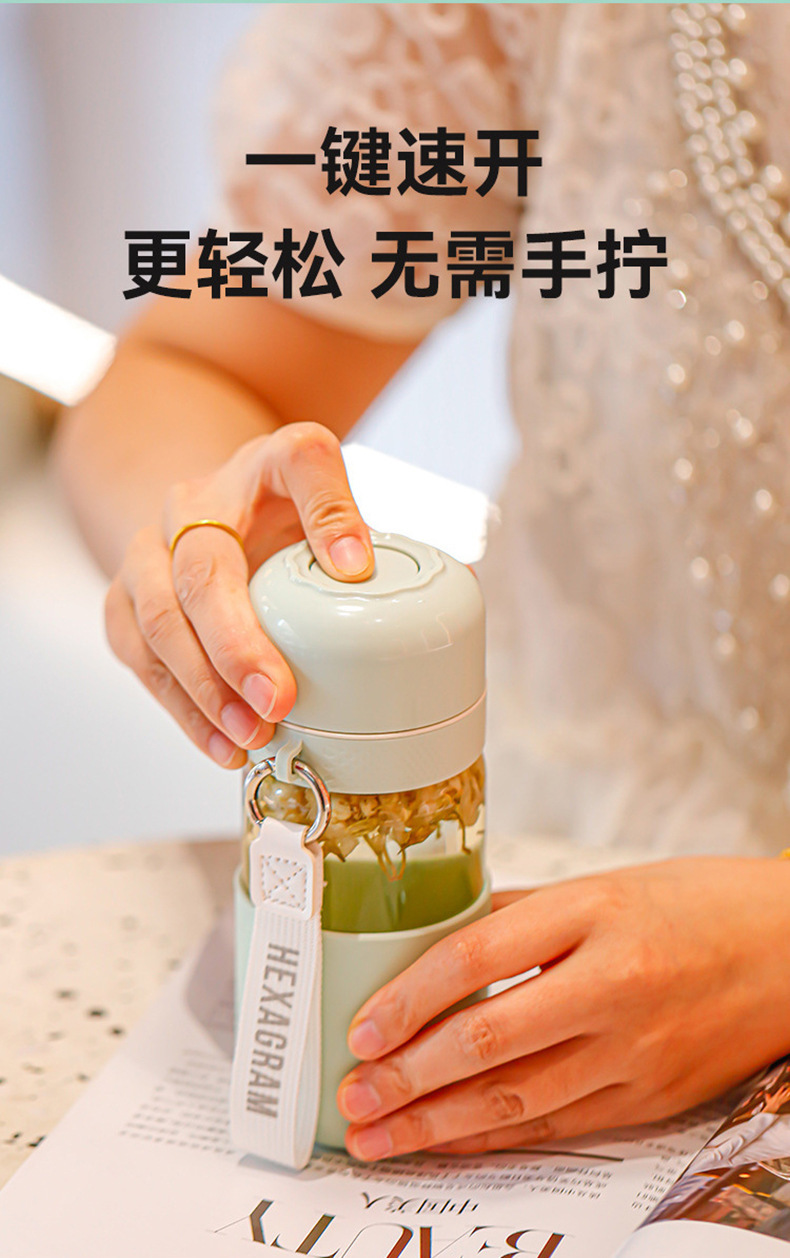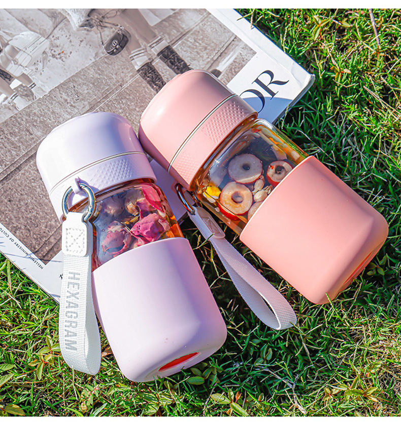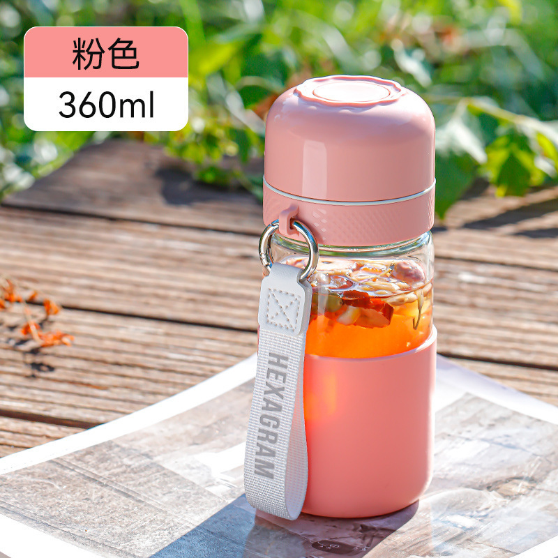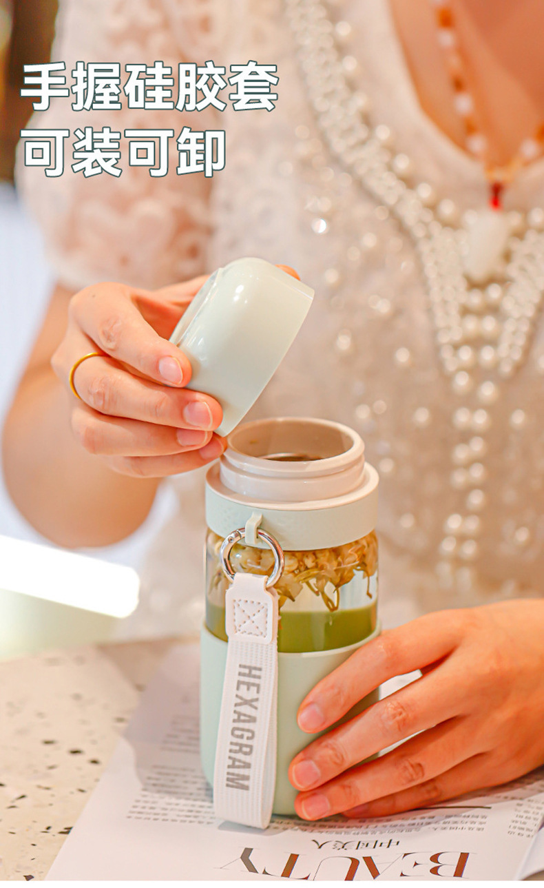원클릭 개폐 유리 컵, 고온 방지, 새로운 차와 물 분리 찻잔, 만화 컬러 화상 방지 물컵, 야외 손잡이