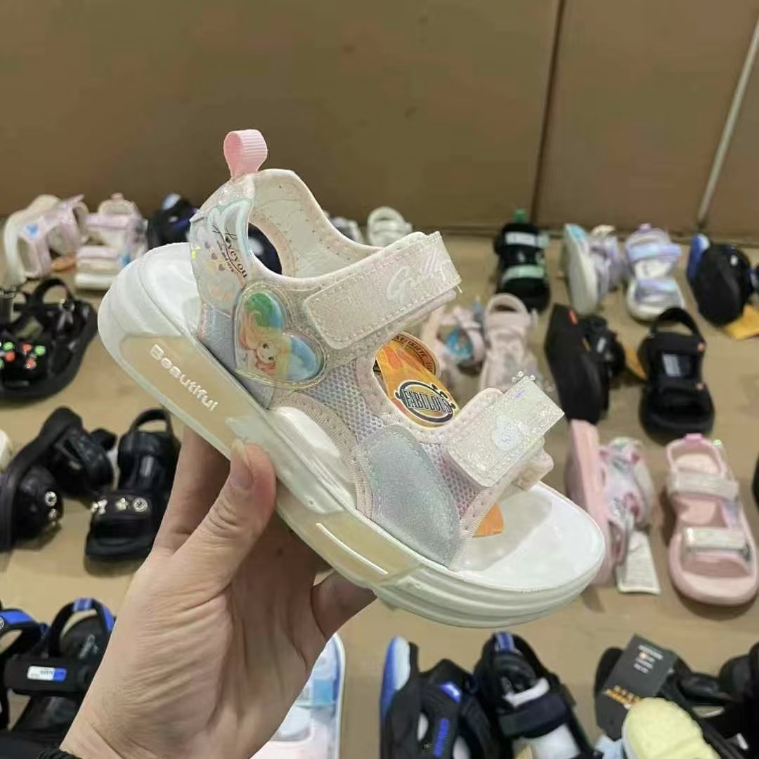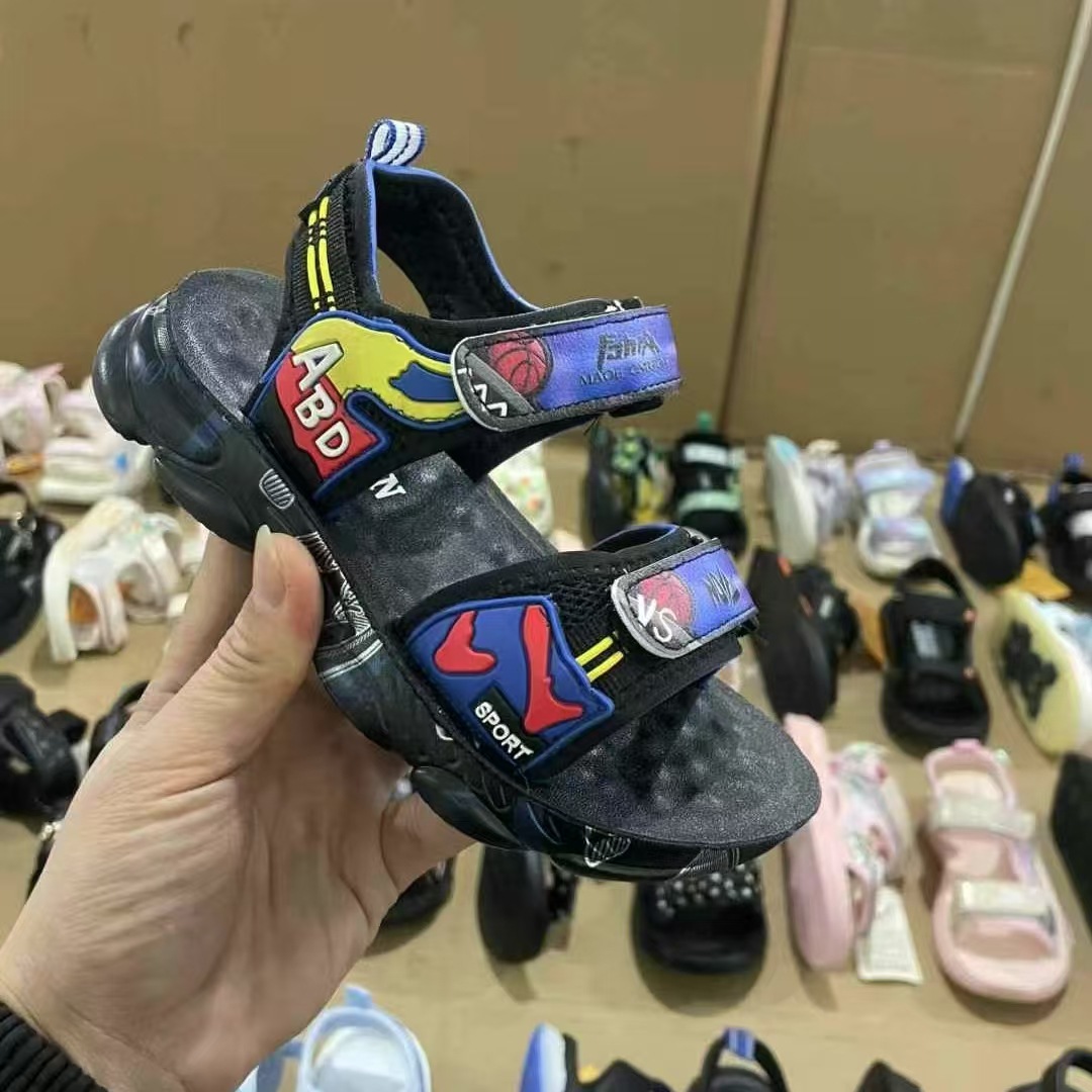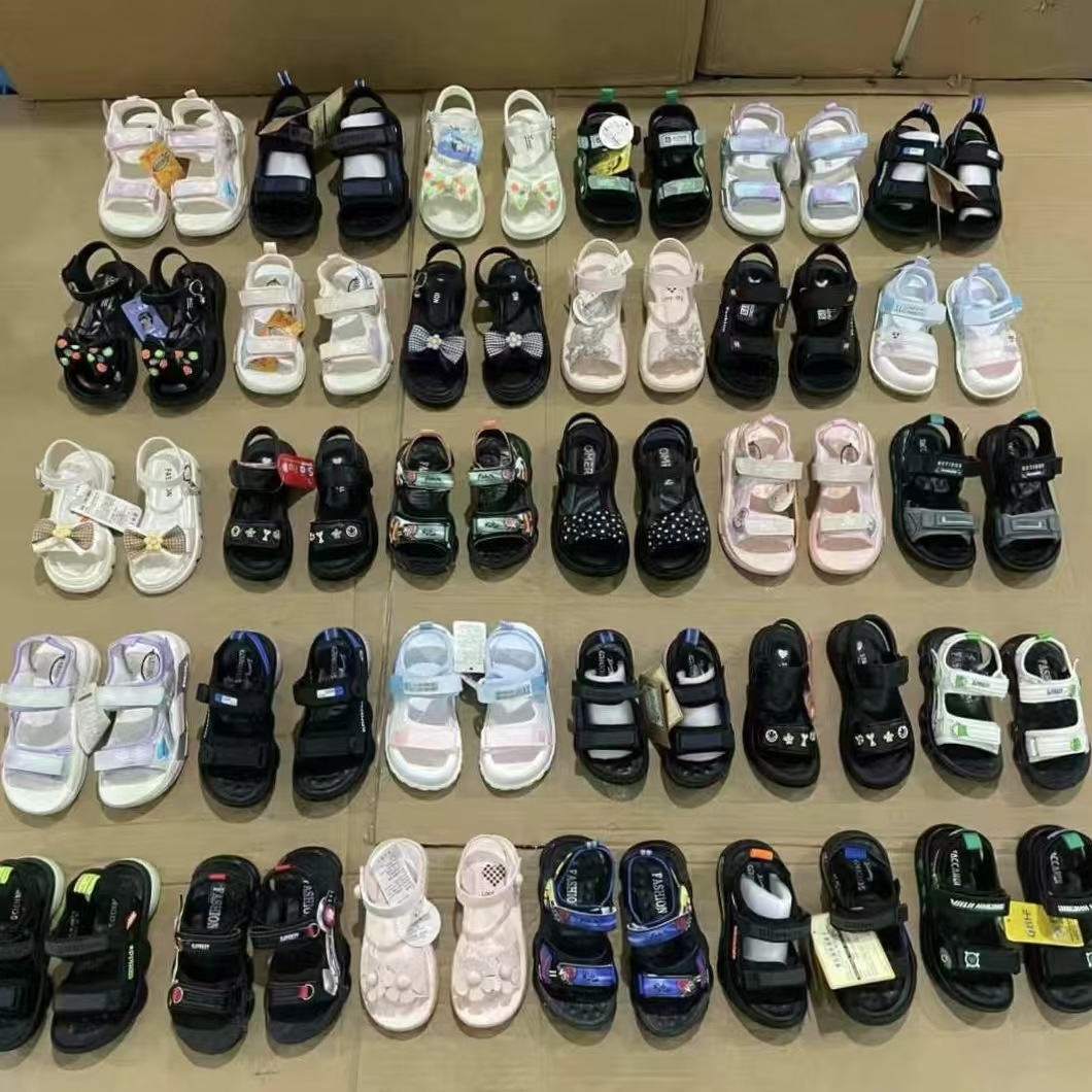 2025 새로운 여름 플랫 샌들 캐주얼 부드러운 바닥 오픈 발가락 해변 소년과 소녀 신발 재고 대외 무역 샌들 도매