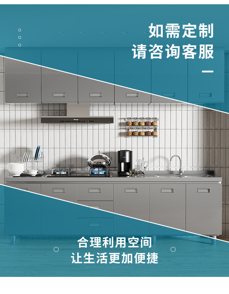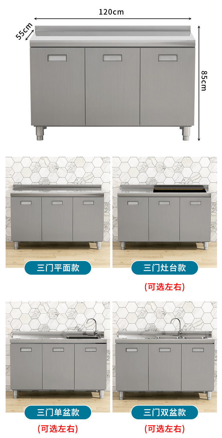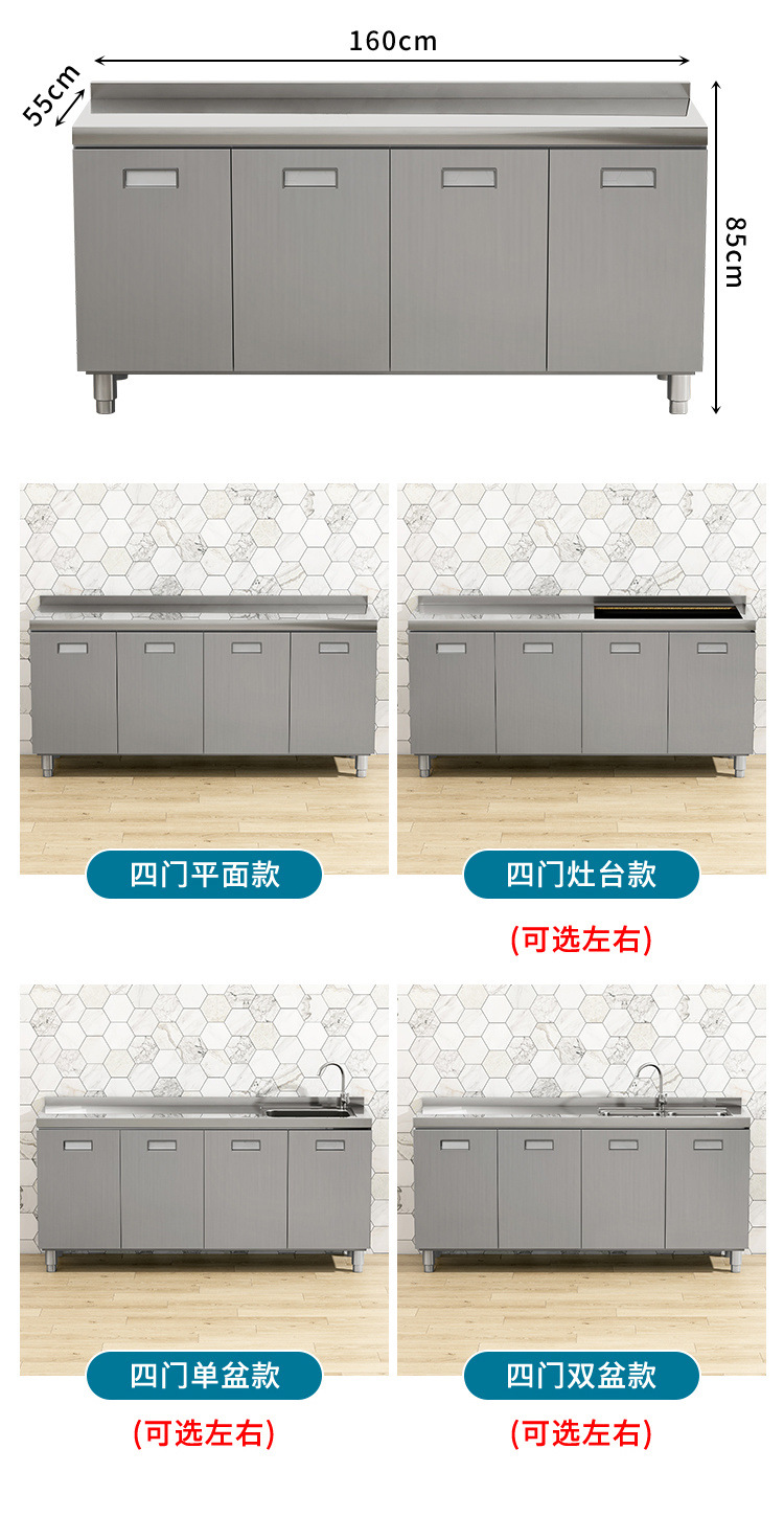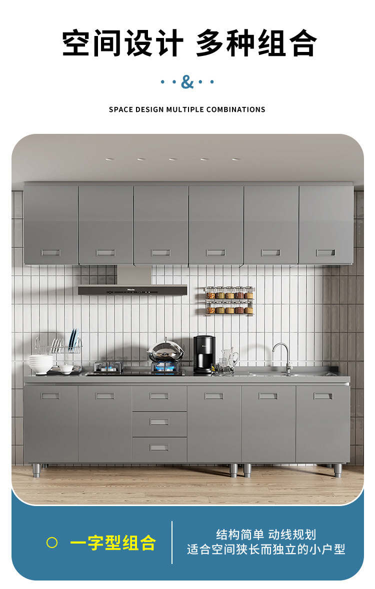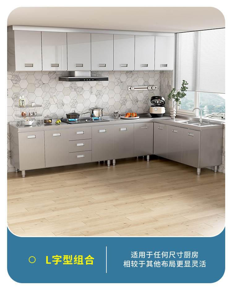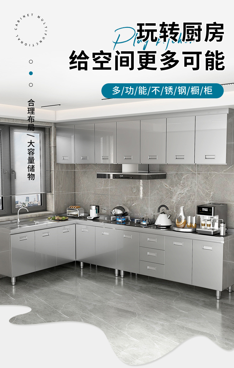 304 스테인레스 스틸 주방 캐비닛 일체형 주방 캐비닛 간단한 주방 스토브 보관 및 보관 찬장 체인 세트스토어 가기