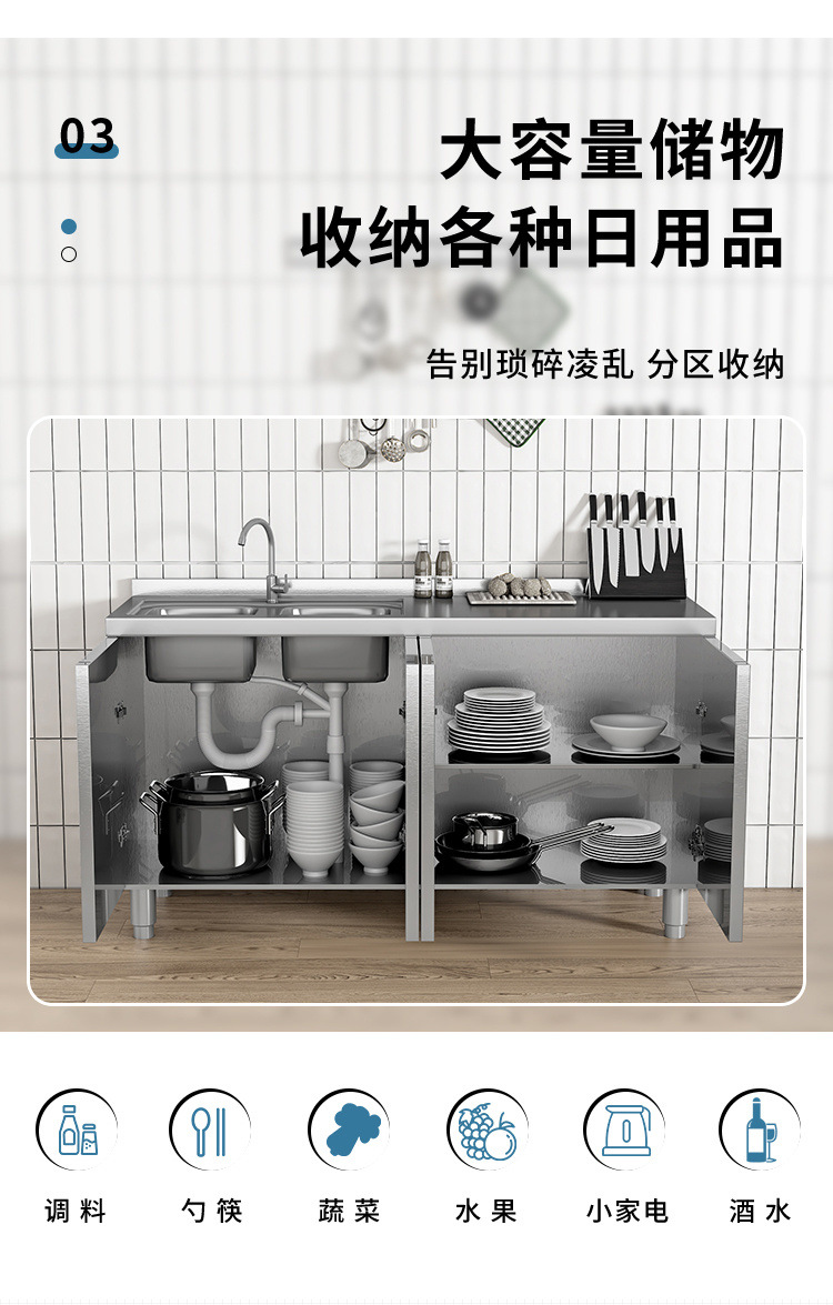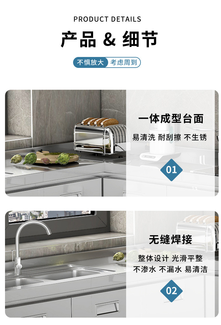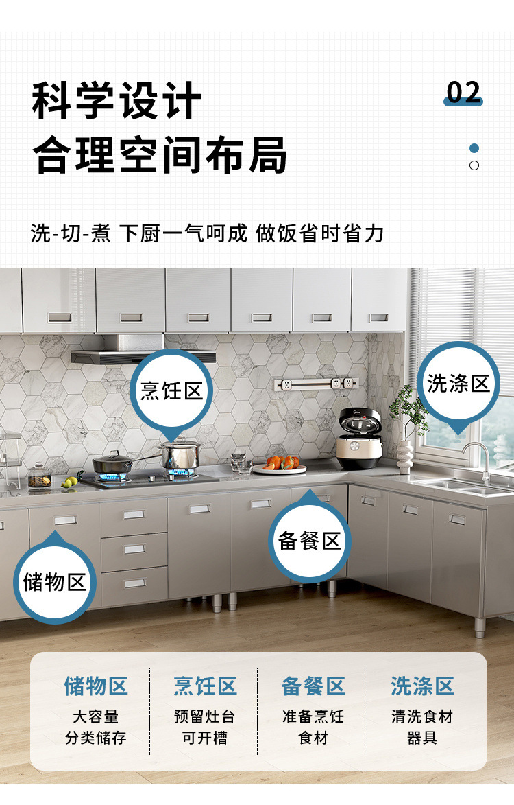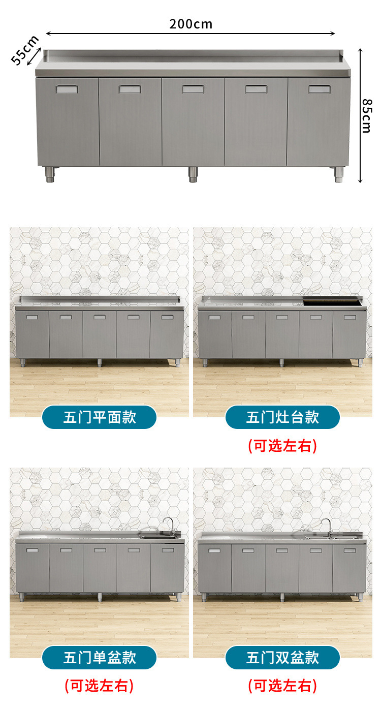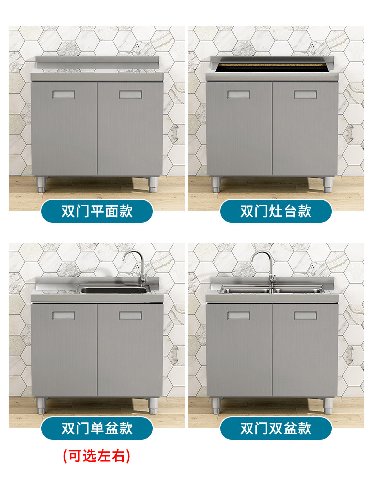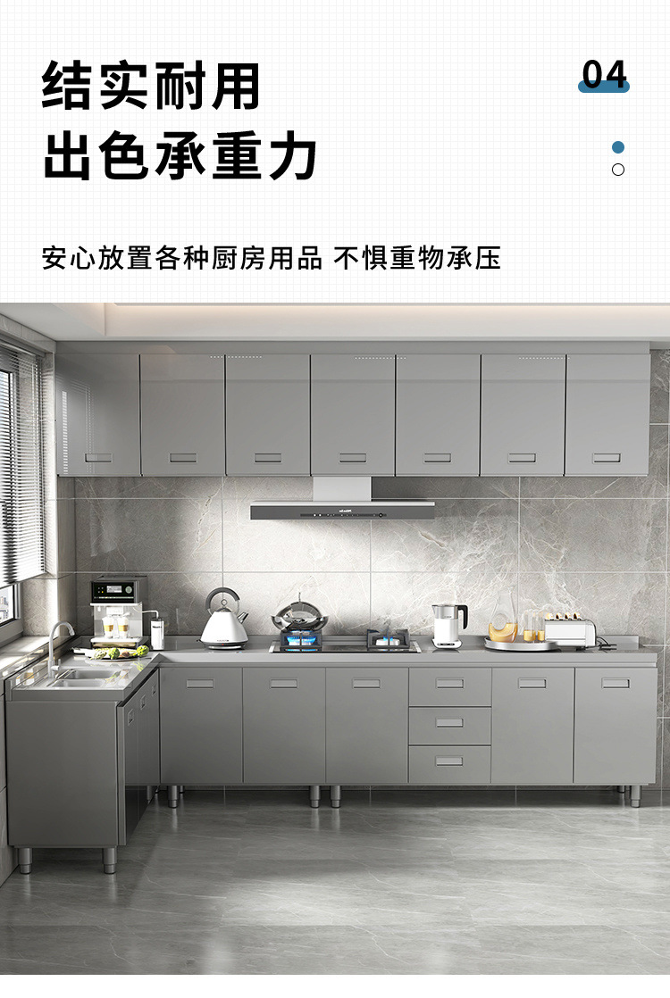 304 스테인레스 스틸 주방 캐비닛 일체형 주방 캐비닛 간단한 주방 스토브 보관 및 보관 찬장 체인 세트스토어 가기