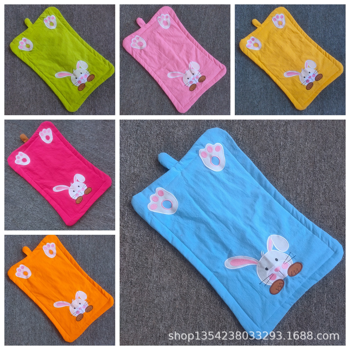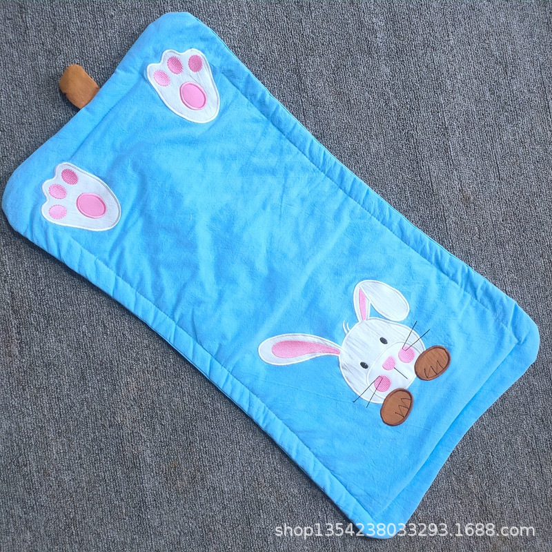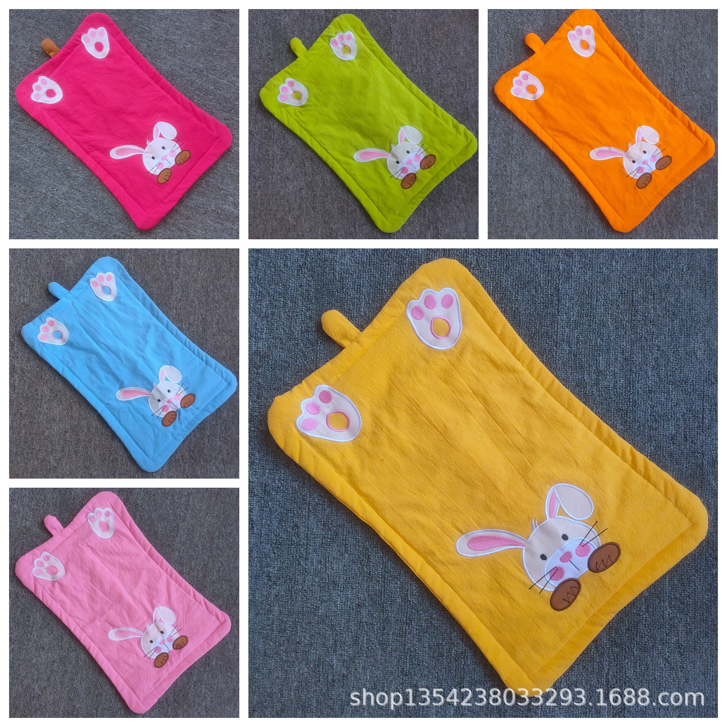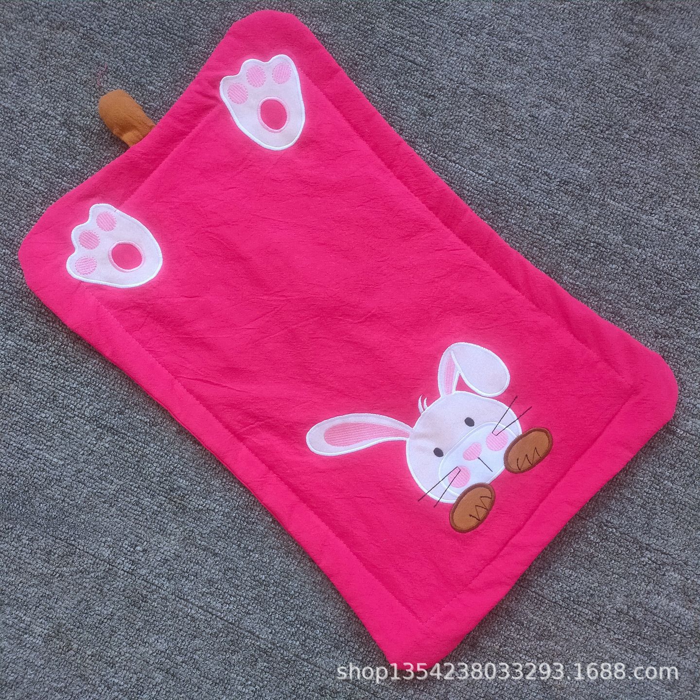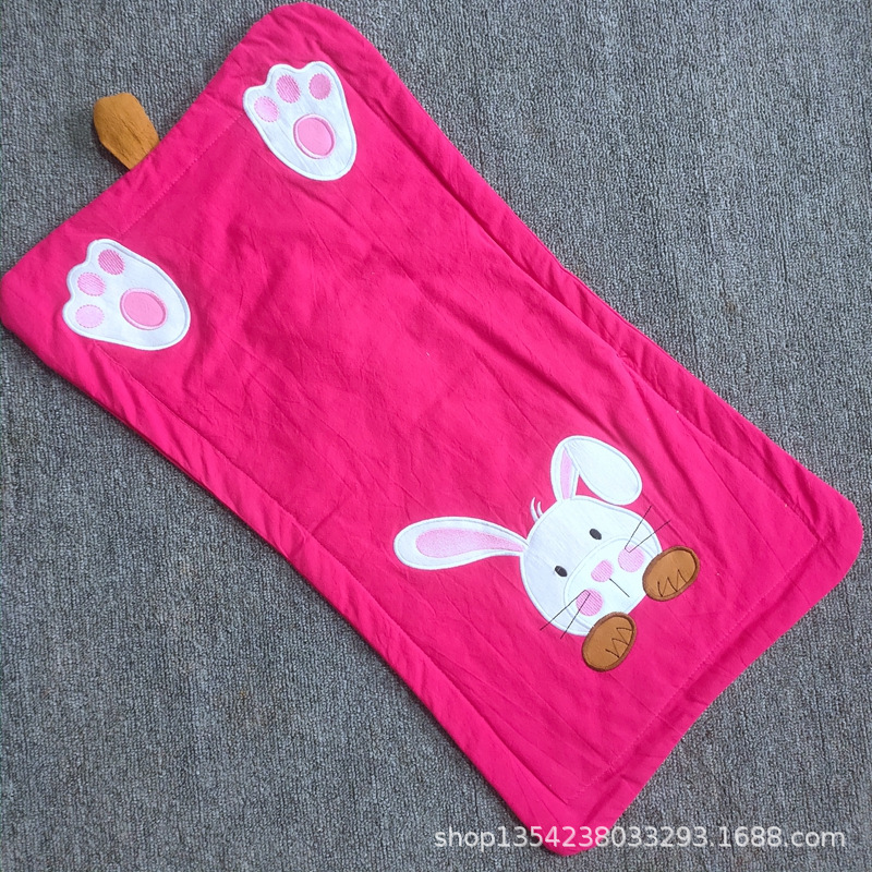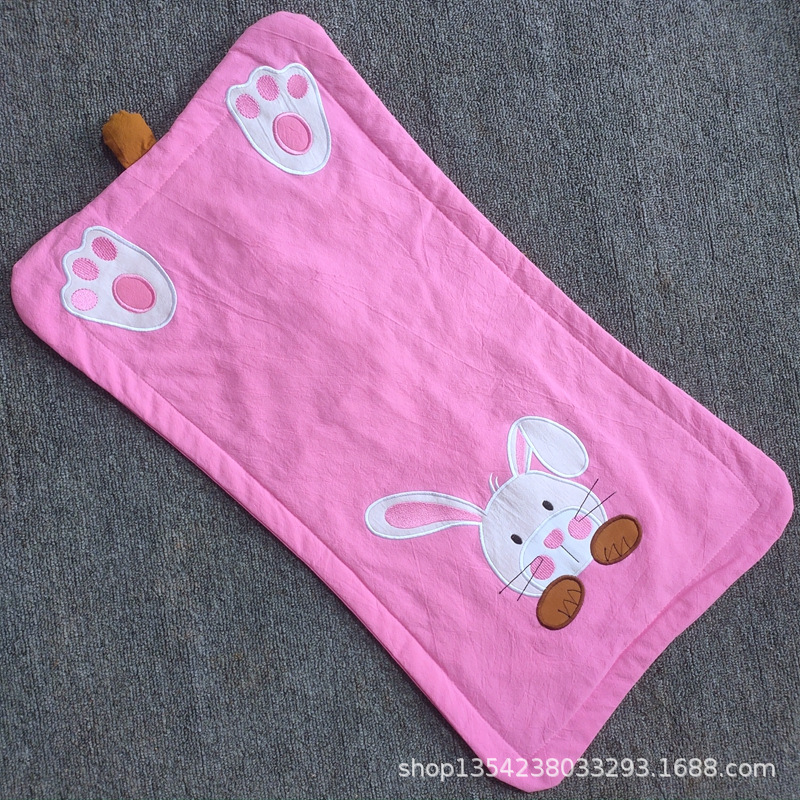 枕面和背面都是采用纯棉绉布面料缝制而成,枕面设计有绒布拼布刺绣弯耳朵小兔子图案,设计活泼可爱,背面有拉链,方便换洗,内有吸汗层,增强吸汗性同时对枕面起到一个缓撑作用,设计多个规格,满足不同群体的需求