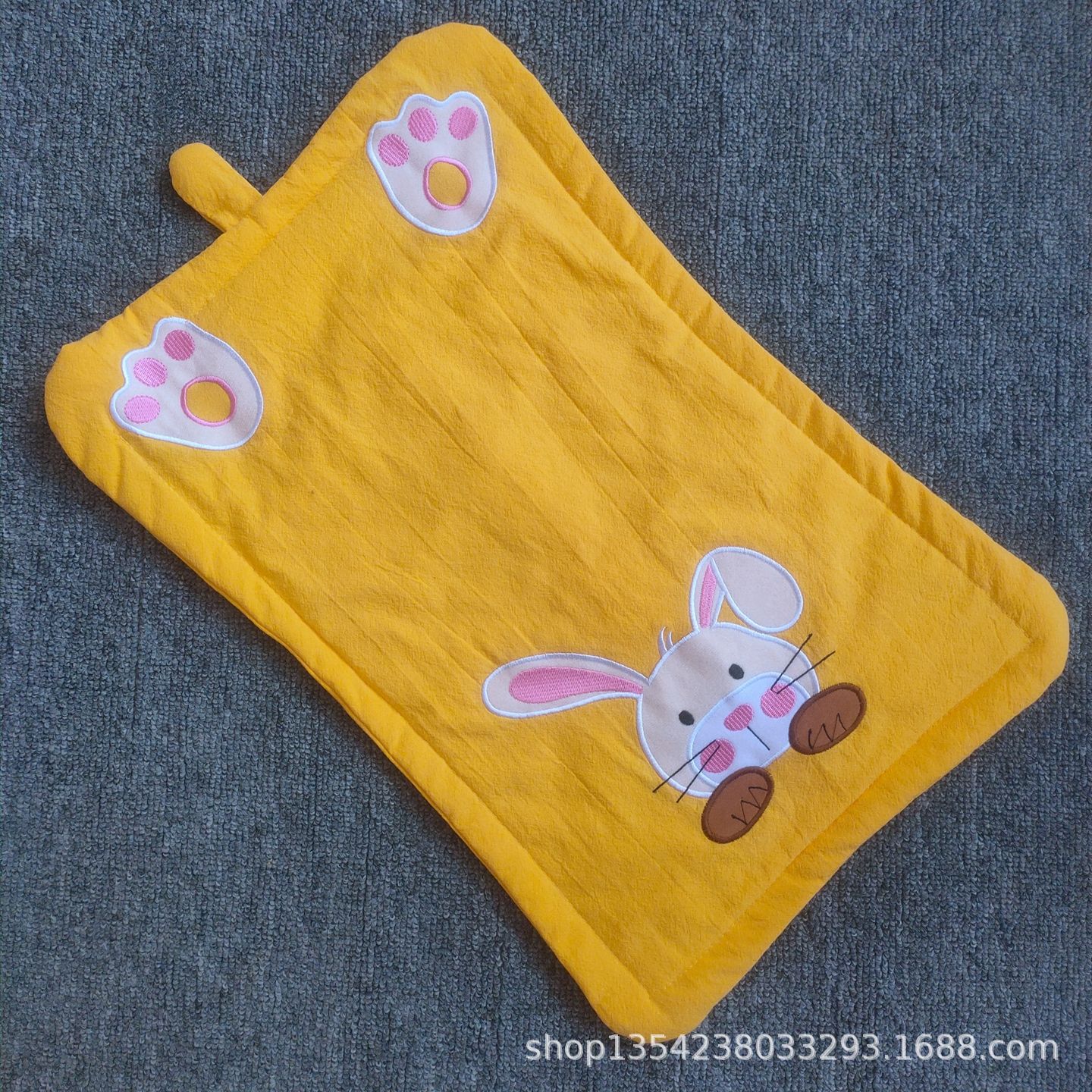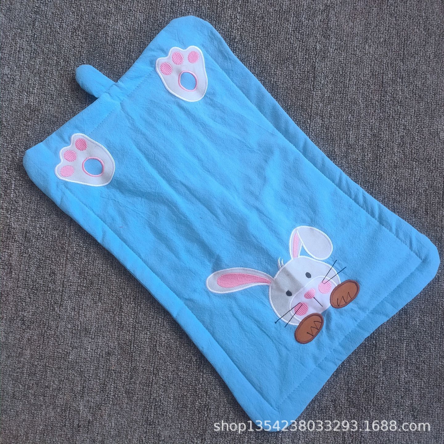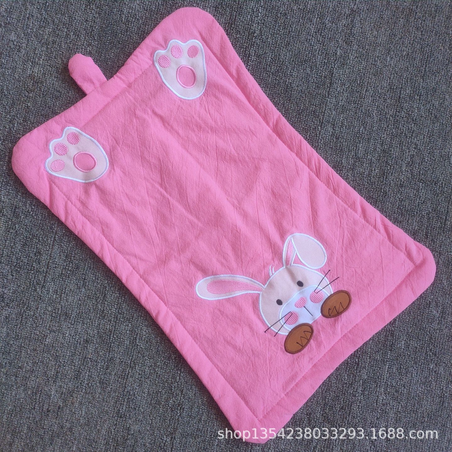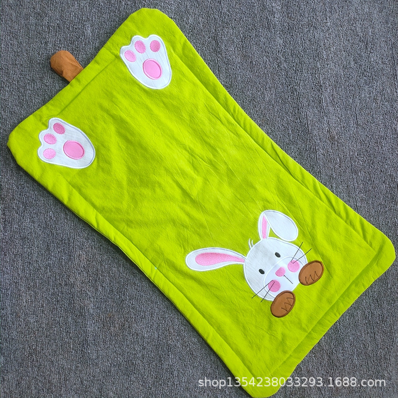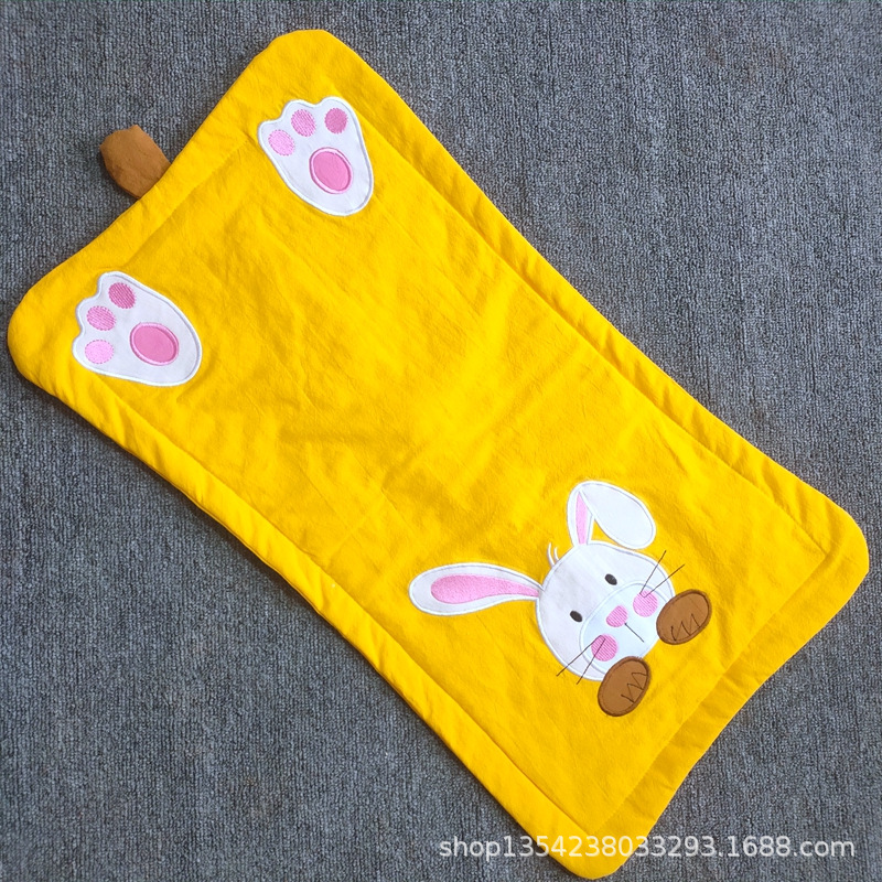 枕面和背面都是采用纯棉绉布面料缝制而成,枕面设计有绒布拼布刺绣弯耳朵小兔子图案,设计活泼可爱,背面有拉链,方便换洗,内有吸汗层,增强吸汗性同时对枕面起到一个缓撑作用,设计多个规格,满足不同群体的需求