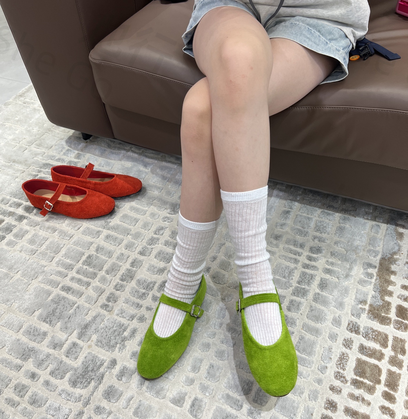 스커트가 달린 여성용 플랫 슈즈, 복고풍 원라인 버클 펌프스, 심플한 스타일의 1층 소가죽 메리제인 발레 슈즈