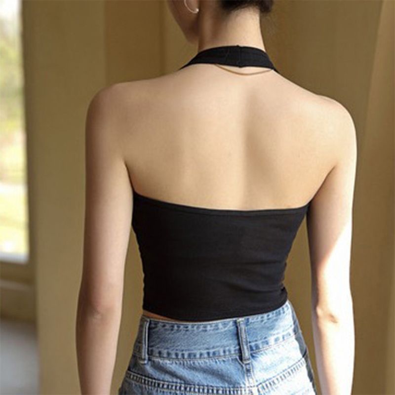 국경을 넘어 잘 팔리는 여름 노출 방지 솔리드 컬러 조끼 멜빵 긴 홀터넥 랩 가슴 고정 컵 가슴 패드 아우터 탑