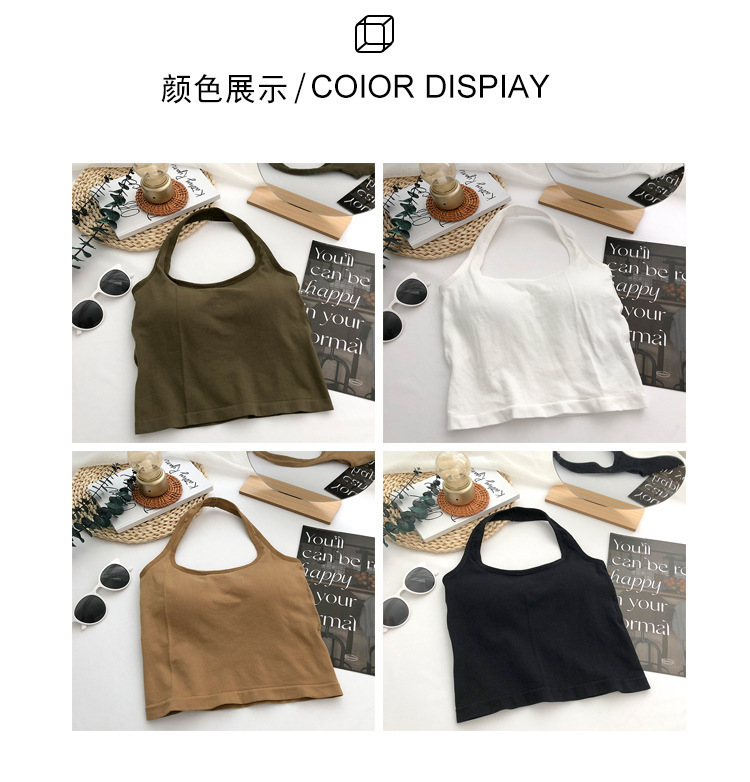 국경을 넘어 잘 팔리는 여름 노출 방지 솔리드 컬러 조끼 멜빵 긴 홀터넥 랩 가슴 고정 컵 가슴 패드 아우터 탑스토어 가기