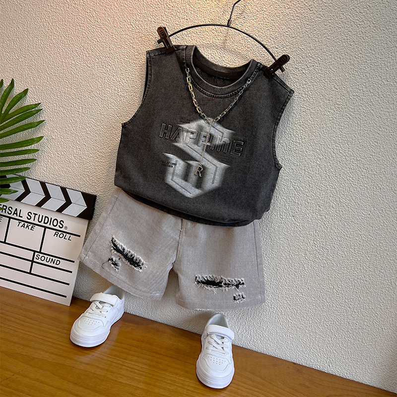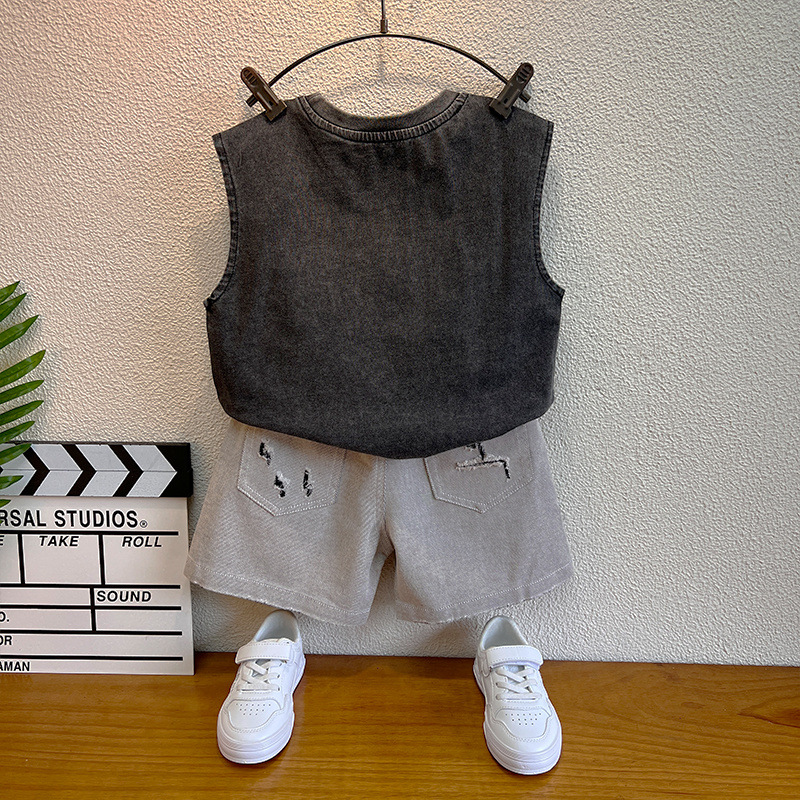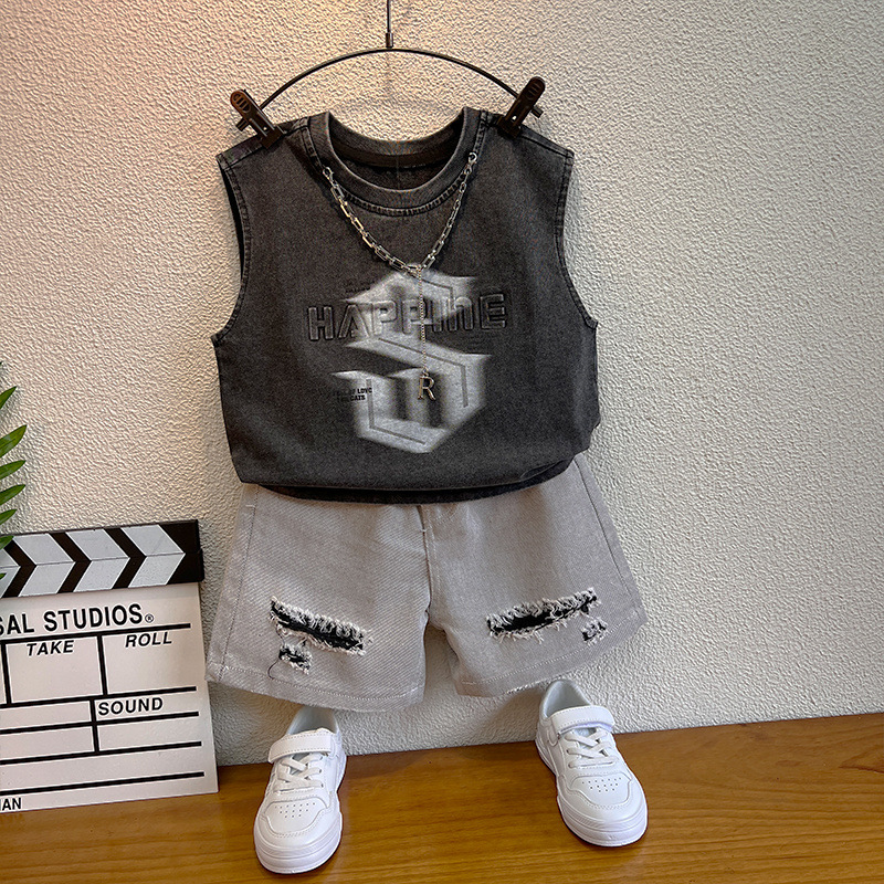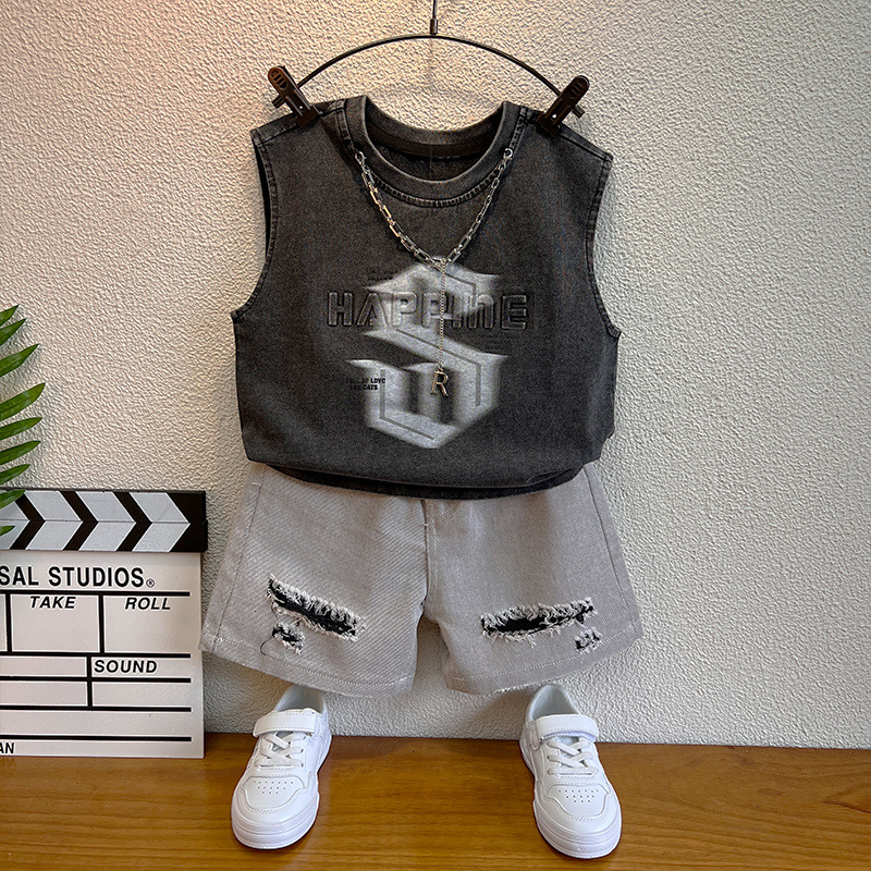 소년 정장 2025 새로운 스타일 소년 멋진 세련된 여름 옷 아기 소년 조끼 어린이 양복 조끼 잘 생긴 어린이 옷