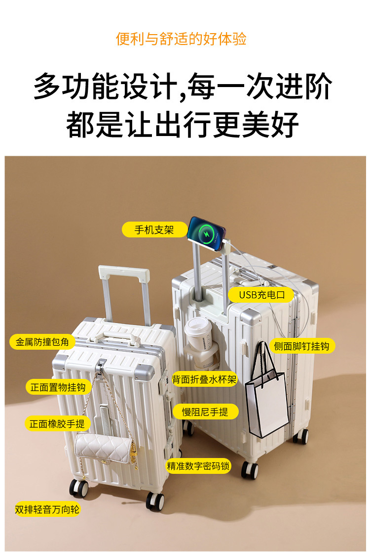 가방 범용 휠 24inch 상자 학생 남성과 여성 탑승 케이스 알루미늄 프레임 트롤리 암호 상자 대용량 가방스토어 가기