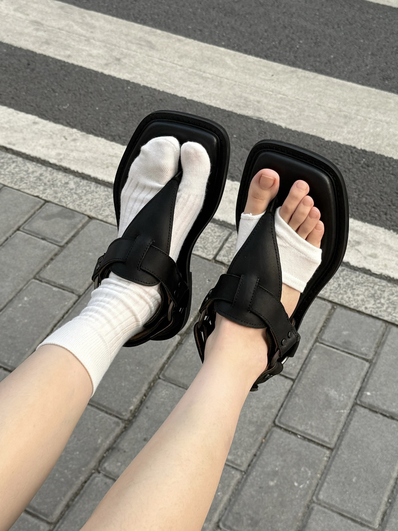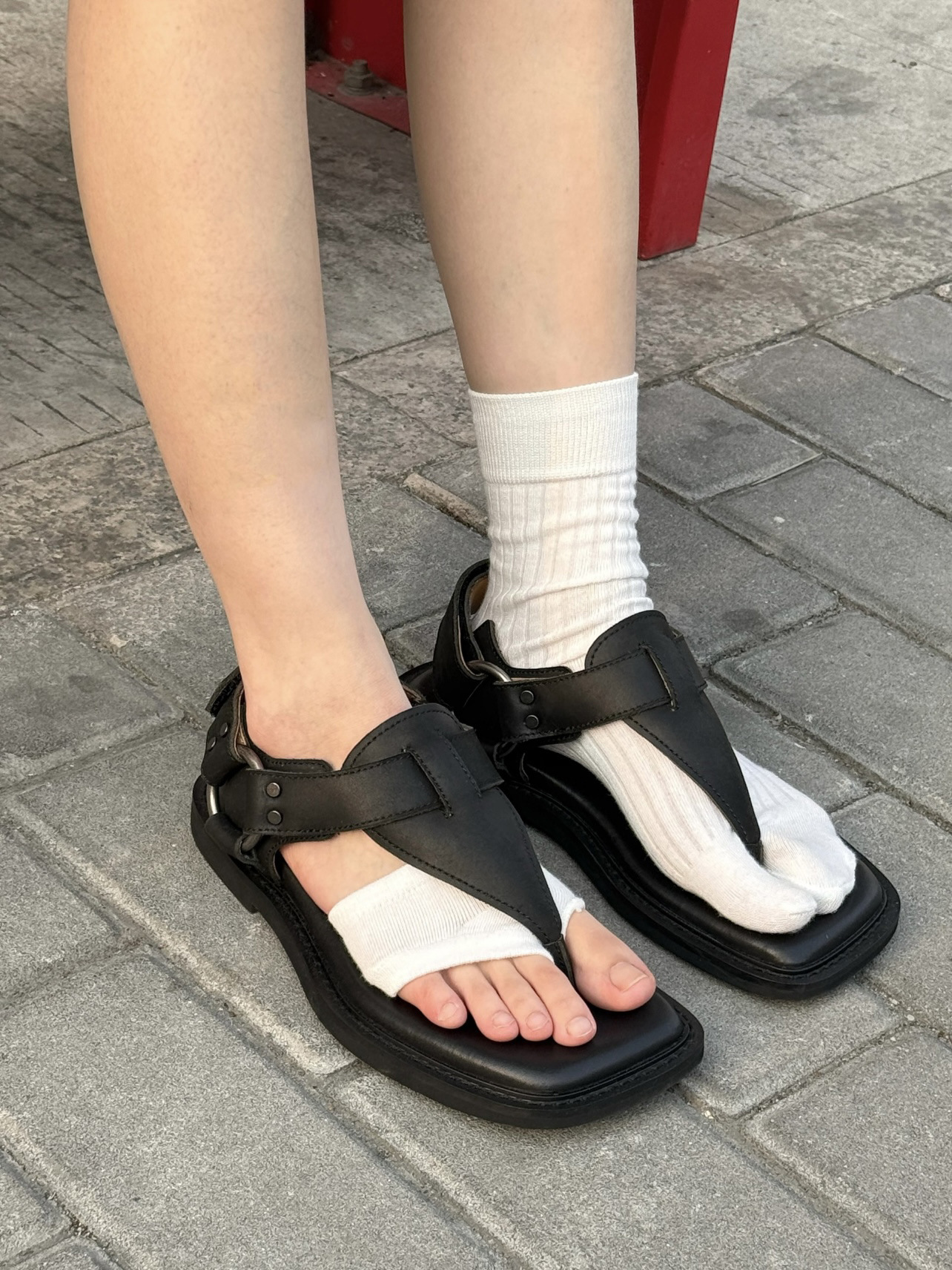 여성을위한 레트로 로마 플립 플롭 신발 2025 여름 새로운 펑크 외부 착용 비치 샌들