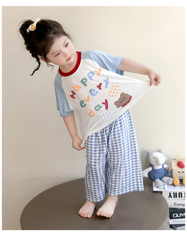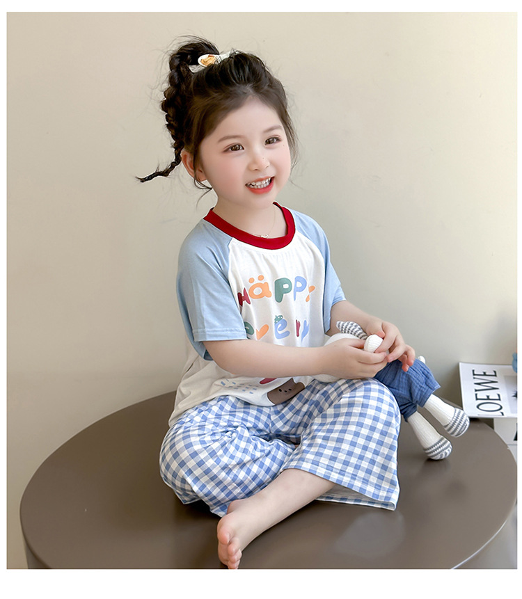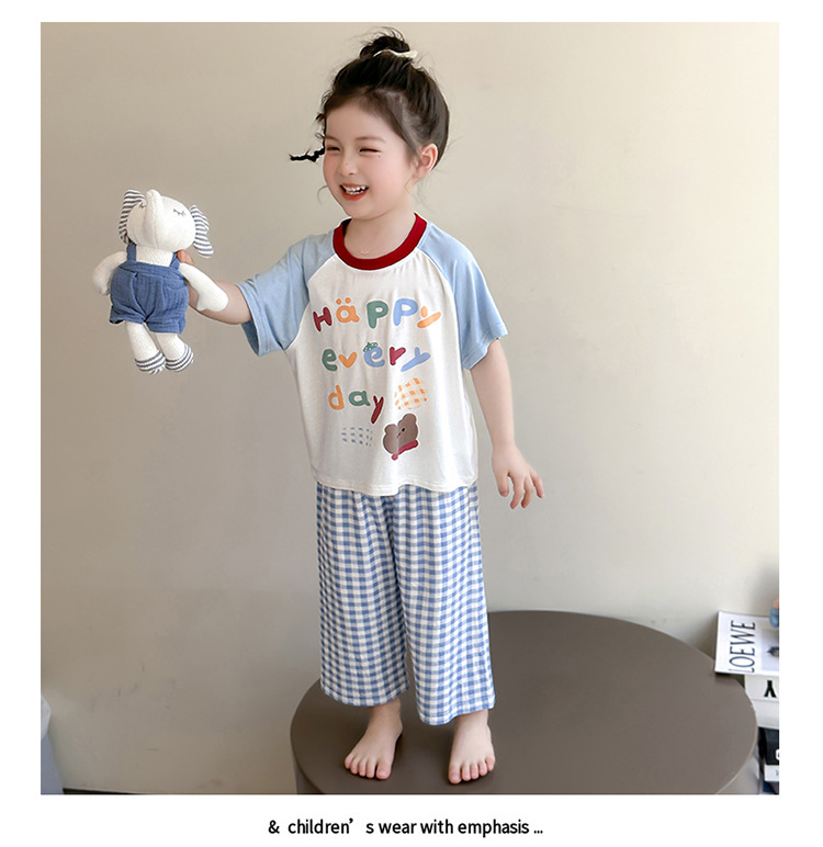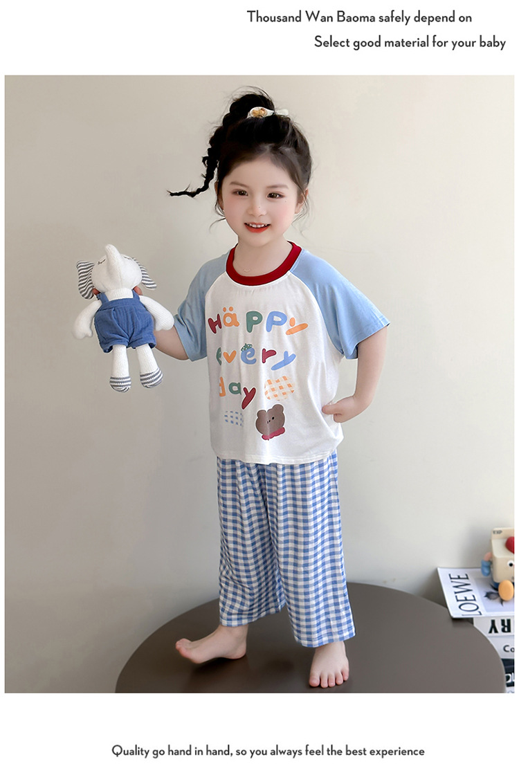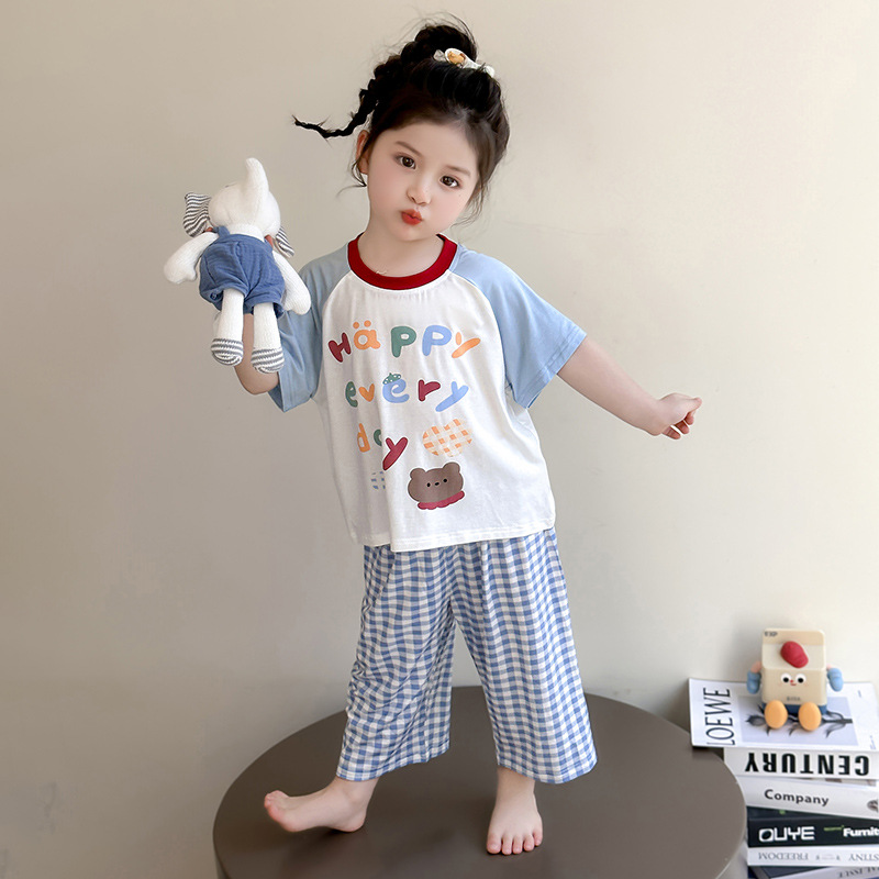 여자 잠옷 세트 2025 새로운 어린이 모달 에어컨 의류 세트 아기 여름 얇은 가정 의류 4스토어 가기