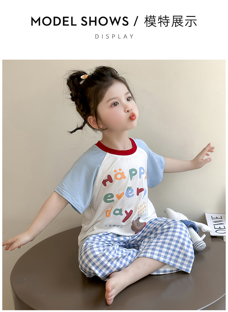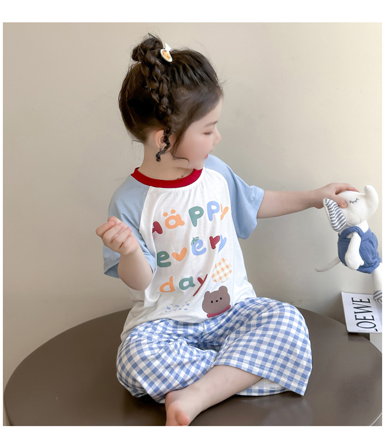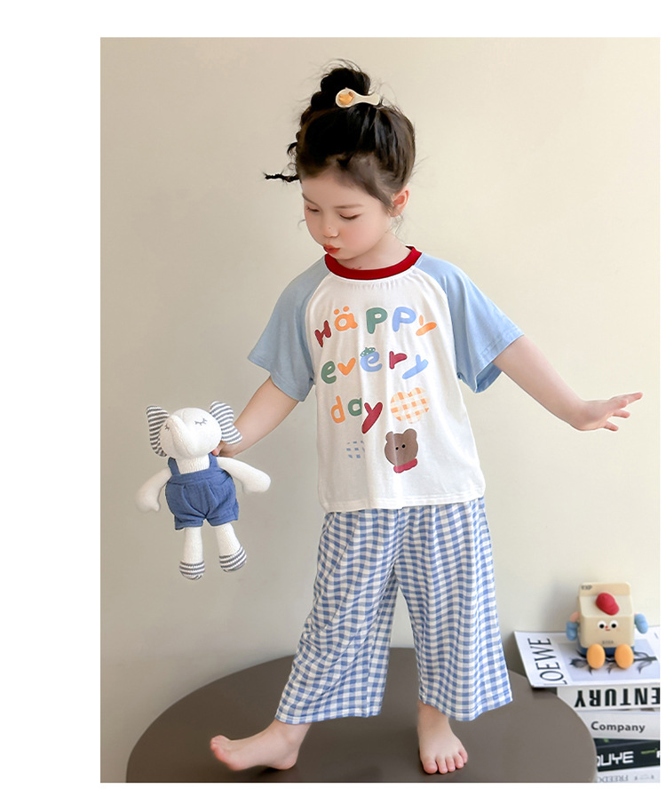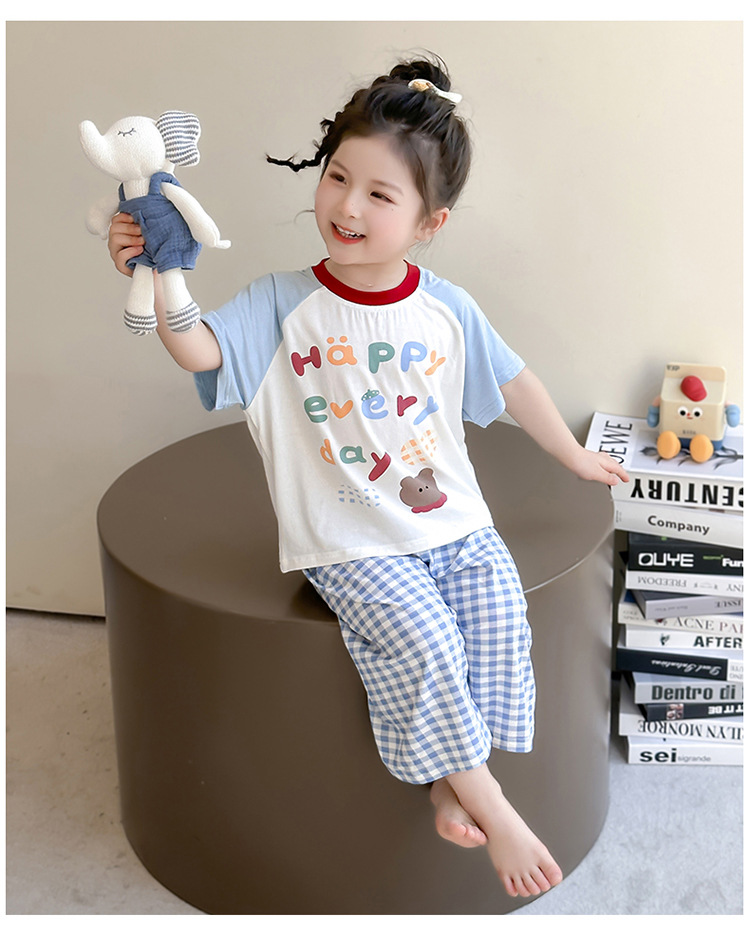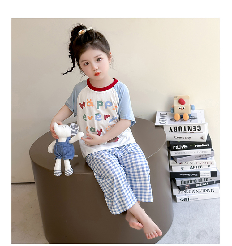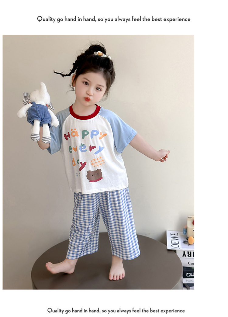 여자 잠옷 세트 2025 새로운 어린이 모달 에어컨 의류 세트 아기 여름 얇은 가정 의류 4스토어 가기